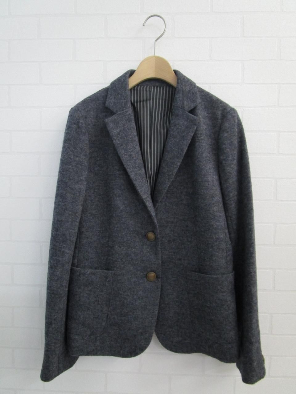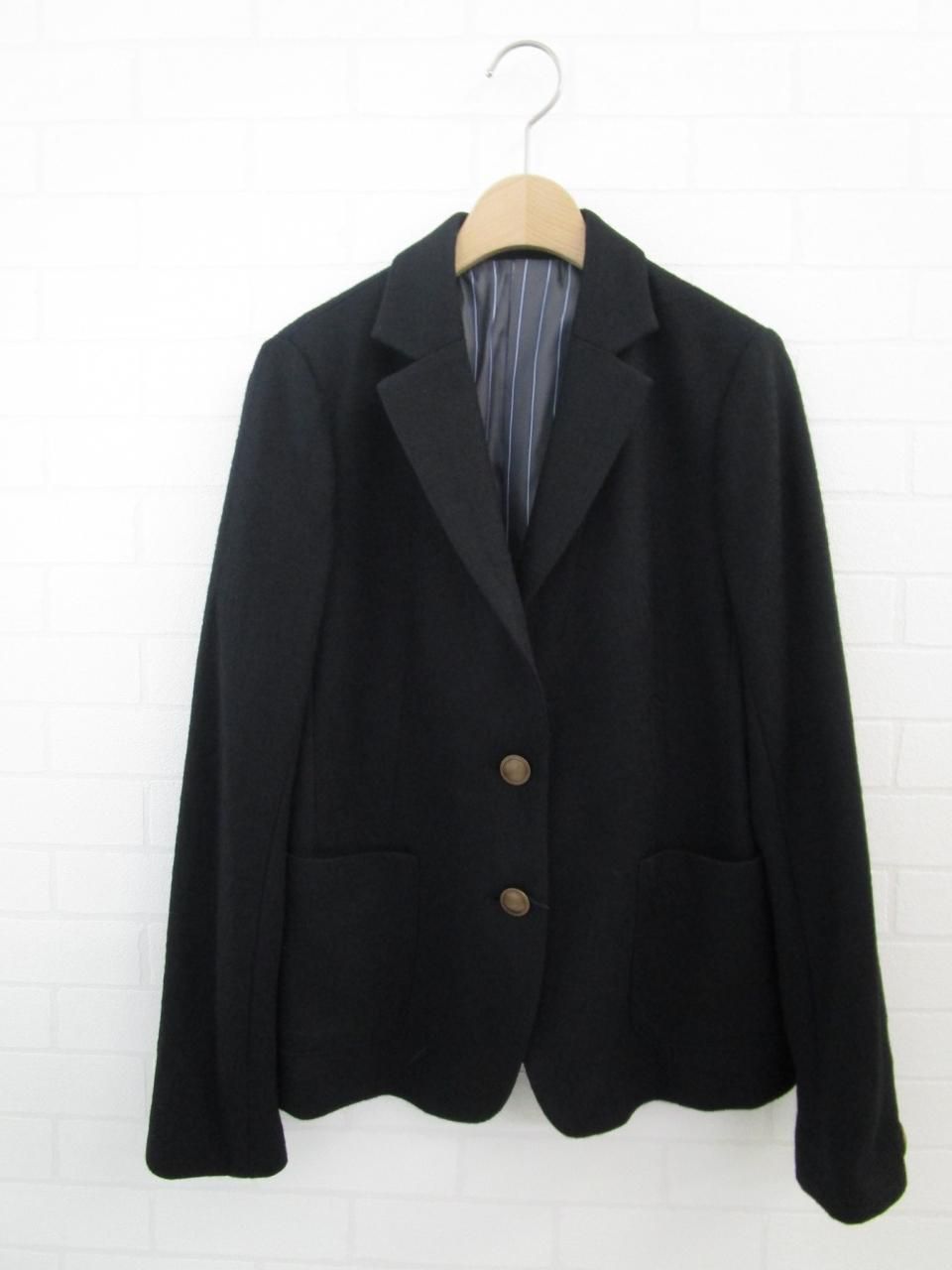 コーディネイトしやすい圧縮ウールのシングルジャケットです。