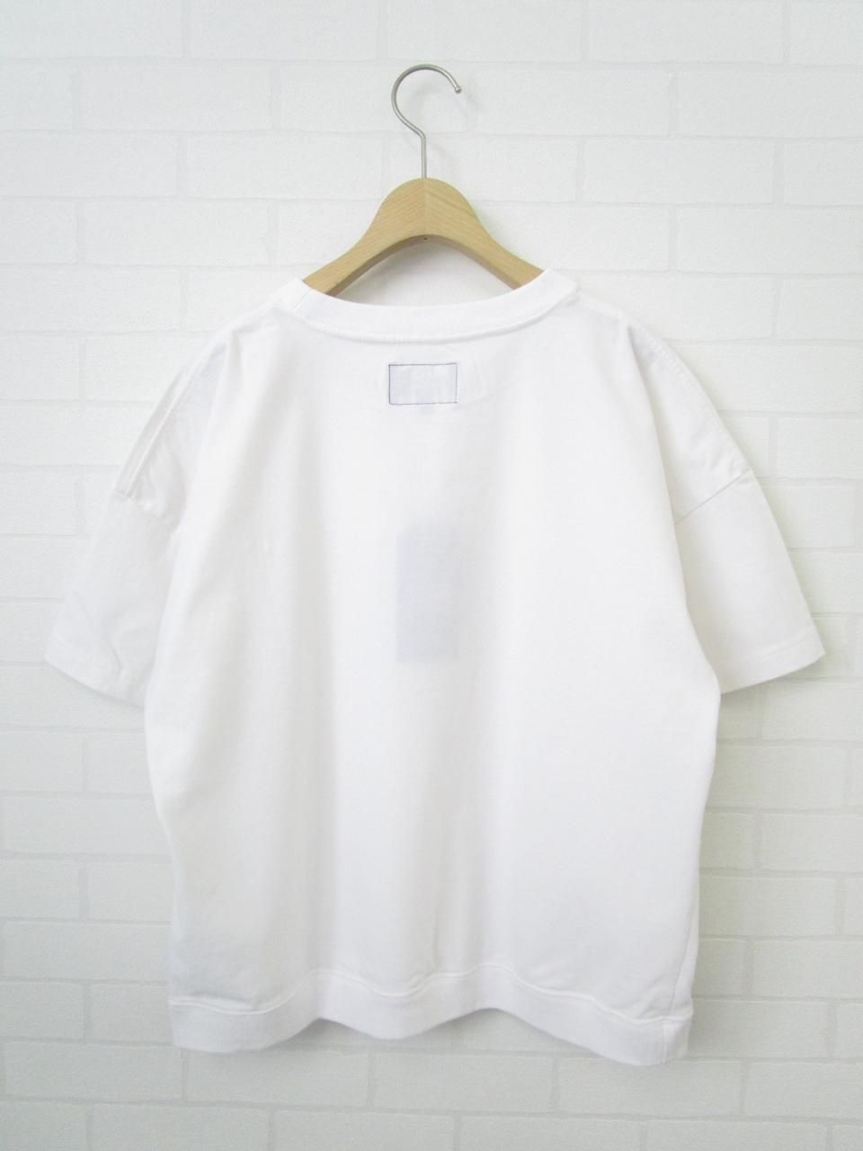 コットンアクリルジャージを使ったポケットTシャツ。裾にフライスを使用してスウェットのような仕上がりでゆったりとしたオーバーサイズシルエットです。