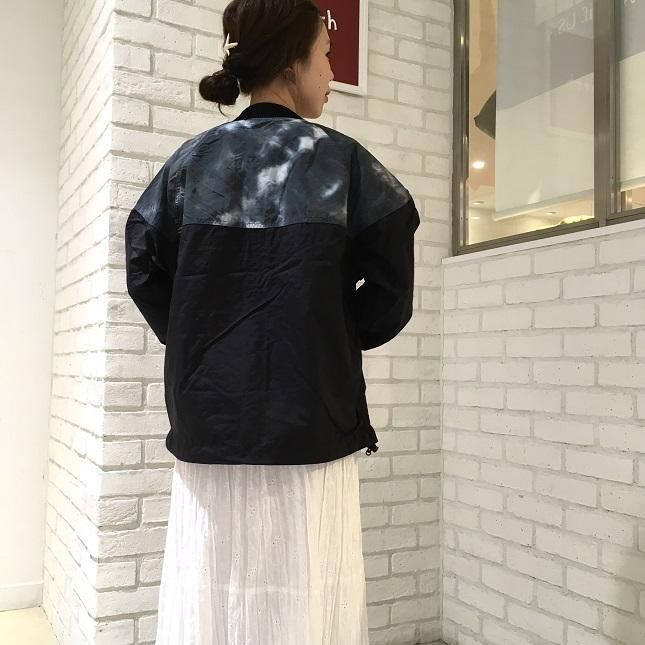 1980年代アメリカのナショナルスキーパトロールで使用されたジャケットをベースに、西海岸で流行った衿の編地が特徴的なダービージャケットのイメージをミックスしてデザインされたらしいですよ。。背景はいろいろあるようですがパッと見かわいいですよね!肩のナイロン部分は日本の伝統的な注染染めでムラ染めになっているあたりもどこか懐かしい感じ◎実はメンズ品番のアイテムで、メンズで一番小さいサイズのXSを1点だけセレクトしました。