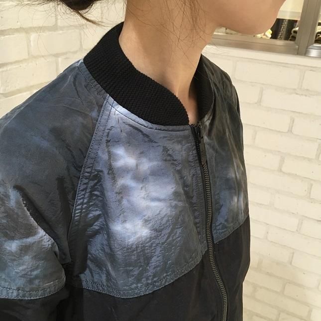 彼氏のブルゾン?お父さんの若かりし頃のブルゾン?を借りて羽織っているような。古着のような着方を提案したいアイテムですね。Shethにはメンズライクな商品も多く、“ おじ可愛い (笑)” 懐かしい感じのアイテムを、ワンピースやスカートのガーリーな服とコーディネートして着て欲しいと思っています。
