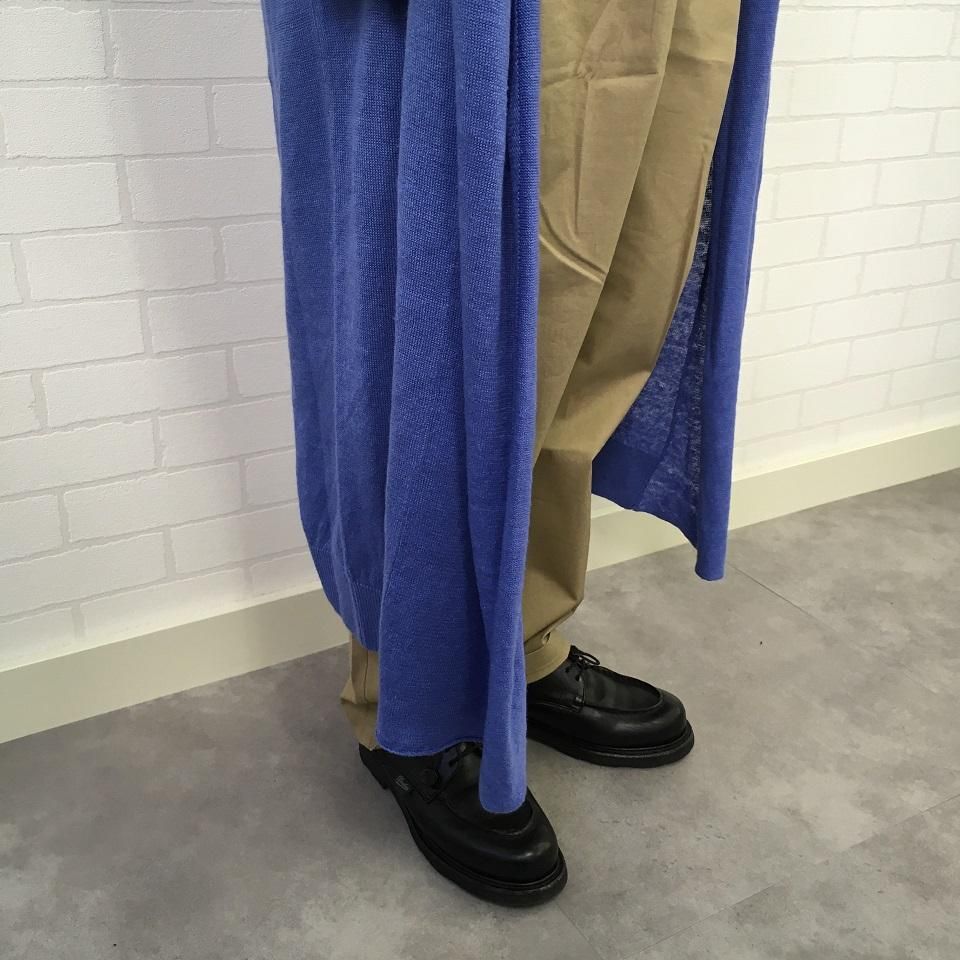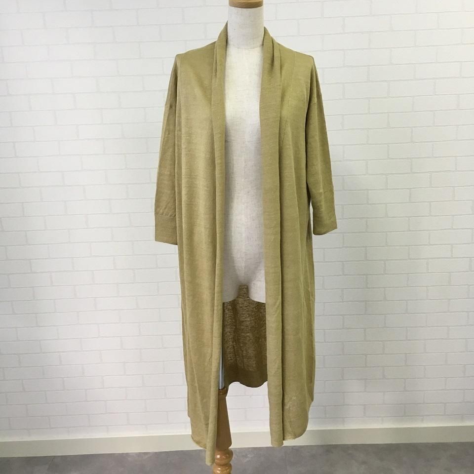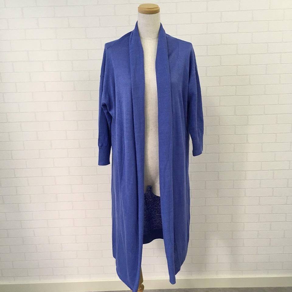 リネン100%のロングカーディガン。毎年、春先から初夏に入荷する定番のニットです。着丈が100cmを越えますが軽く柔らかい素材なので着ていて動きづらさなど全く感じない人気のカーディガンです。