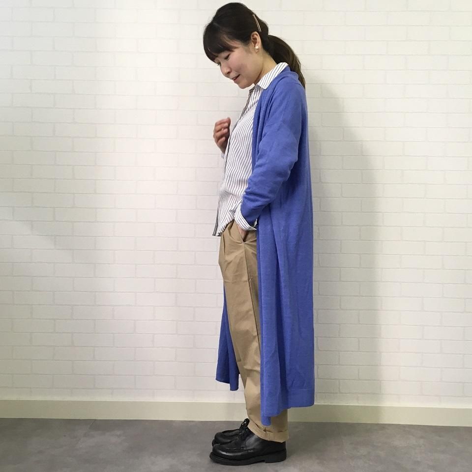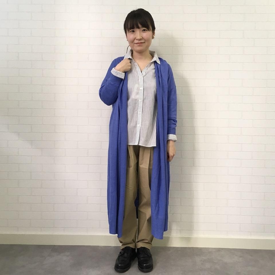 今回は、パンツとシャツに合わせていますが、ワンピースは勿論、スカートにも合わせやすい羽織ニットです♪
