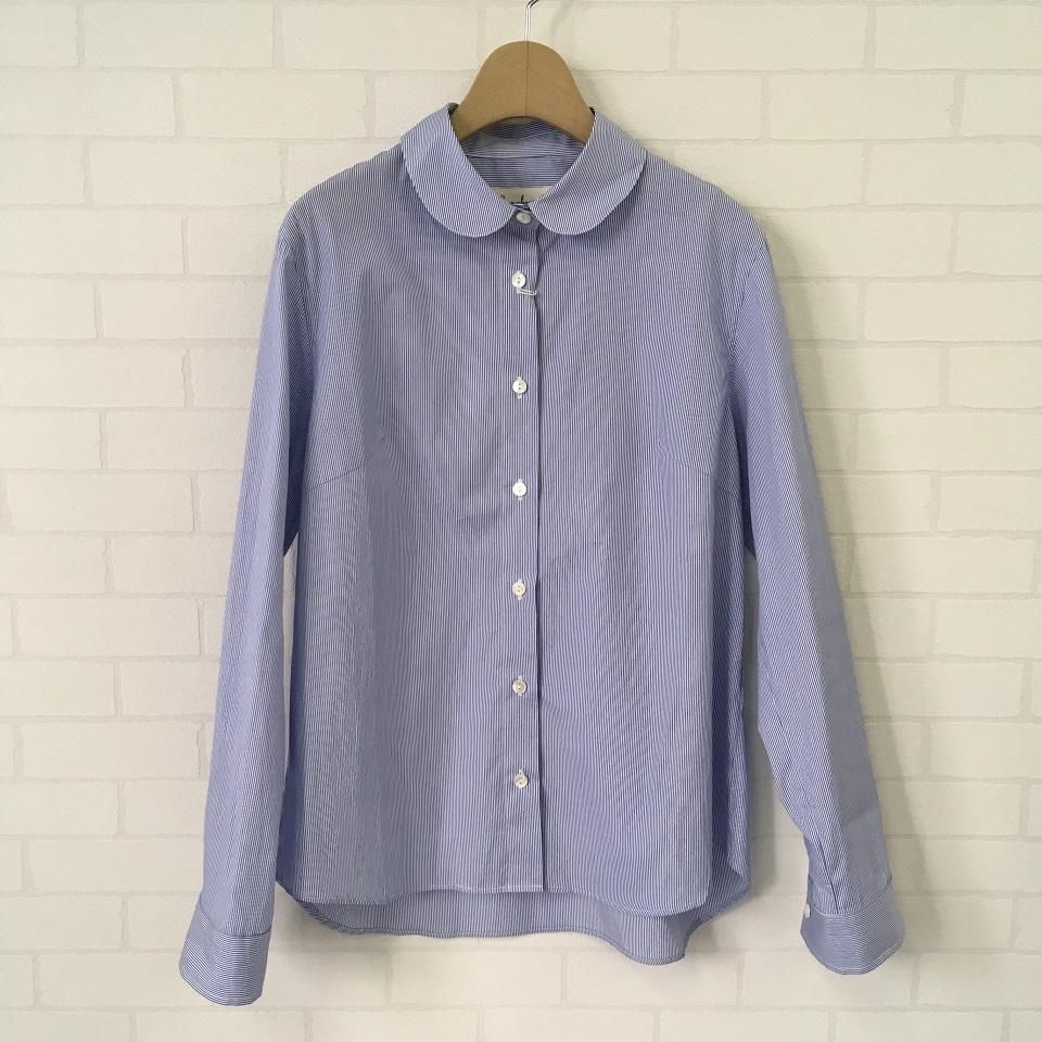 コットン丸襟 ストライプシャツ