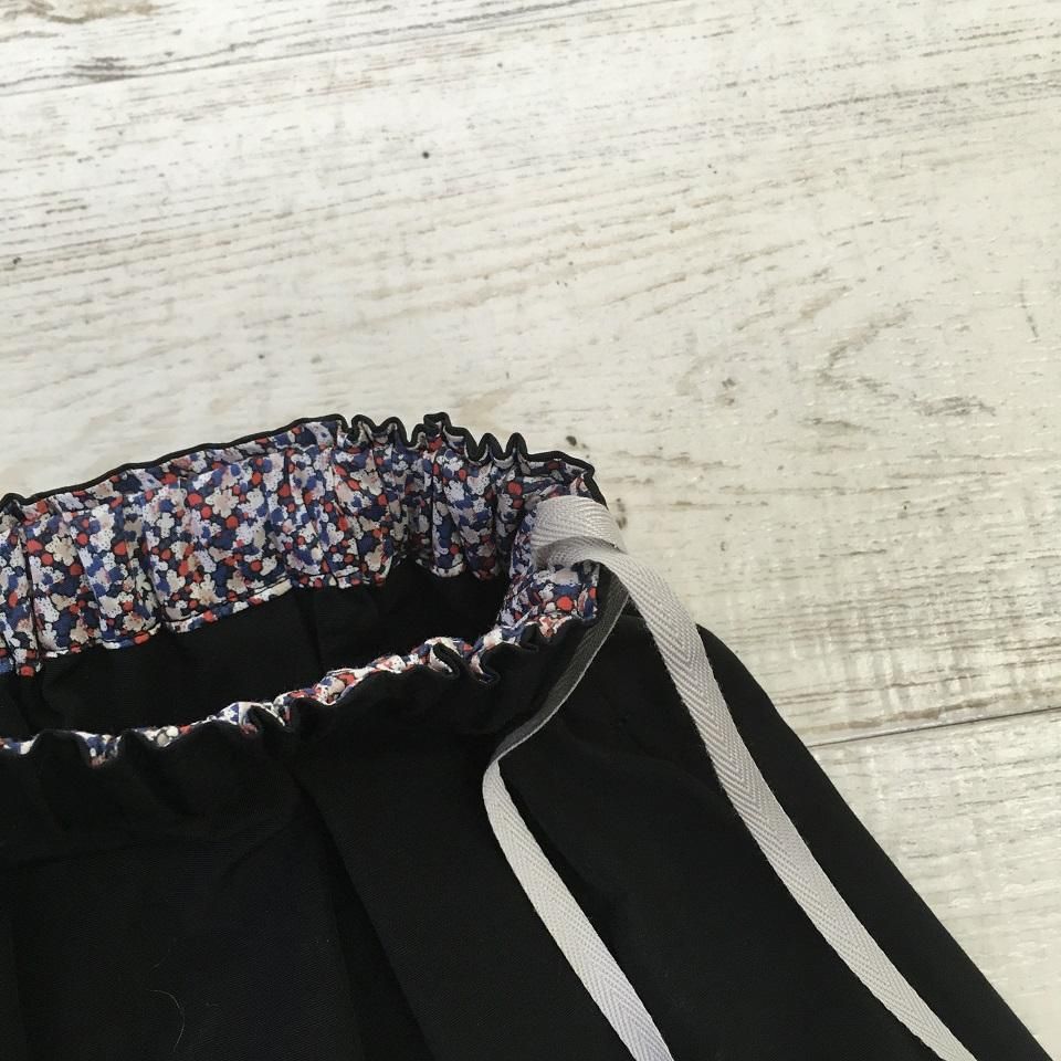 総ゴムのウエスト裏には、リバティ生地が使われていて見えない部分にも、おしゃれを感じる事が出来ます♪