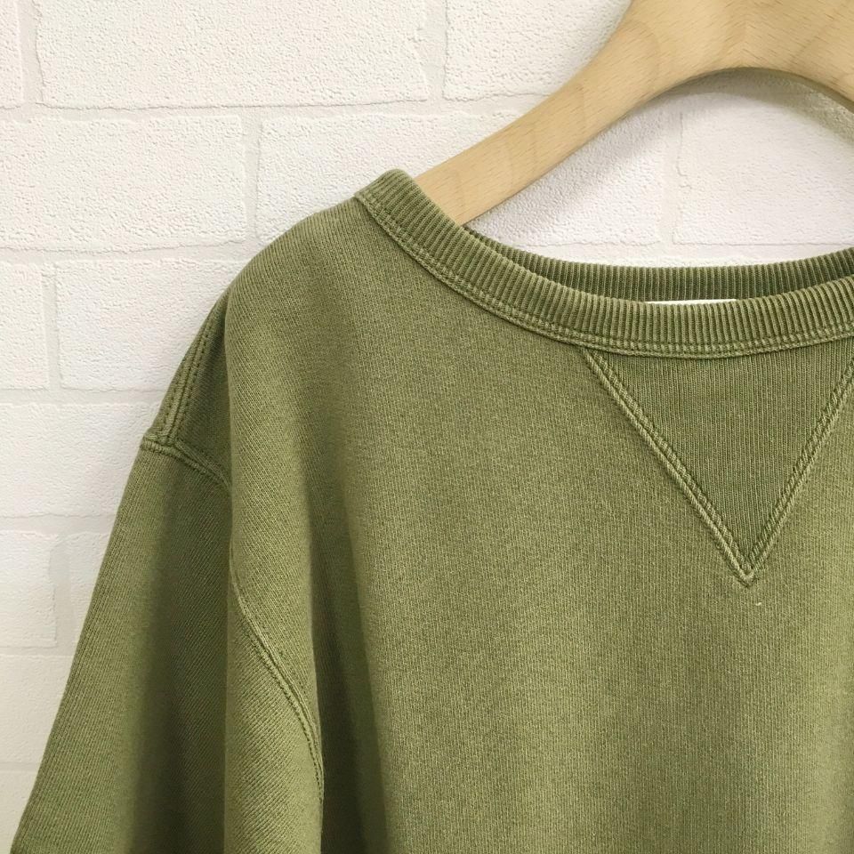 適度な厚みのあるミドルウェイトなスウェット生地を使用し、製品染めとウォッシュ加工でヴィンテージの風合いを表現しています。