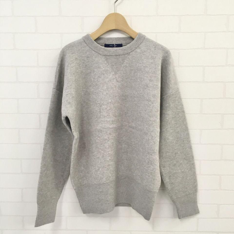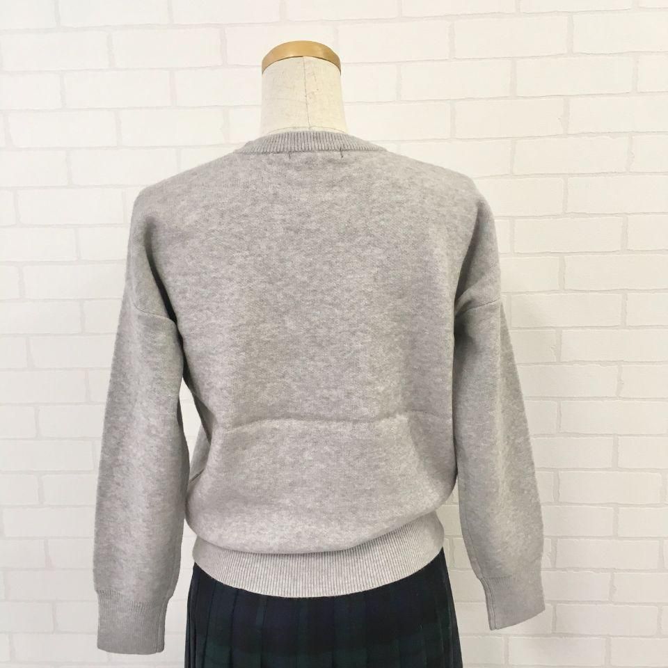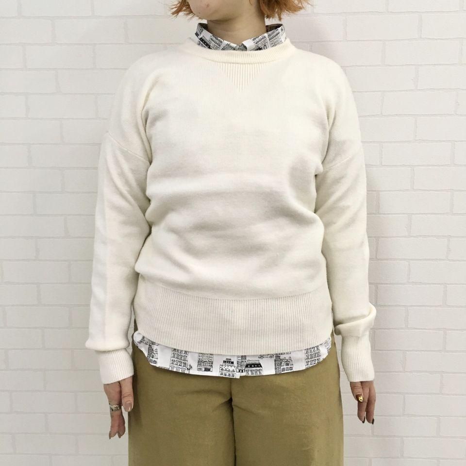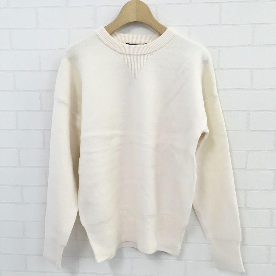 腰、袖口のリブ編みも存在感のある大きさにしてあるので、クラシックなトレーナーを彷彿させるデザインです。