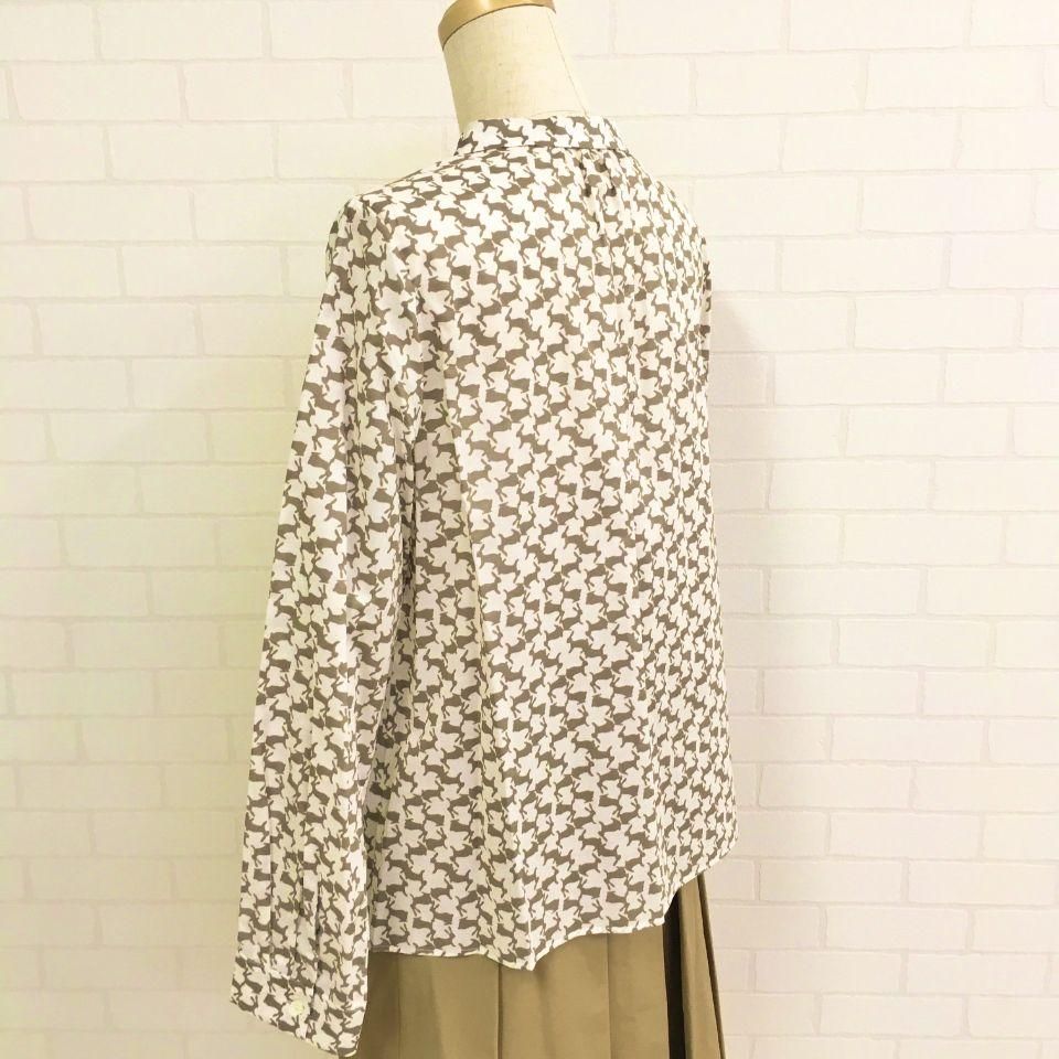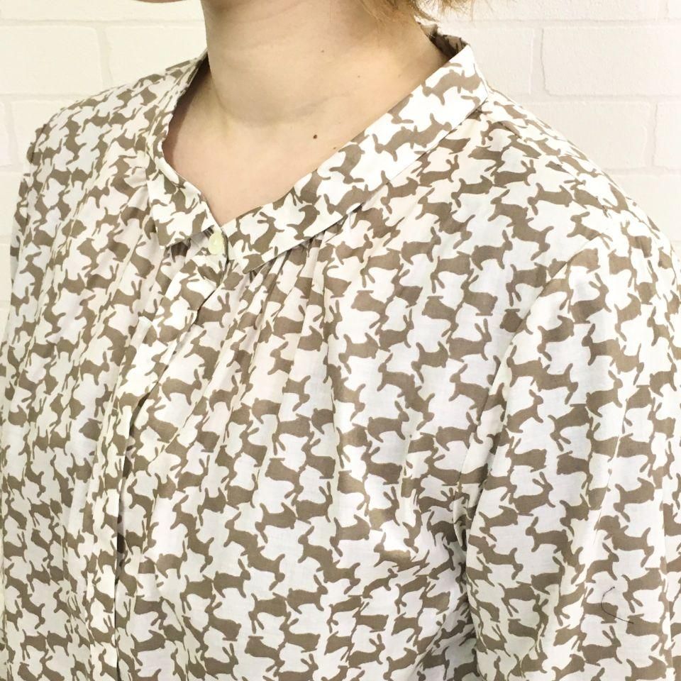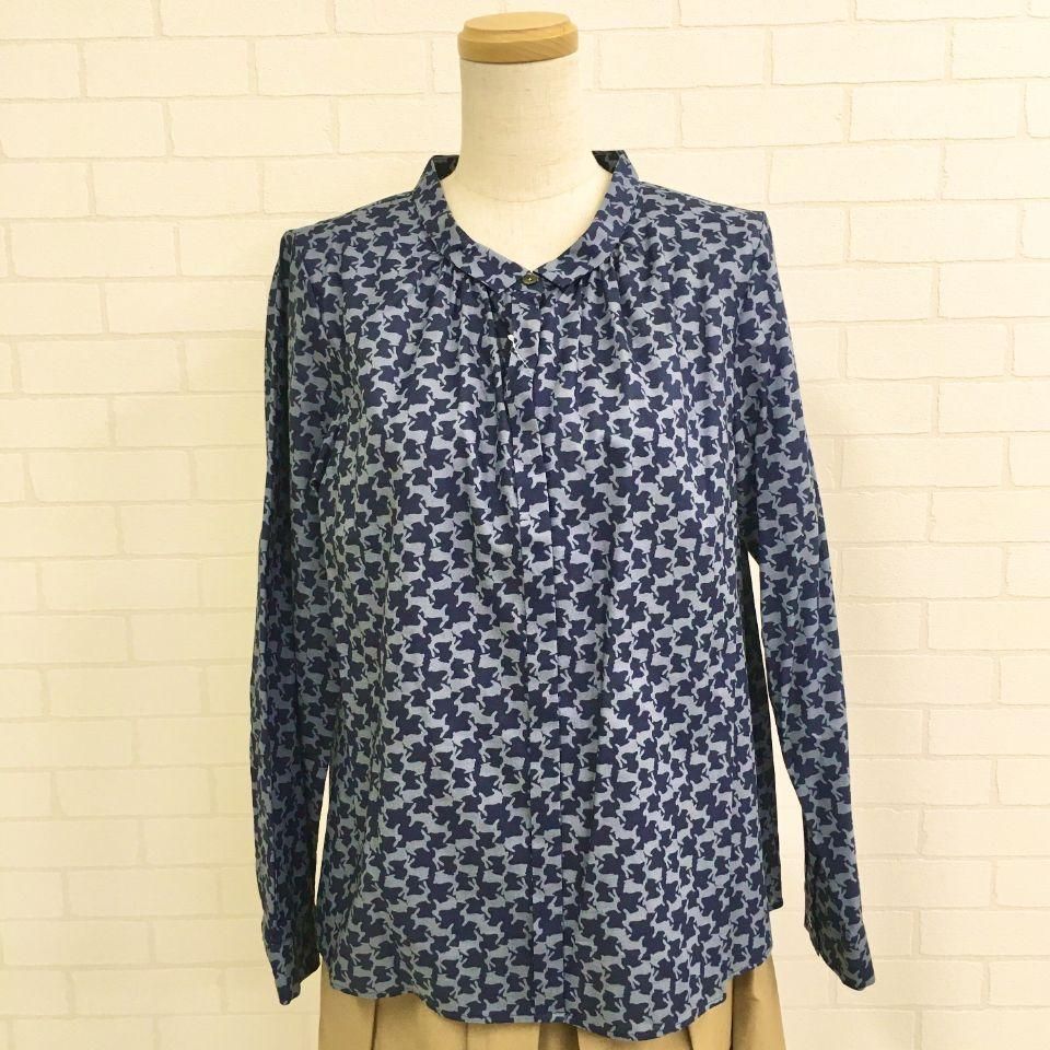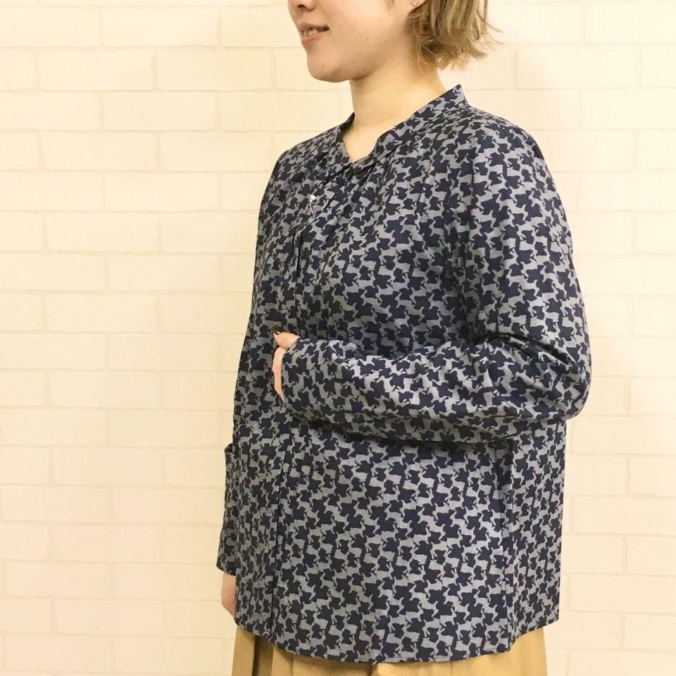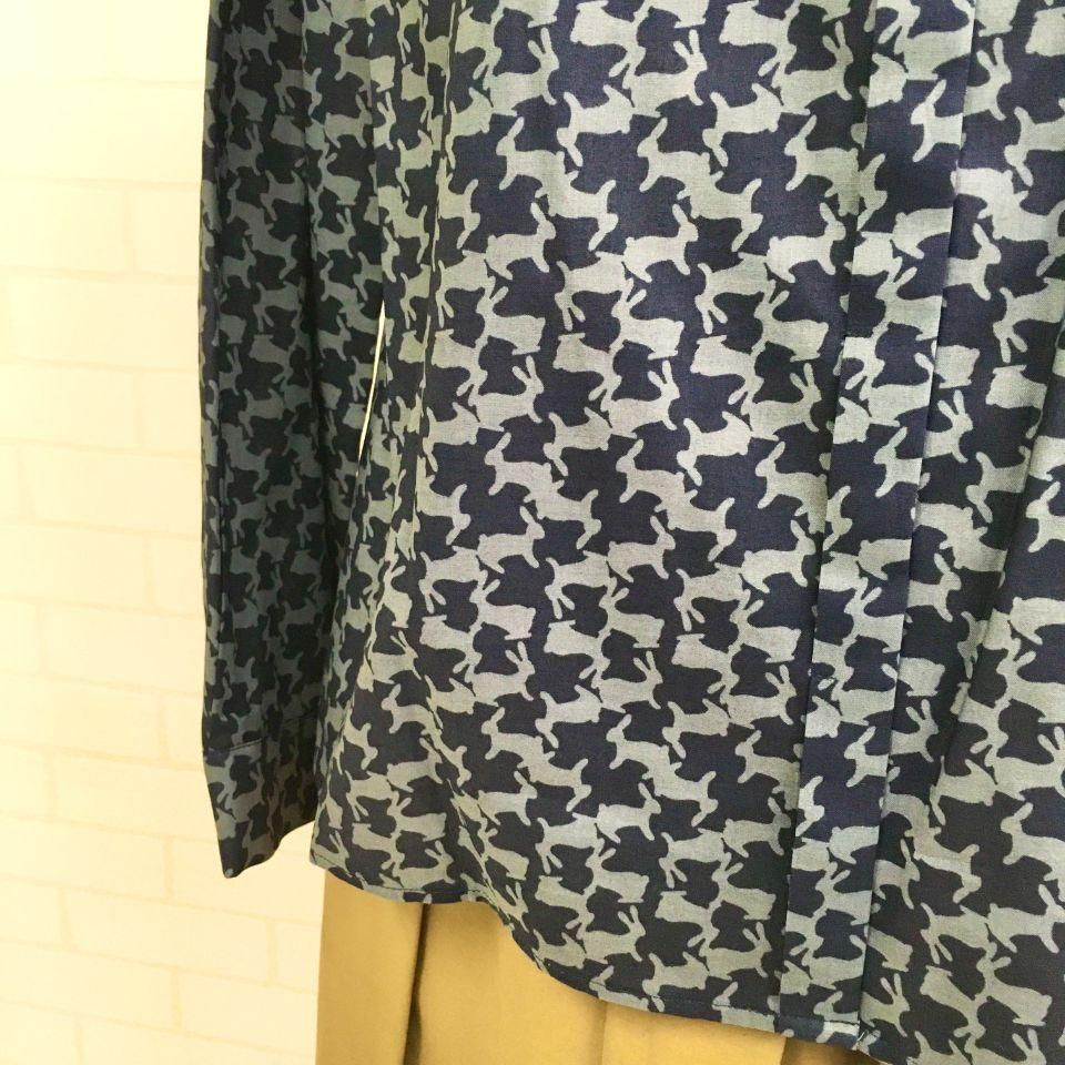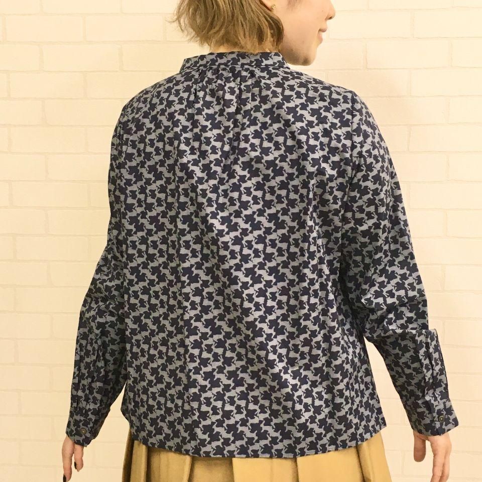 60sローン ウサギ千鳥 ワイド衿ギャザーブラウス