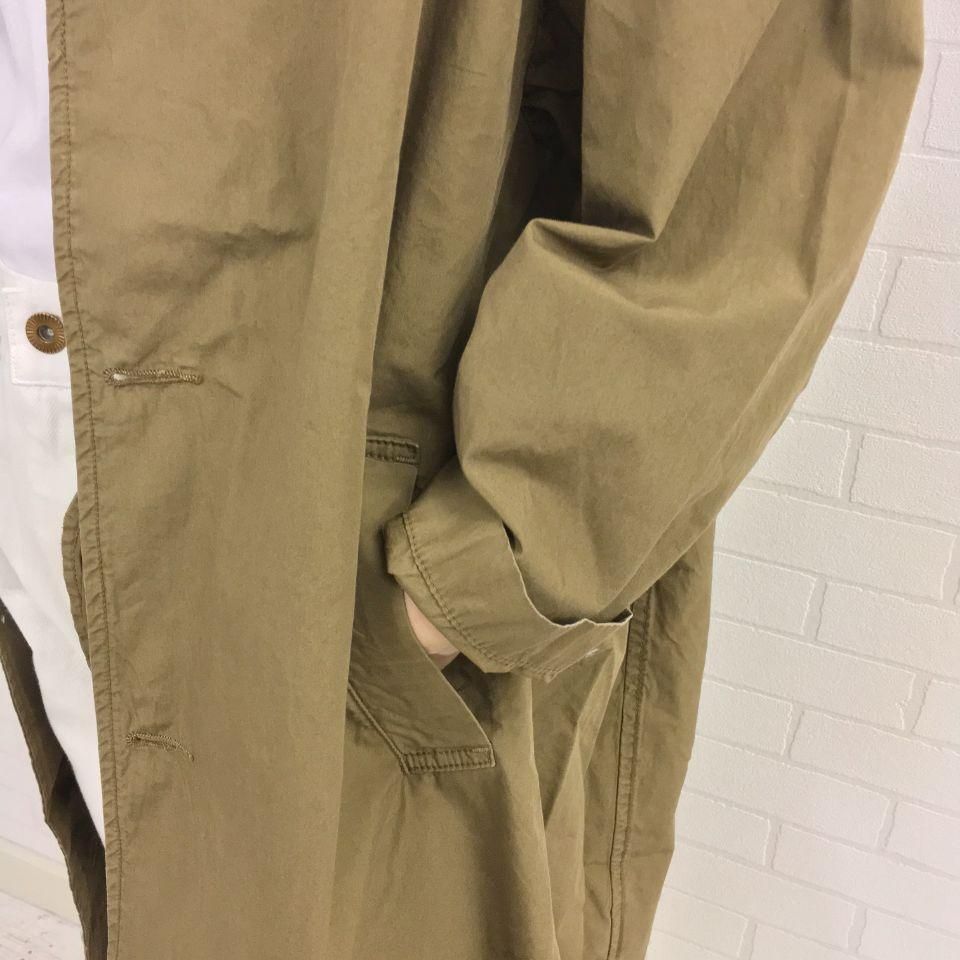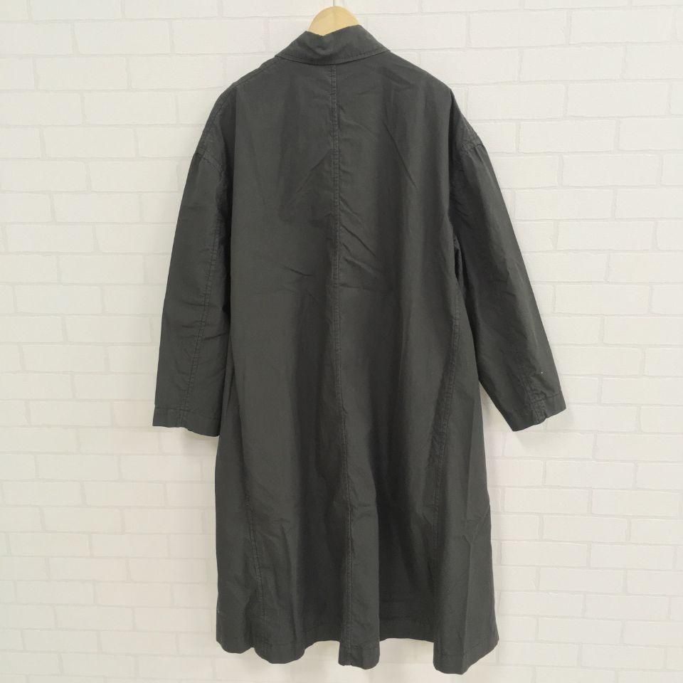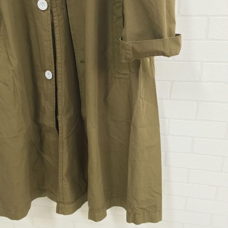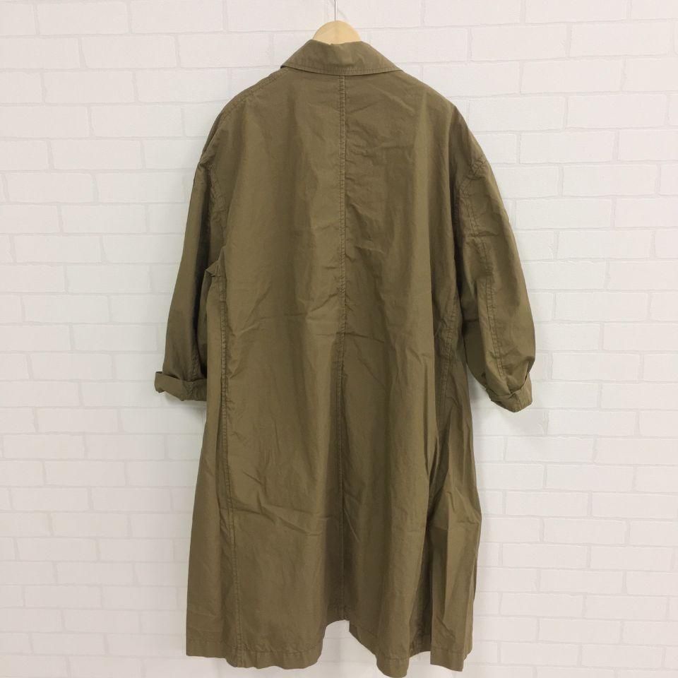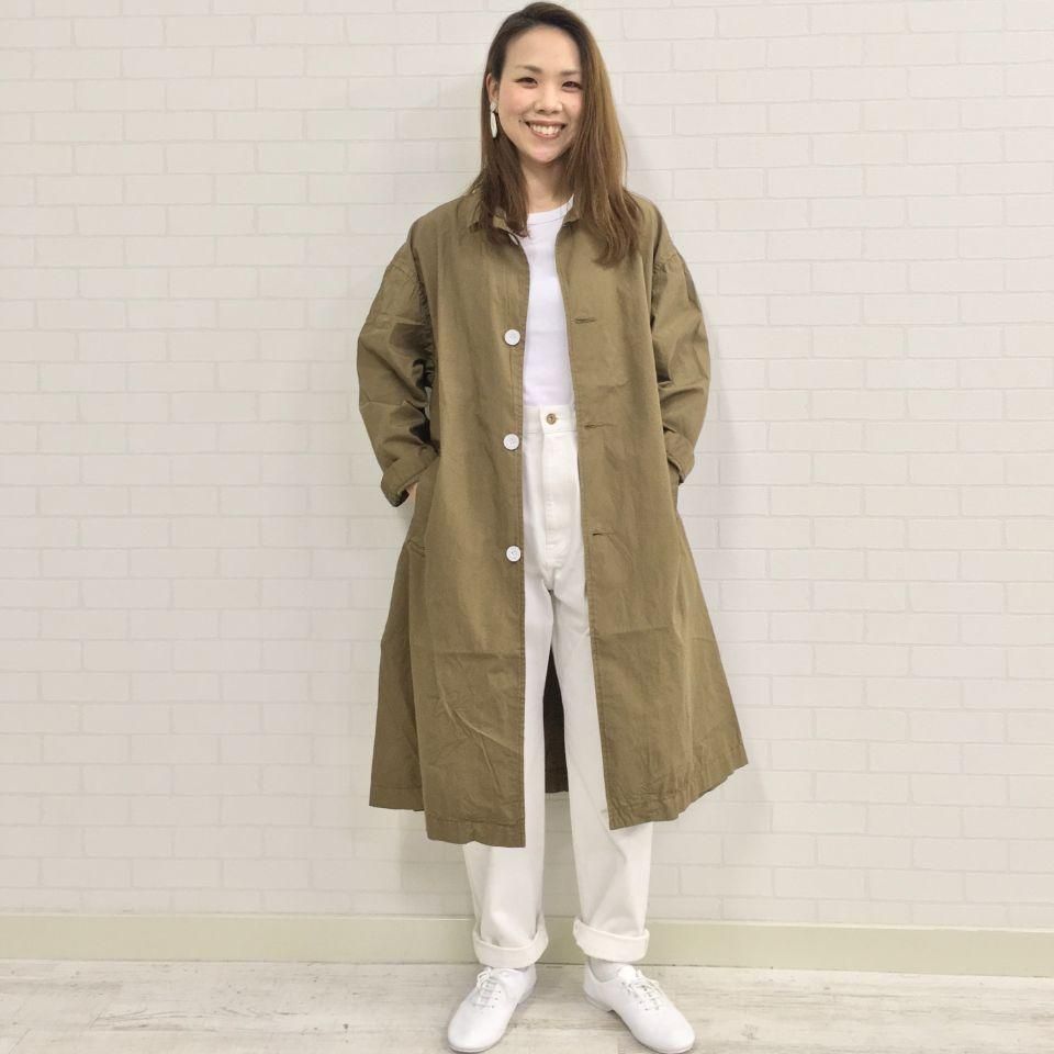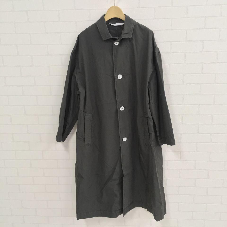 そんなハードになりがちな素材をFURALIが使うと、こんなすっきりした、綺麗目なステンカラーコートに成ります!