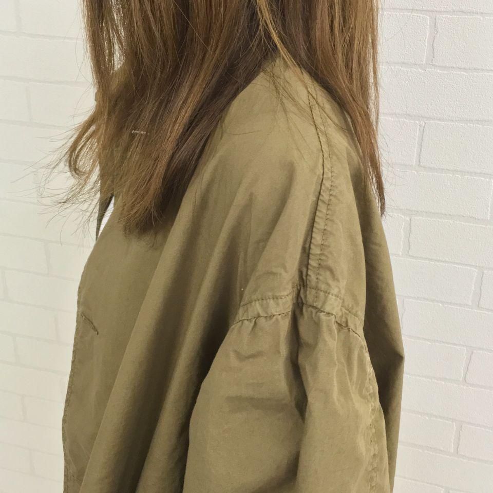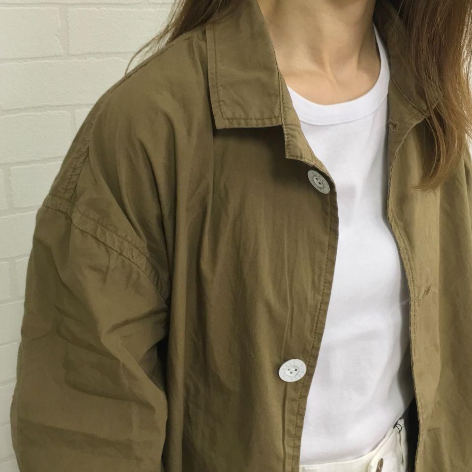 シャカシャカとした素材なので、気温の低い日にはウールのニットの上にも羽織っても、滑りが良いので、ストレス無く着て頂けます。