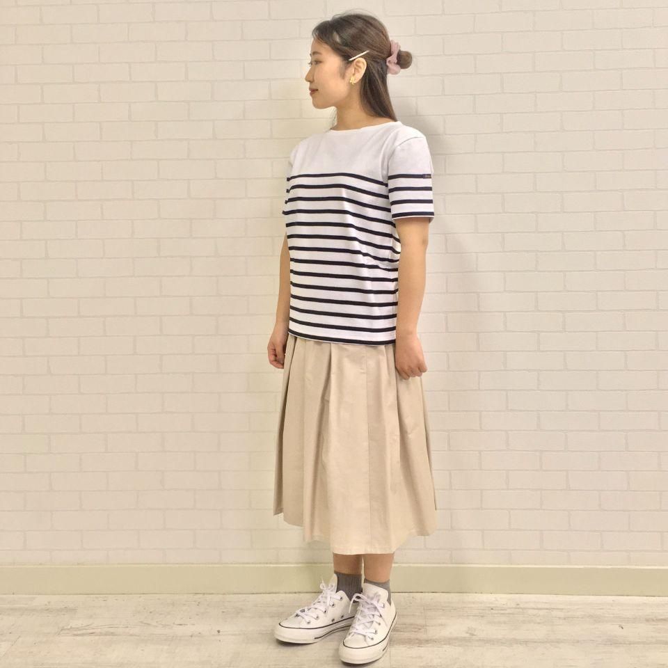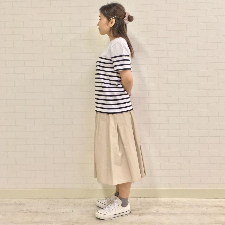 パネルボーダーになったカットソーはカジュアルすぎず、様々な着こなしに合わせやすいですよ。
