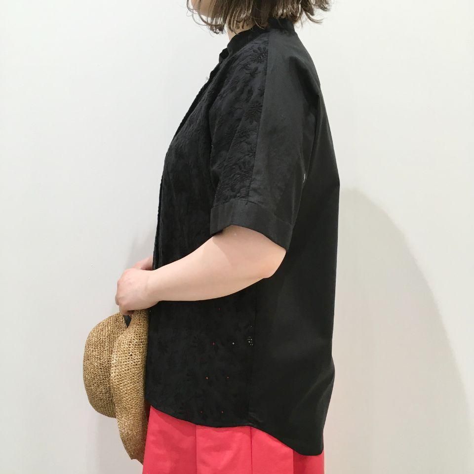 60ローンエンブロイダリードルマンスリーブ5分袖シャツ