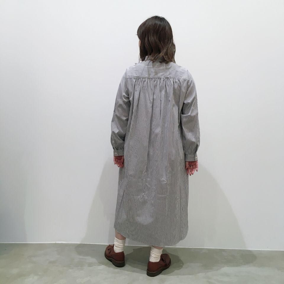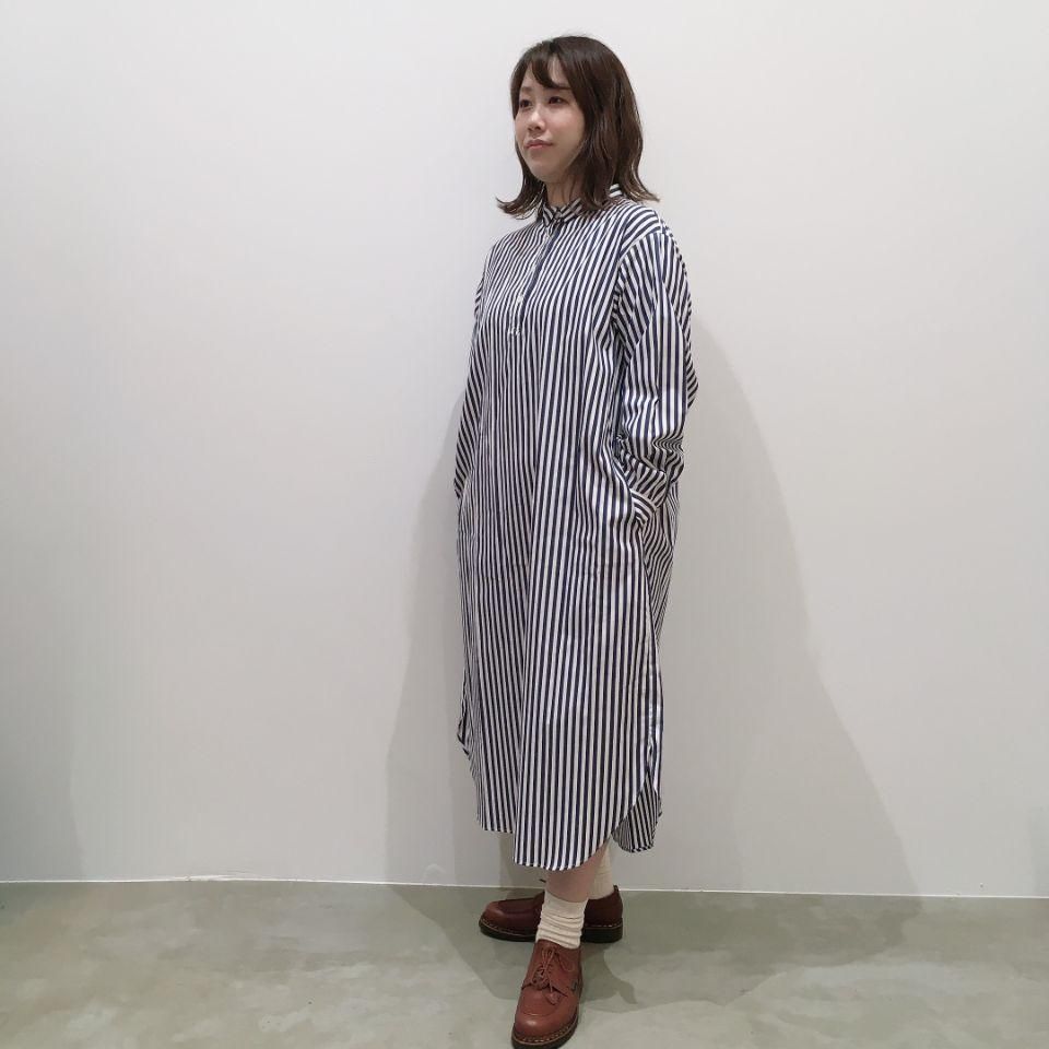 80/2ストライプ プチレギュラーカラーヘンリーネック シャツワンピース
