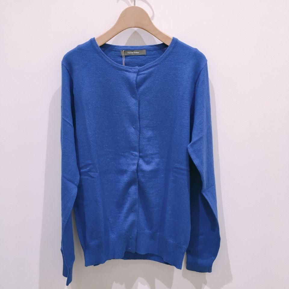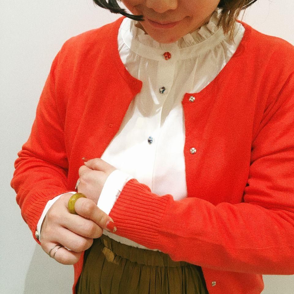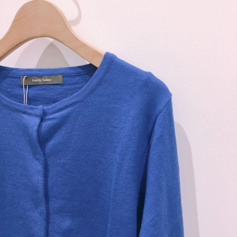 コットンカシミヤ 刺繍釦クルーネックカーディガン