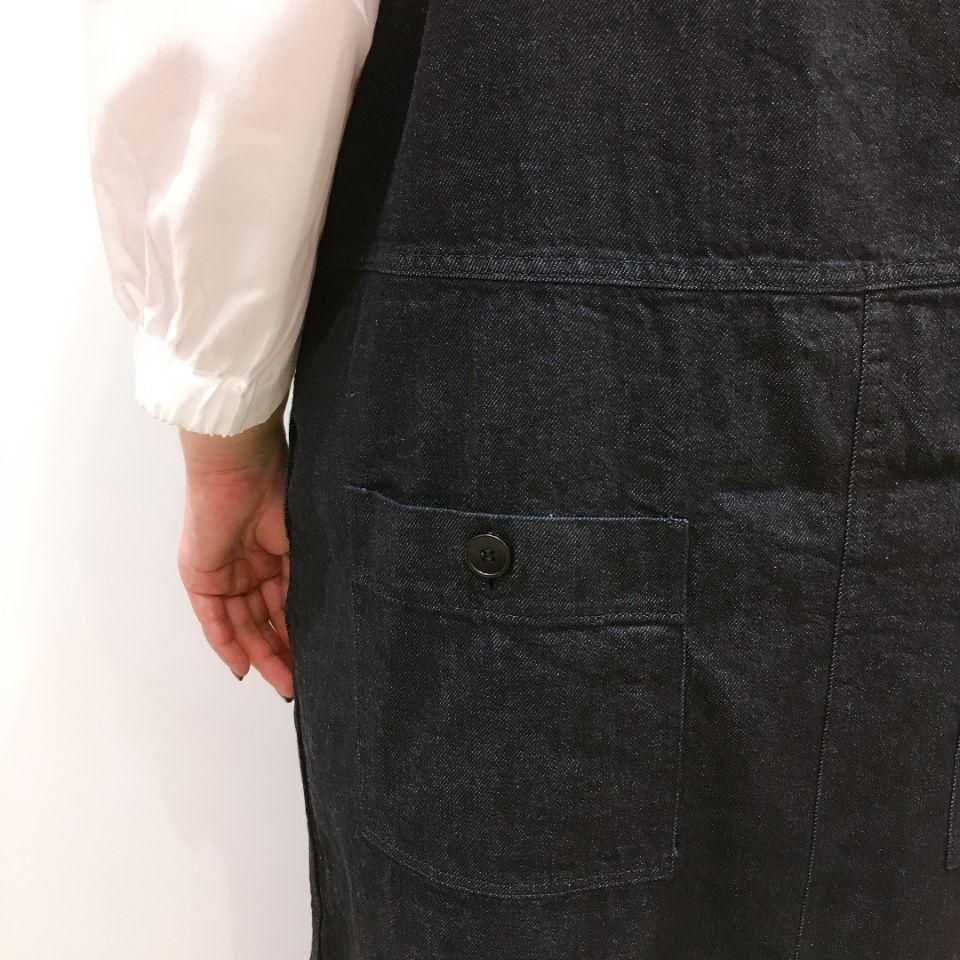 サラウェアから人気のインディゴデニム サロペットスカートが入荷です。