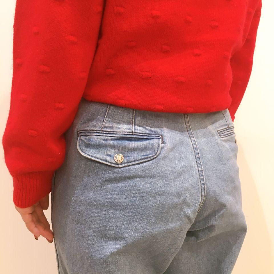 ・ヒップとワタリにボリュームを持たせ、裾にダーツを入れた丸みのあるワイドテーパードカット
