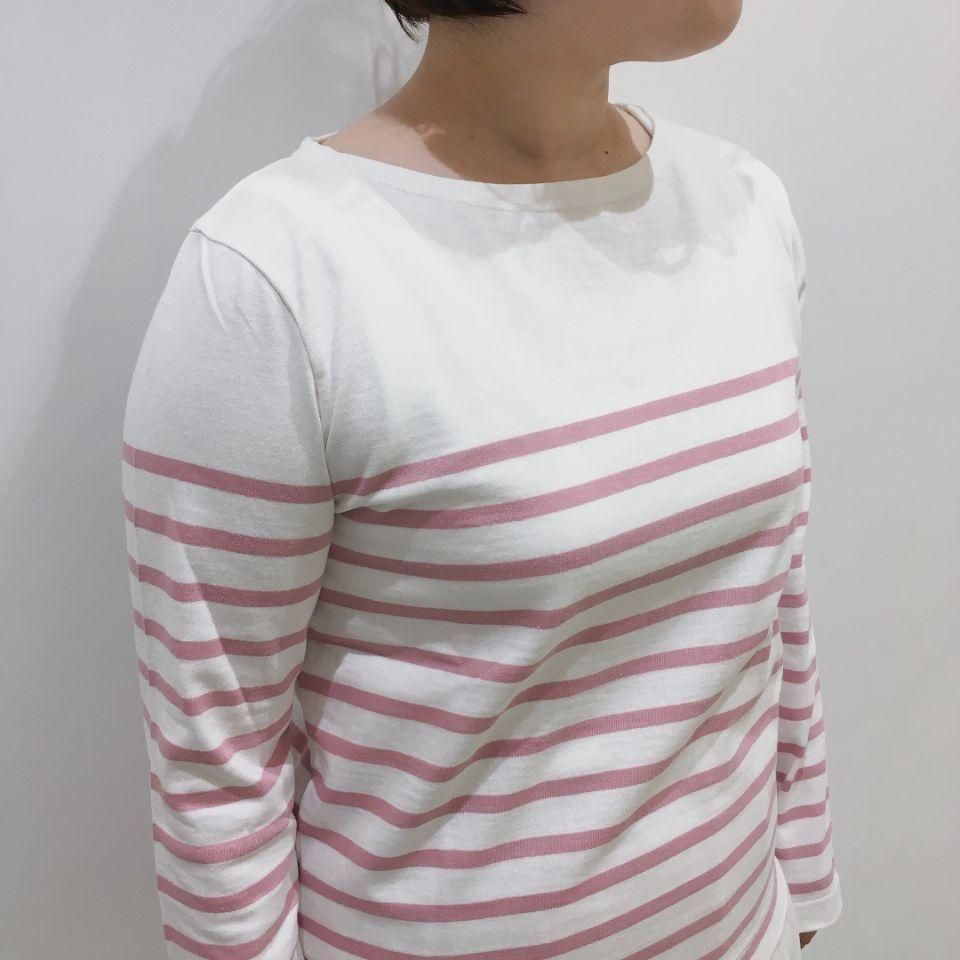 肩まわりに無地部分が来るパネルボーダーは、スッキリと爽やかな印象を表現してくれます。◎