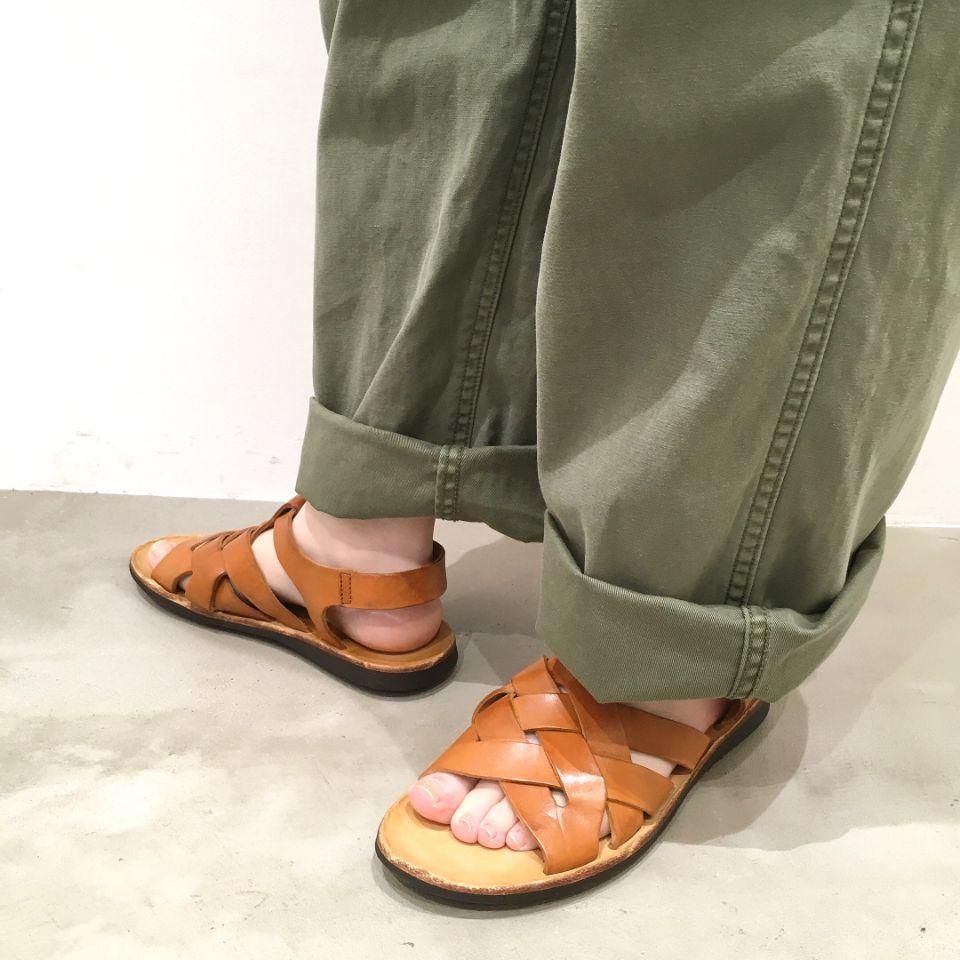 職人さんによるハンドメイドならではのクラフト感やそれによる風合いが魅力で、サンダルなのにカジュアルになり過ぎないデザイン。