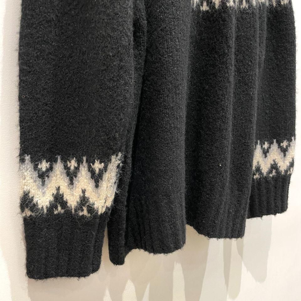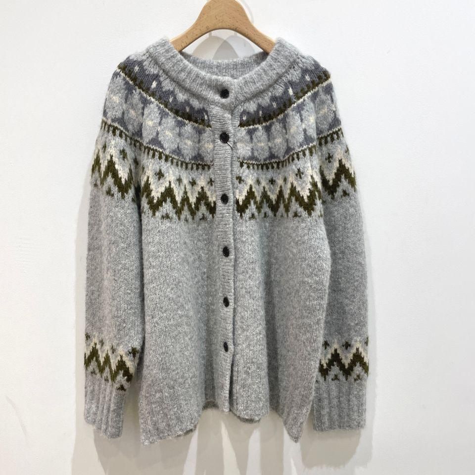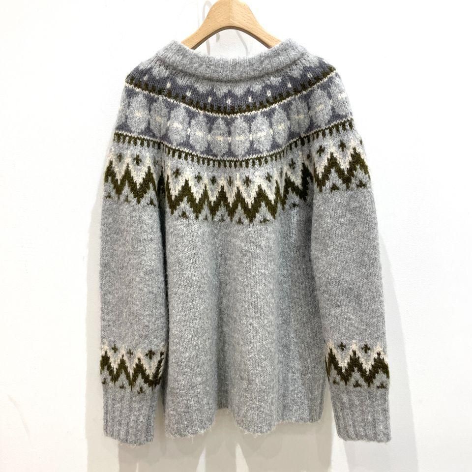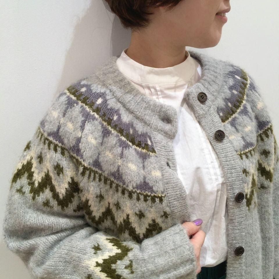 しっかりとボリュームがあり、目を引く顔回りのノルディック柄が、冬のコーディネートの主役に。