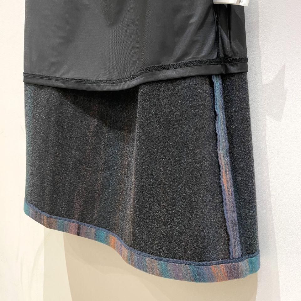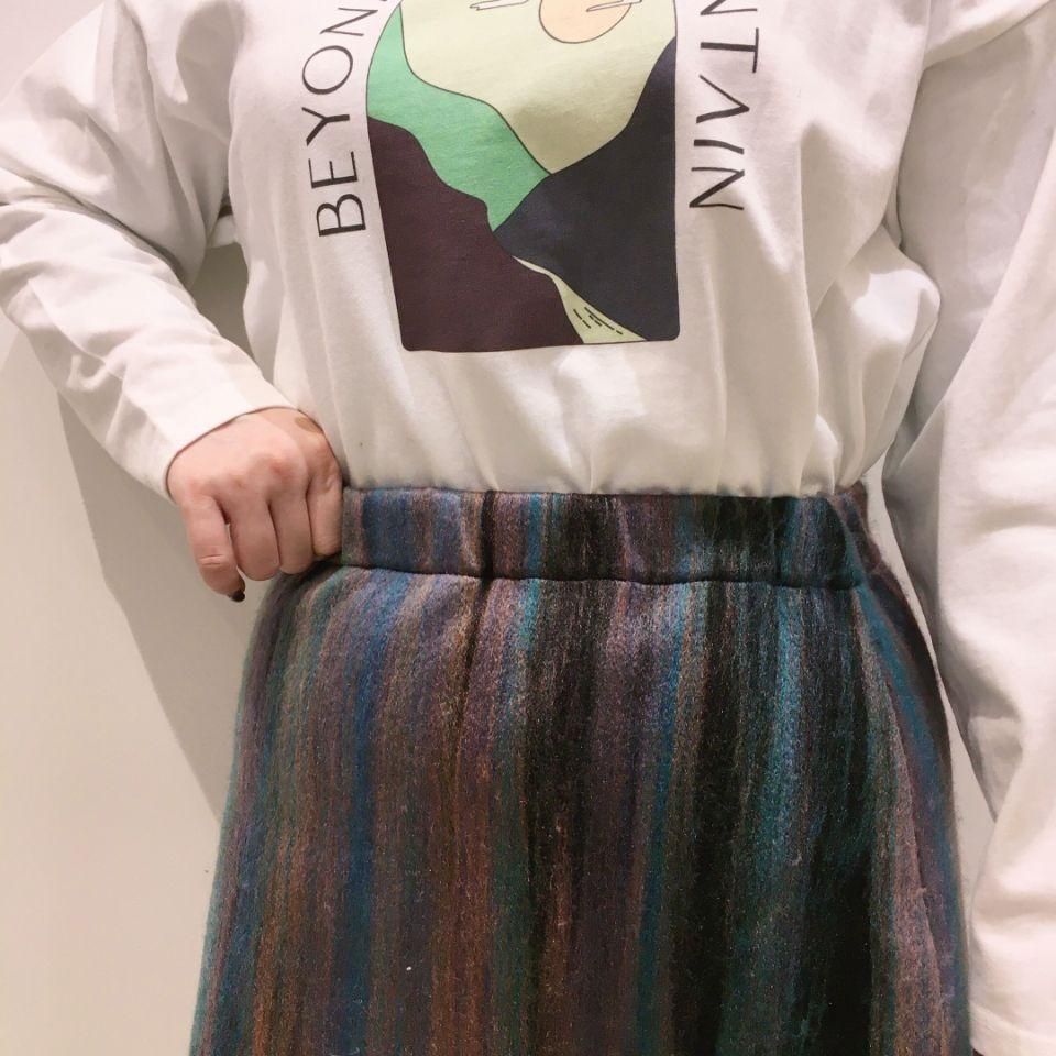 ニードルパンチのように生地の上にカラーの綿を加工したカットソーのスカート。
