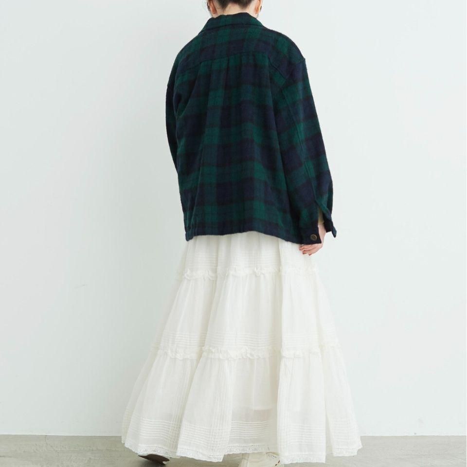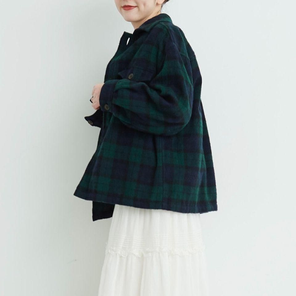 リサイクルウール(※)を平織りし、起毛をかけてふくらみを持たせた季節感のあるCHILD WOMANオリジナルのチェック生地。