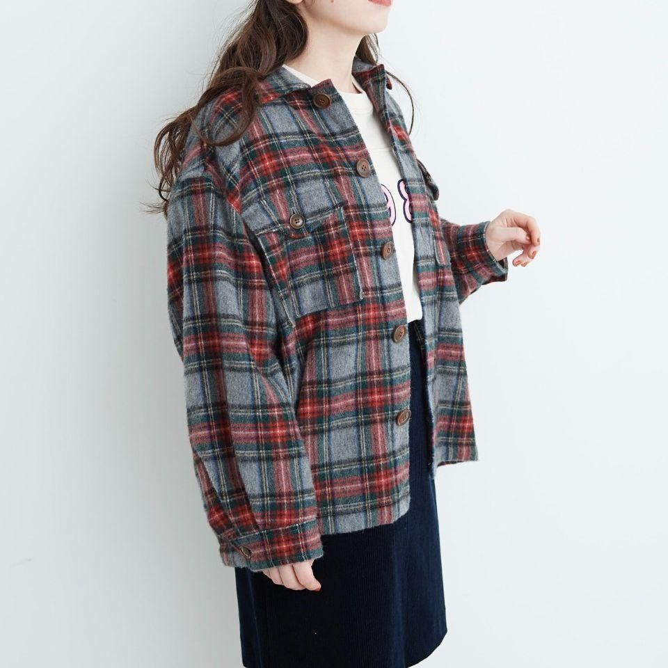 リサイクルウール平起毛チェック ブルゾン(0101BZ002222)(正規取扱品)
