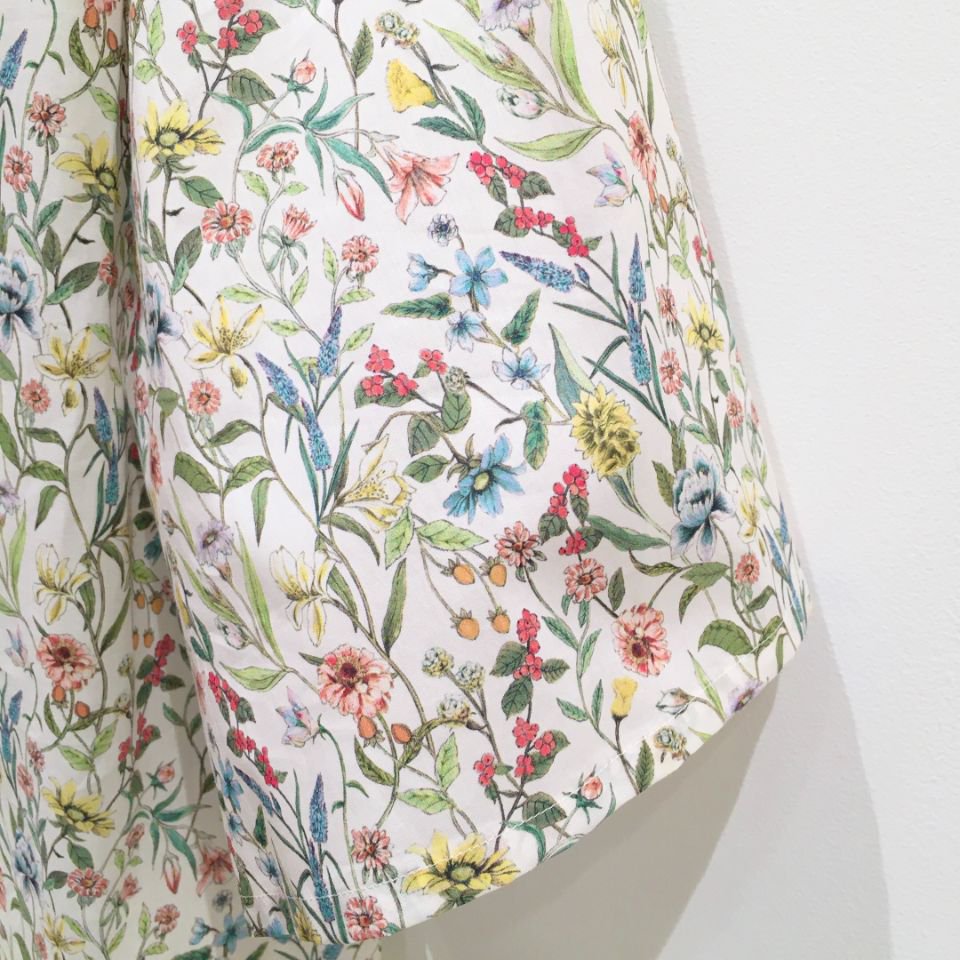 2010年春夏コレクションで発表されたリバティプリント特有の密集した小花柄です。アーカイブに保管されている資料にあったらせん状に描かれた美しいバラの生地見本をもとに、丁寧にインクで描きなおされました。
