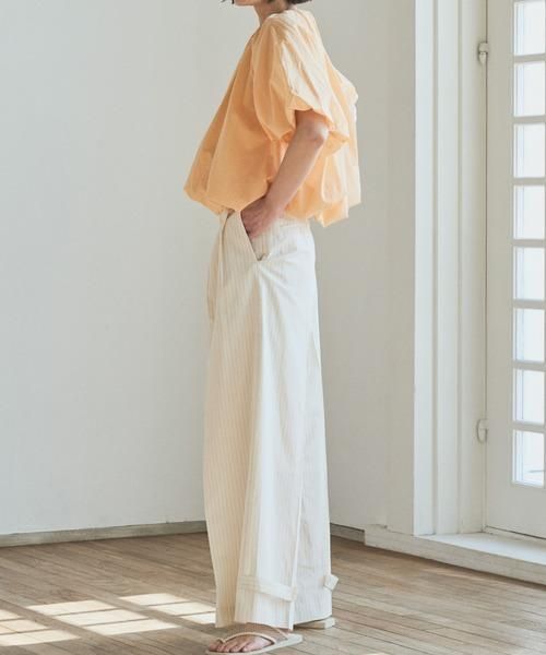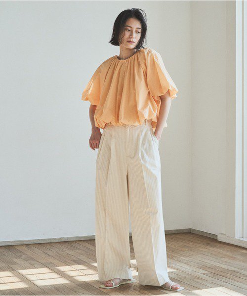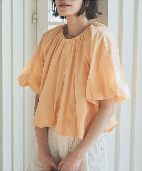 トレンド感溢れるバルーンスリーブが視線を奪う、夏らしさたっぷりのブラウス。
