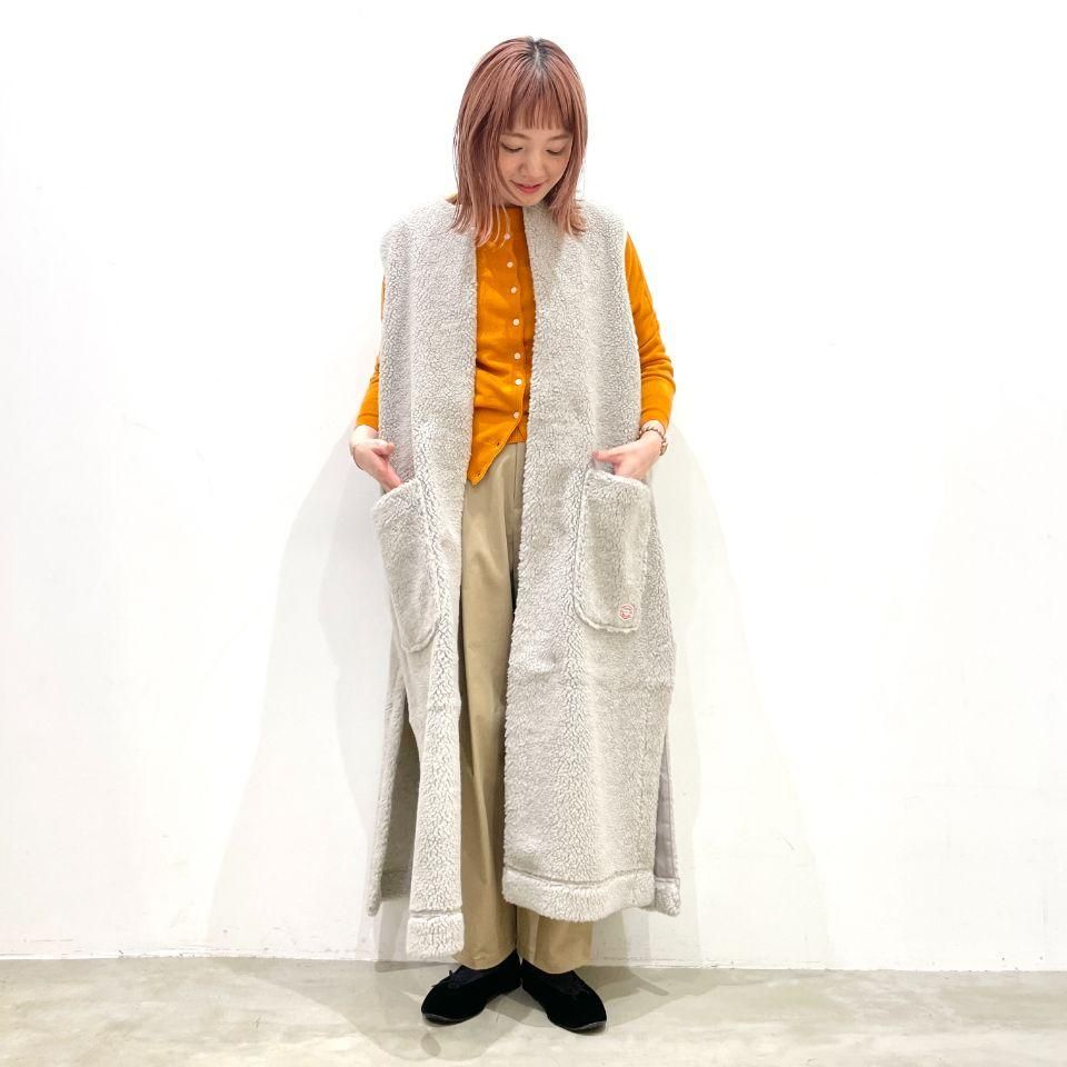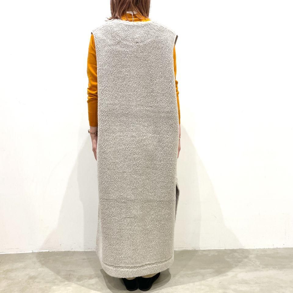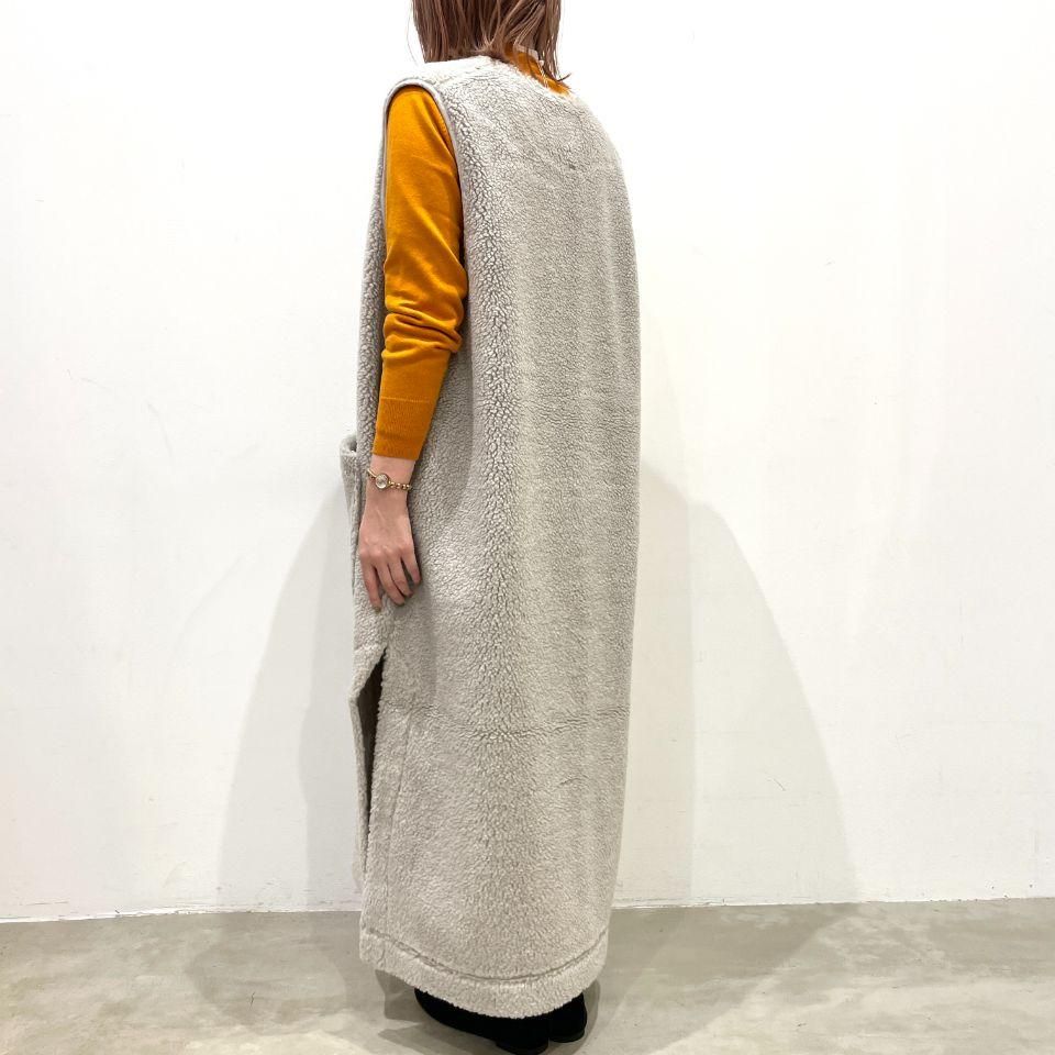 秋冬のムードを盛り上げてくれるボアのロングベスト。