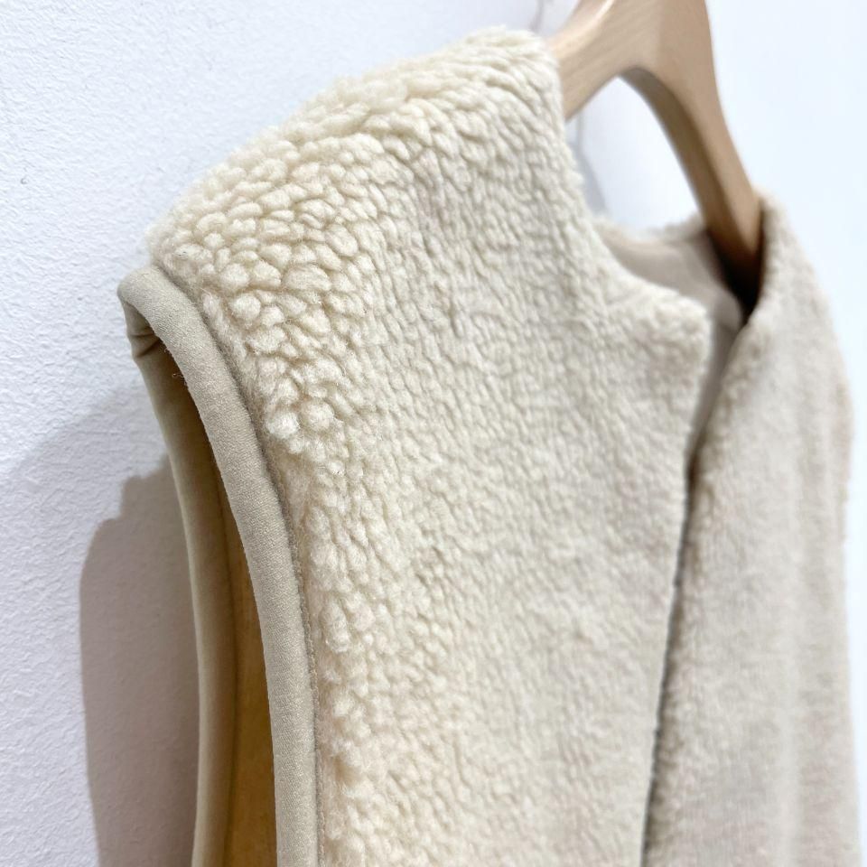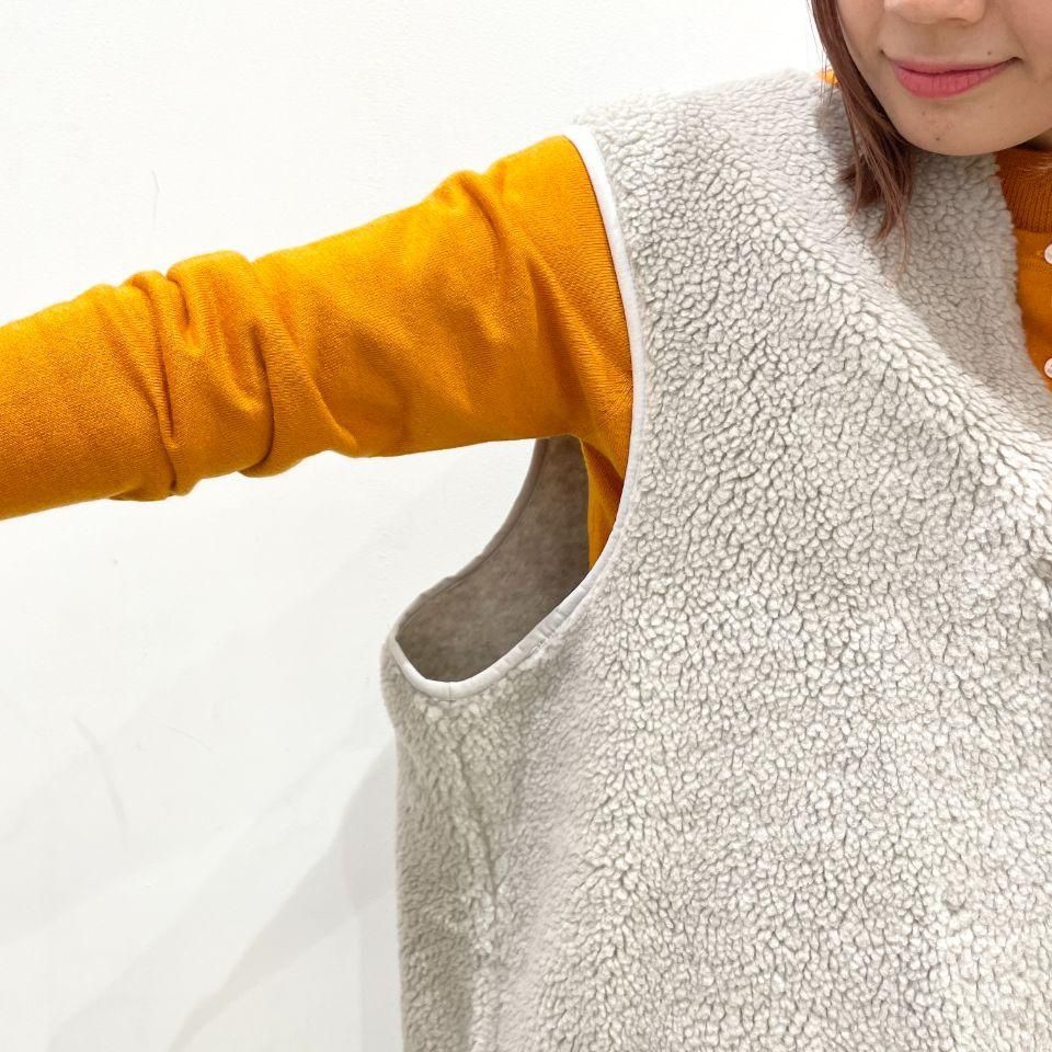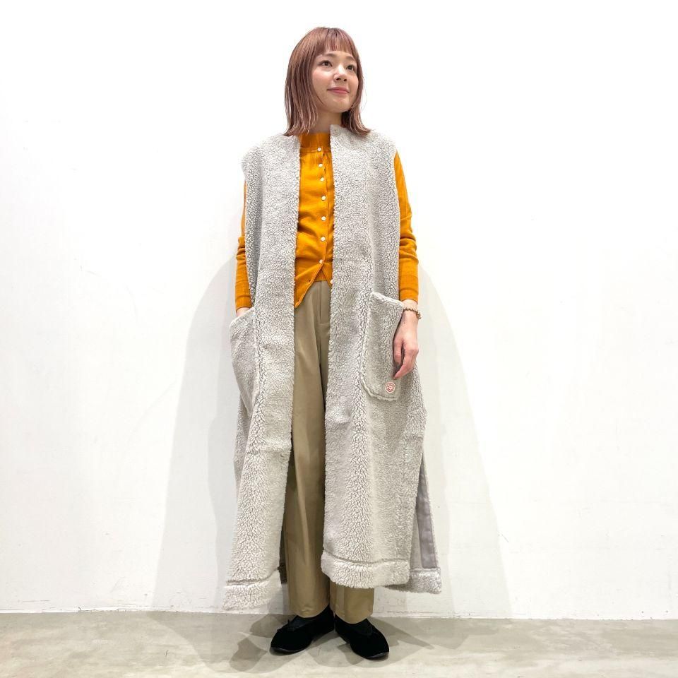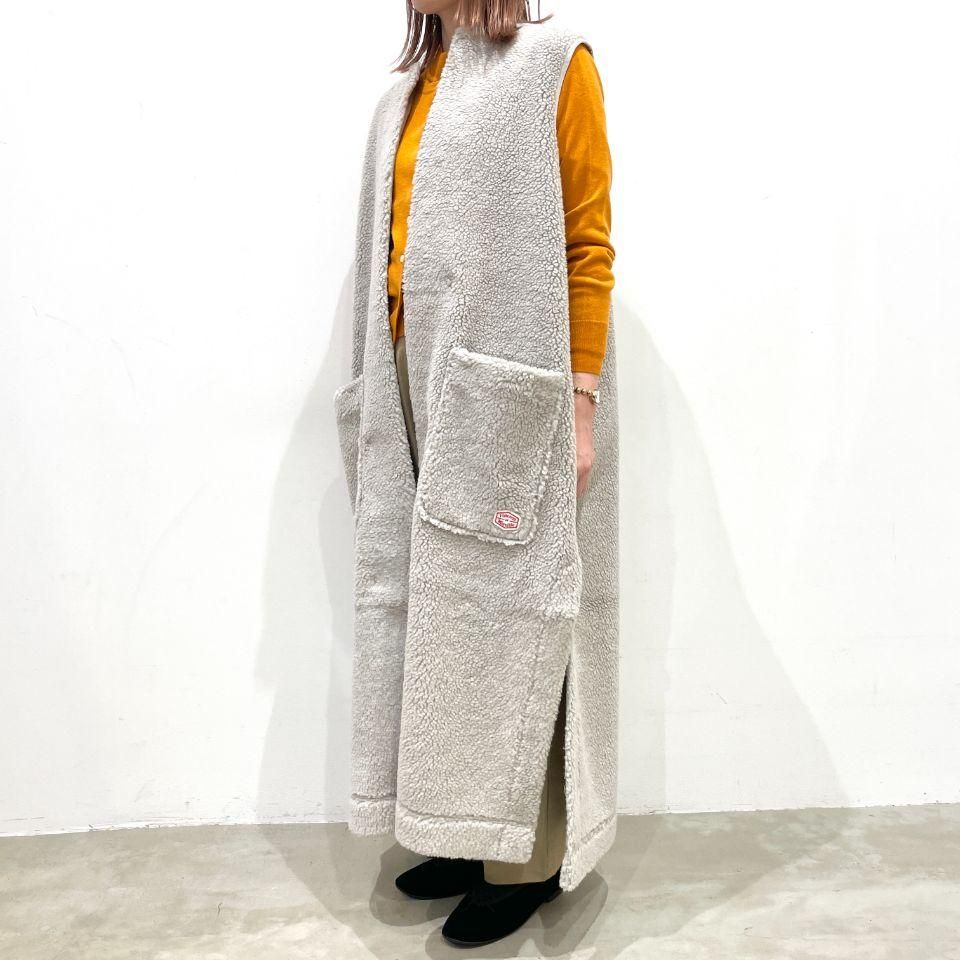 秋冬のムードを盛り上げてくれるボアのロングベスト。