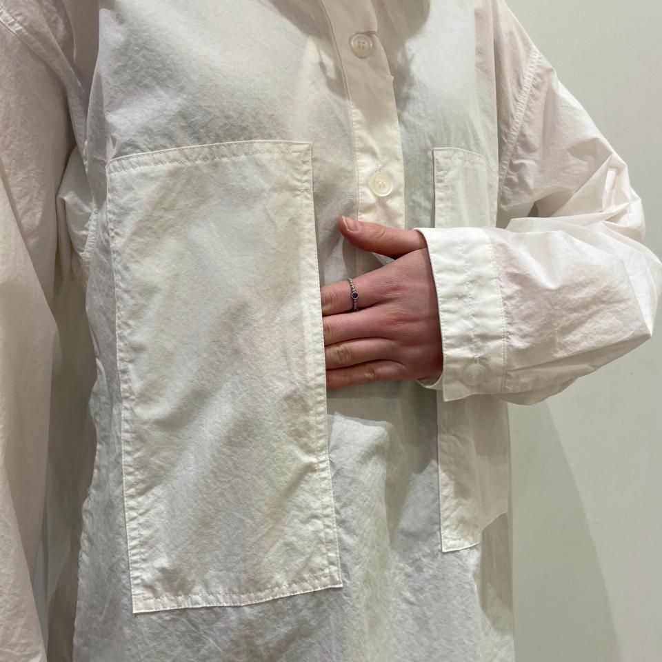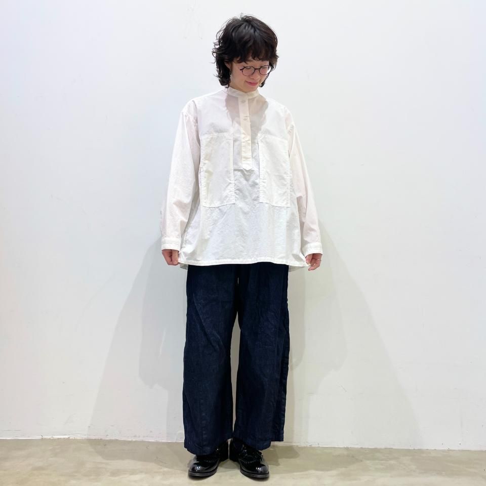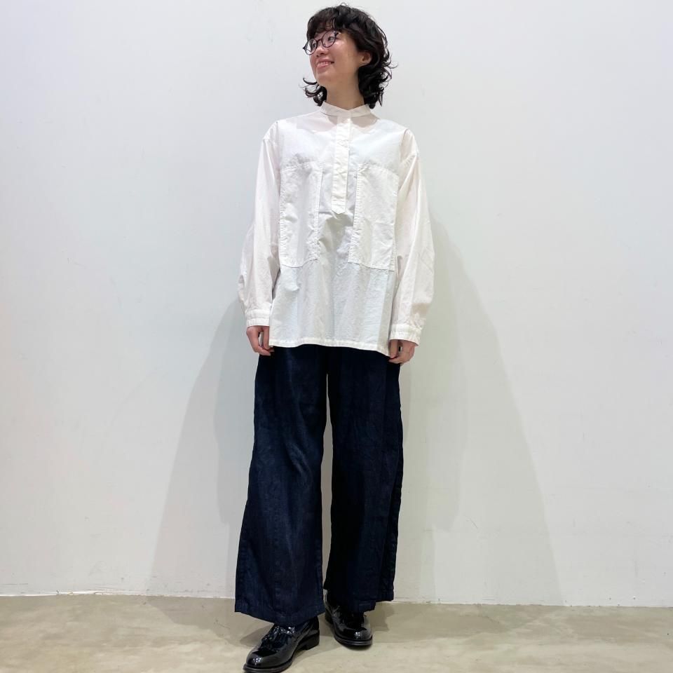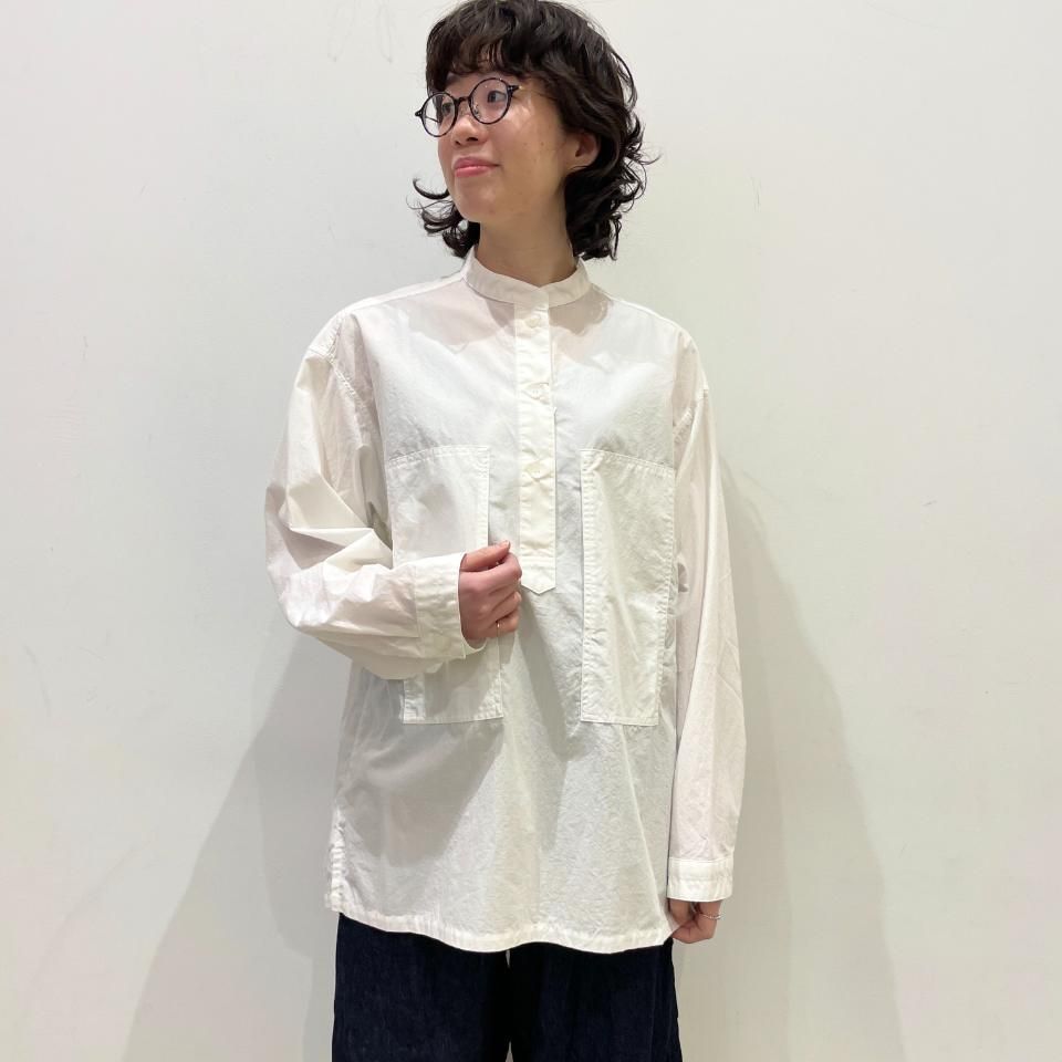 ざっくりとした風合いでゆったりシルエットのワークテイストのシャツ。