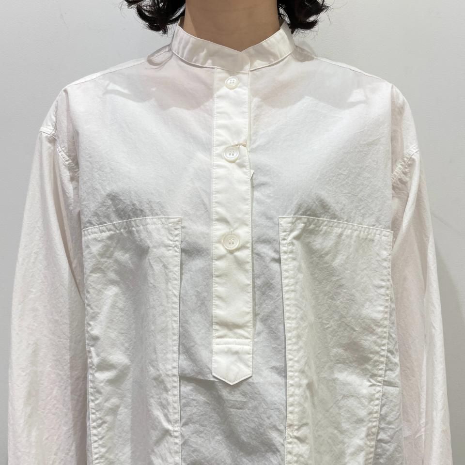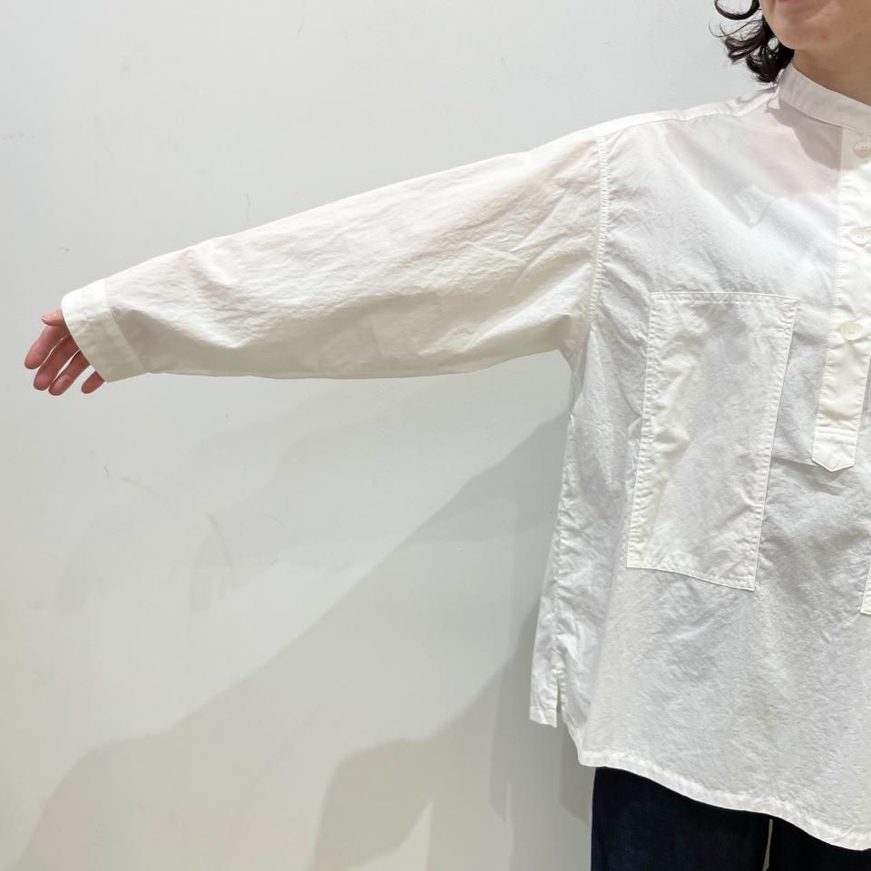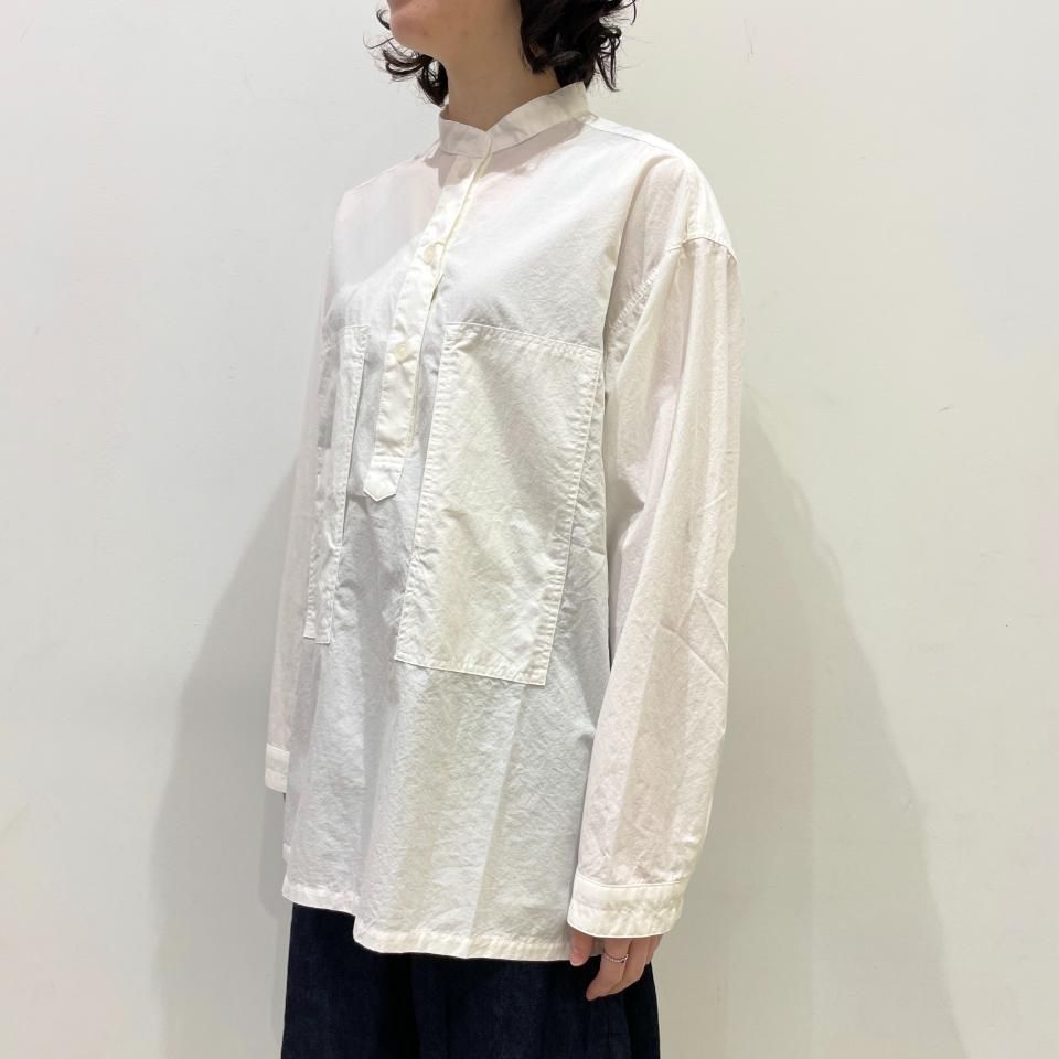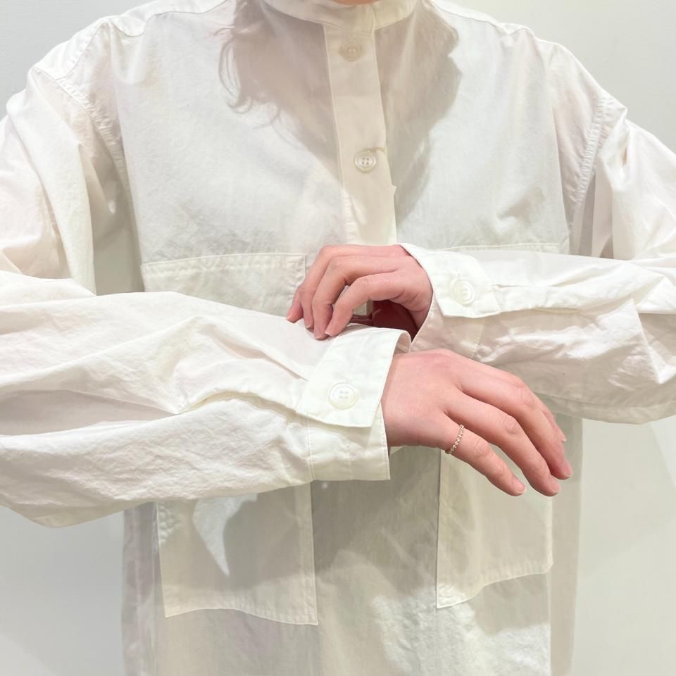 ざっくりとした風合いでゆったりシルエットのワークテイストのシャツ。