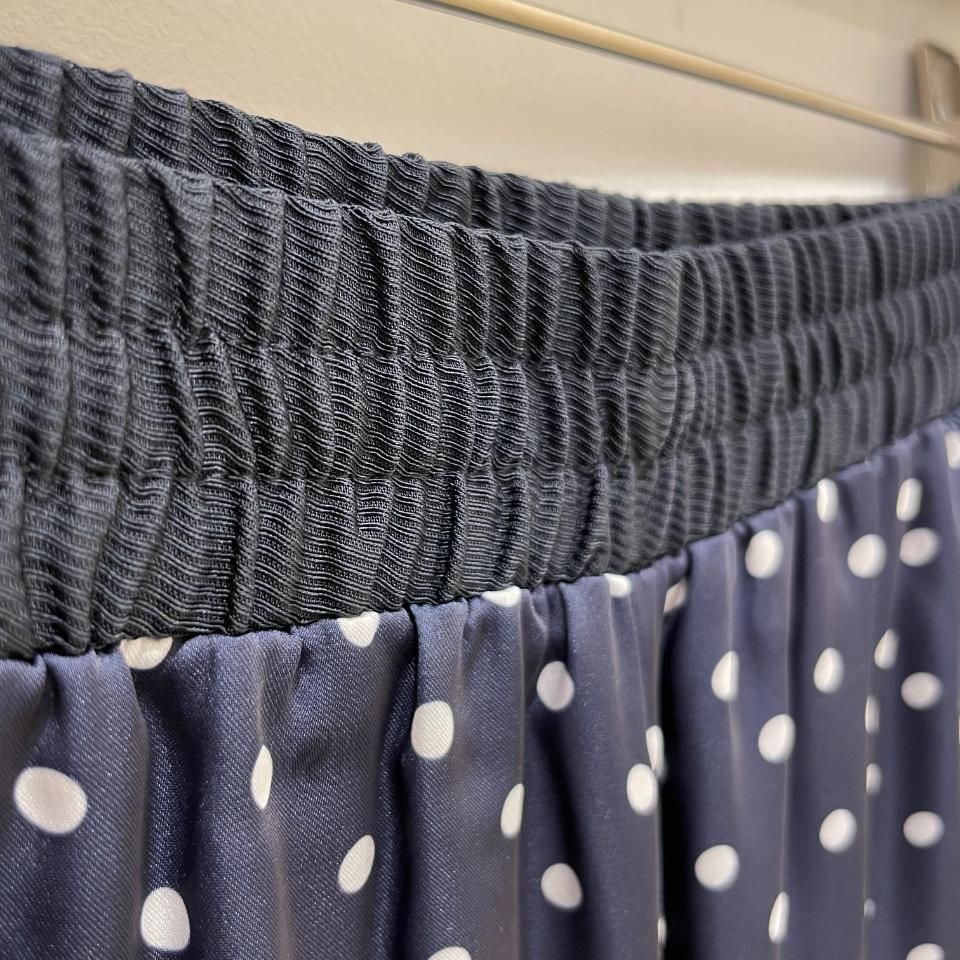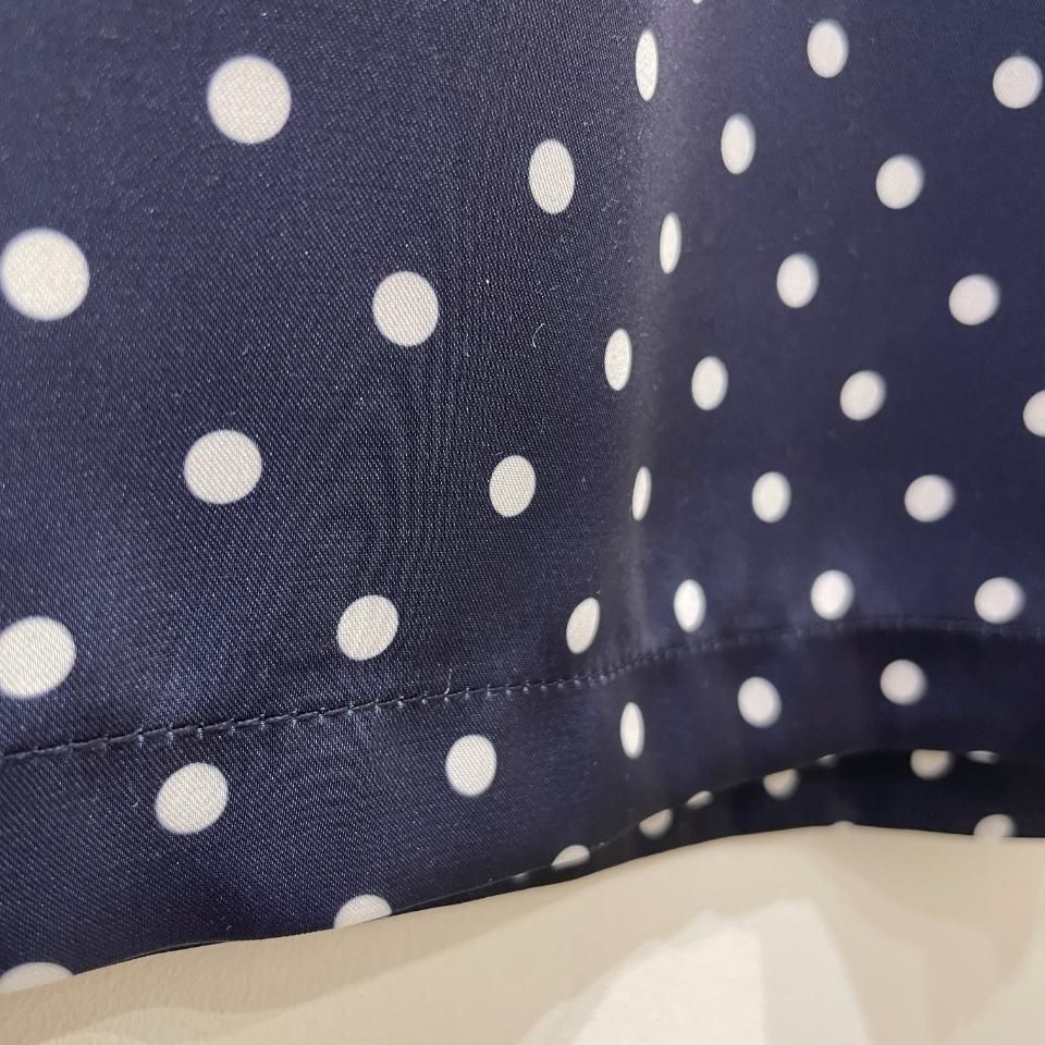 小さめのドット柄なのでポップな印象になりすぎず、サテンの艶と相まって高級感を生み出してくれます。