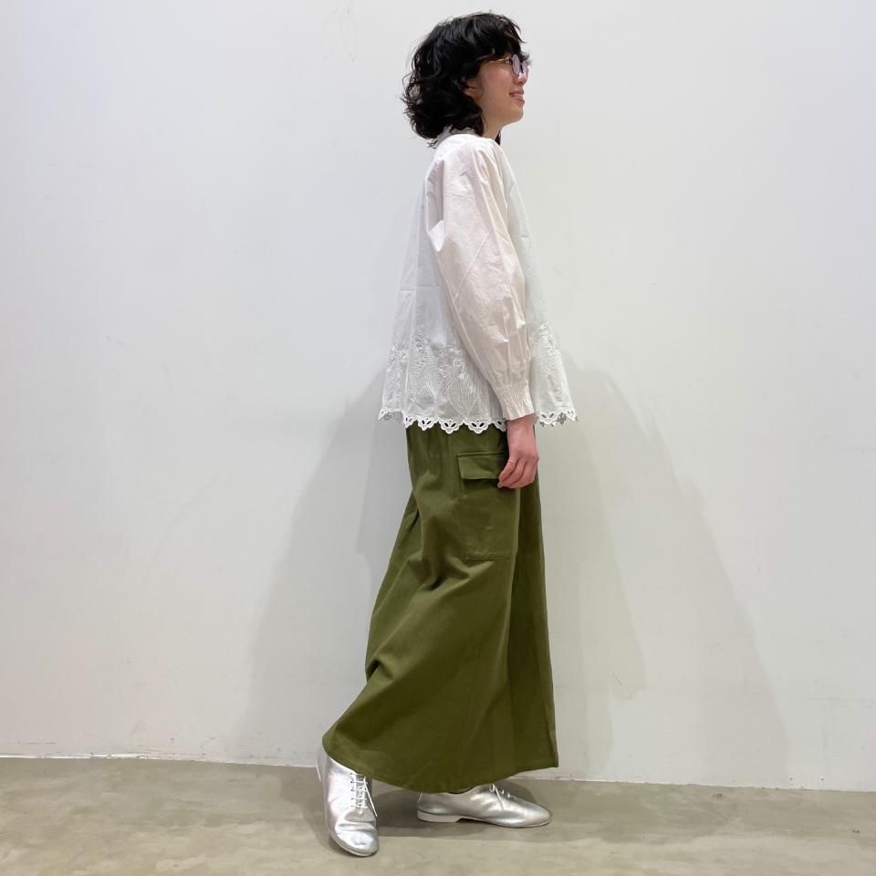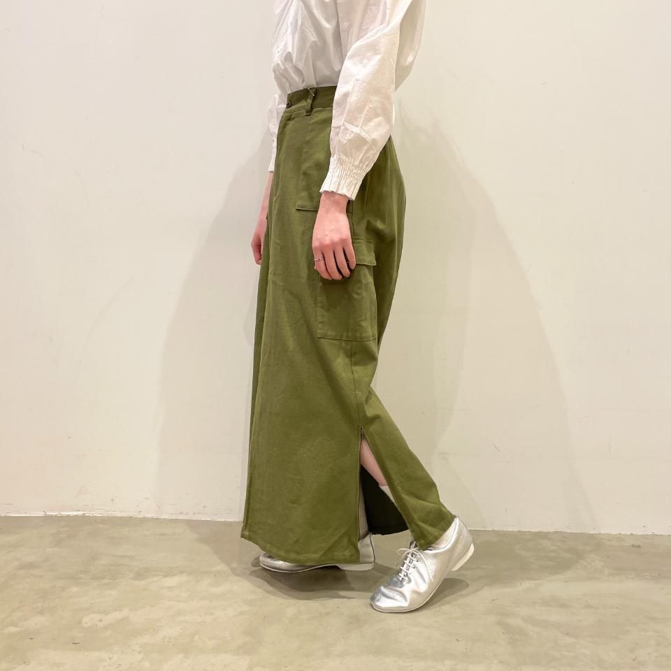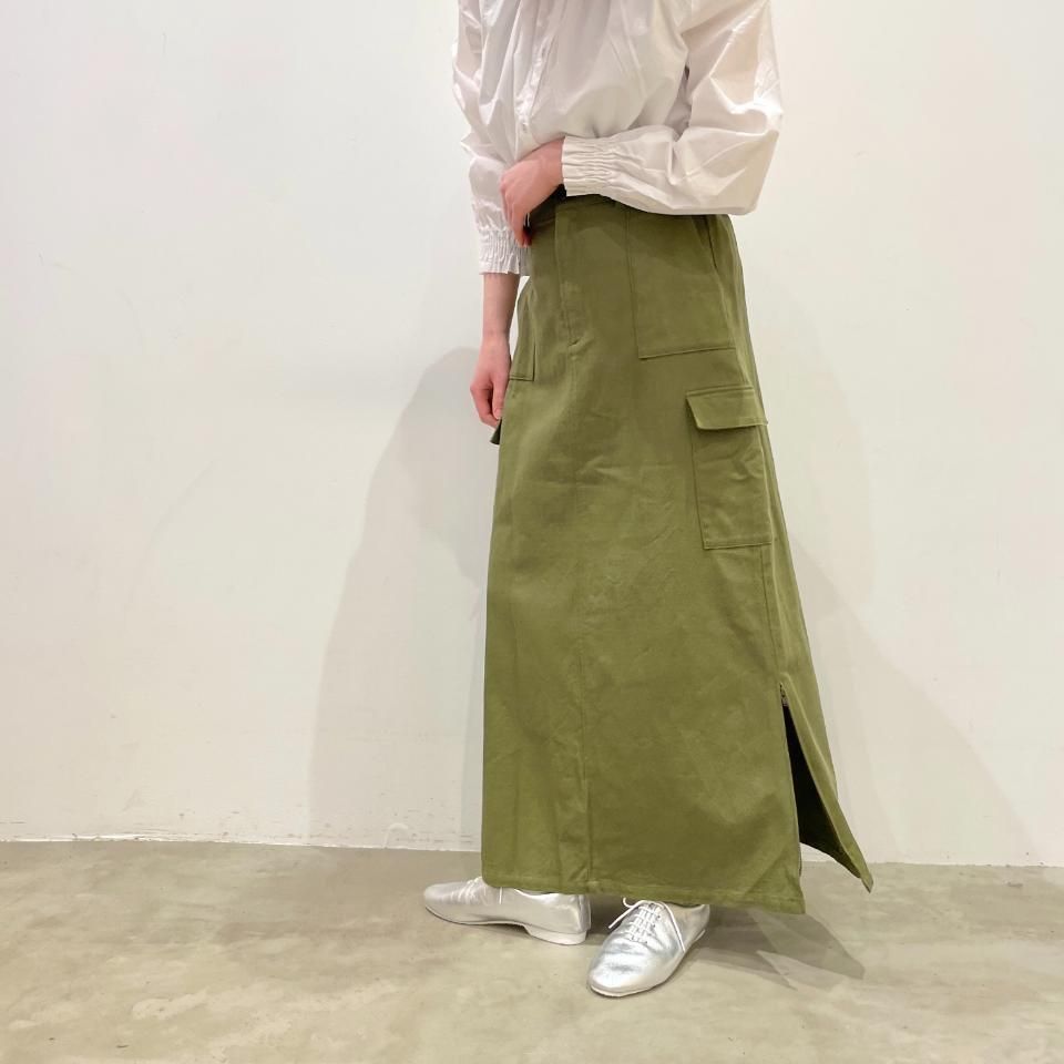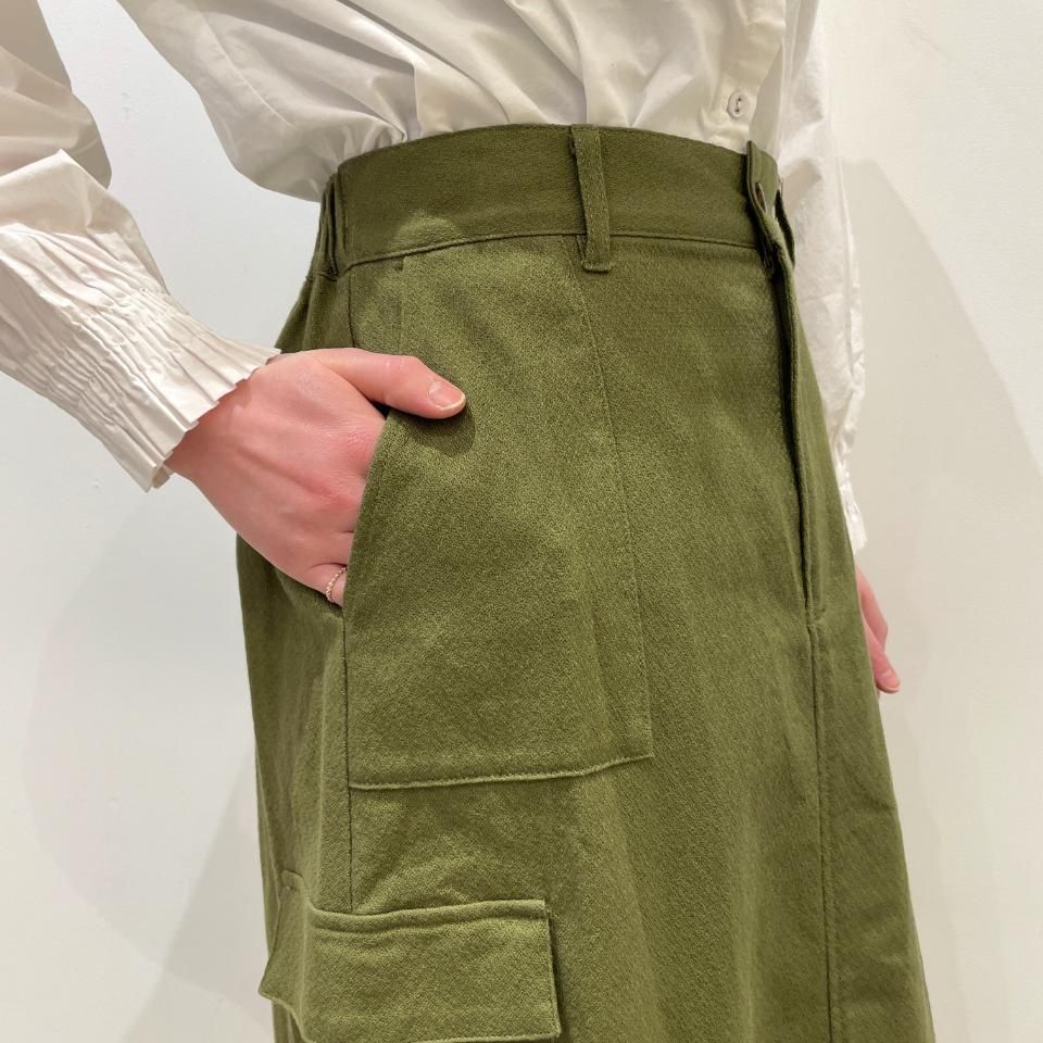 ベイカーポケットとカーゴポケットがアクセントになったスカート。