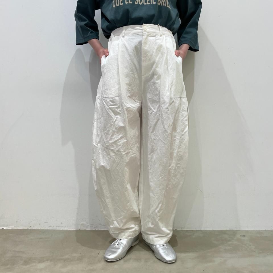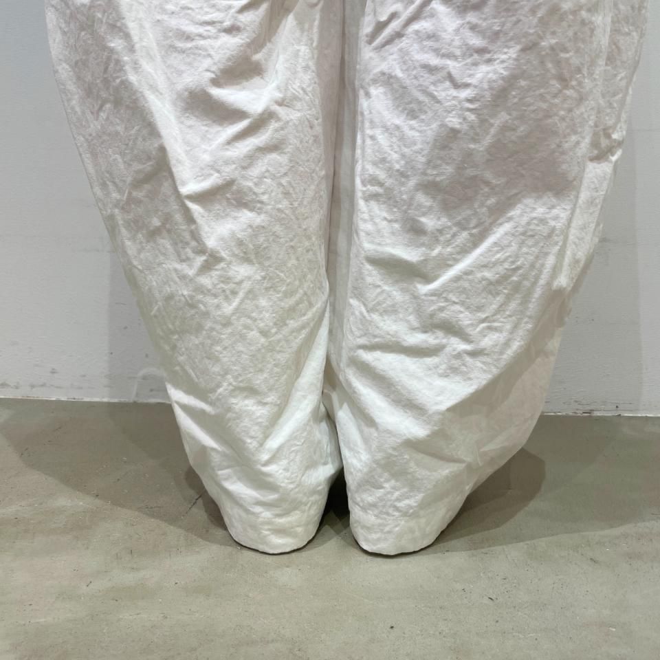 サイドに大きく施されたタックが特徴的なコークンパンツ。