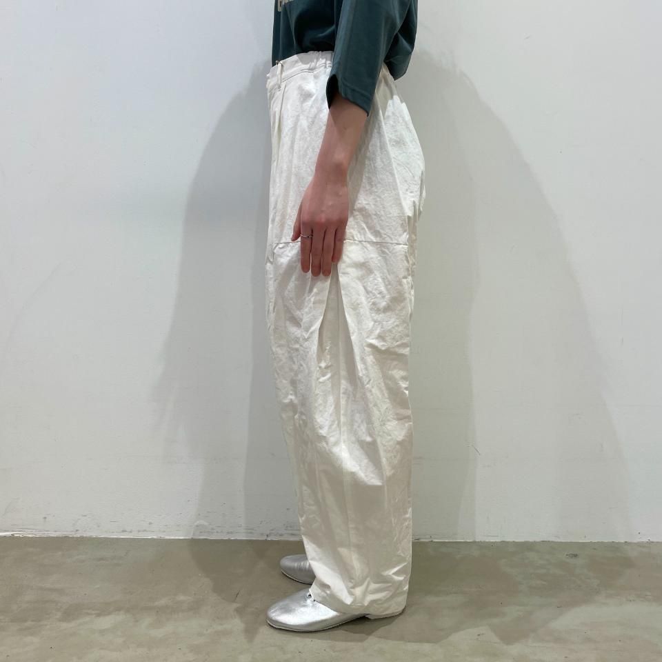 ヒップから裾にかけて身体のラインをひろわないシルエットや、リラックス感のある穿き心地も嬉しいポイントです。