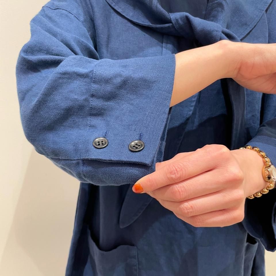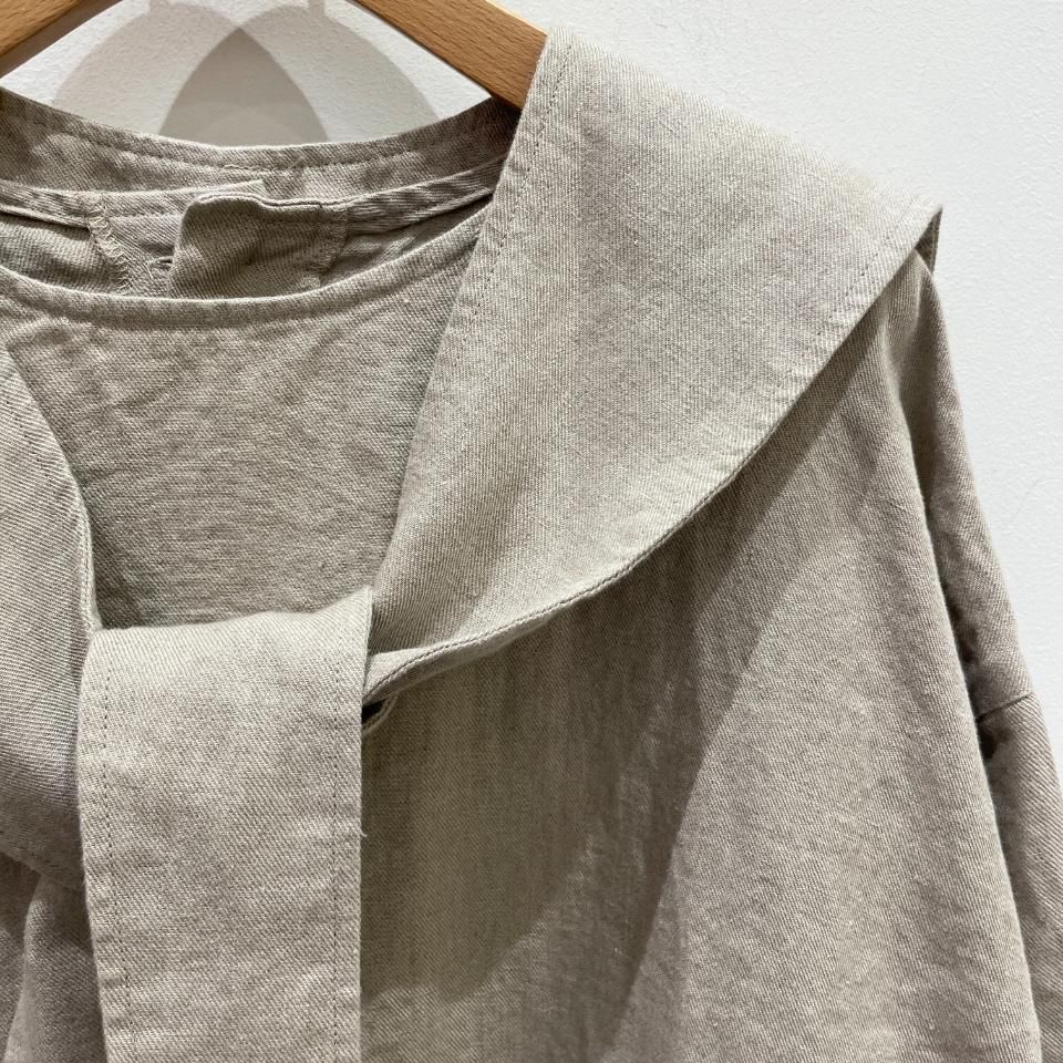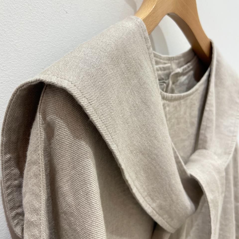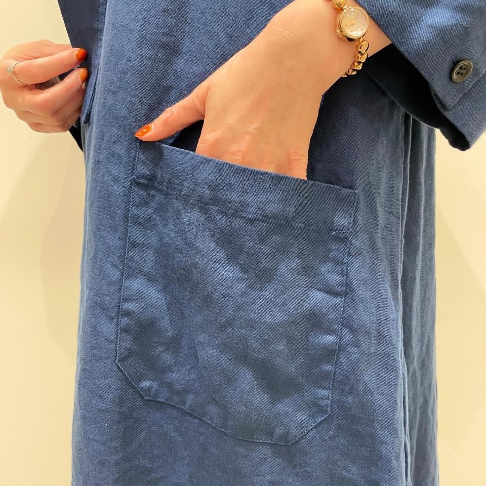 しっかりとした手触りの春夏の定番素材リネンツイルはお取り扱いも簡単、春先から秋口まで長く着られるのも魅力です。