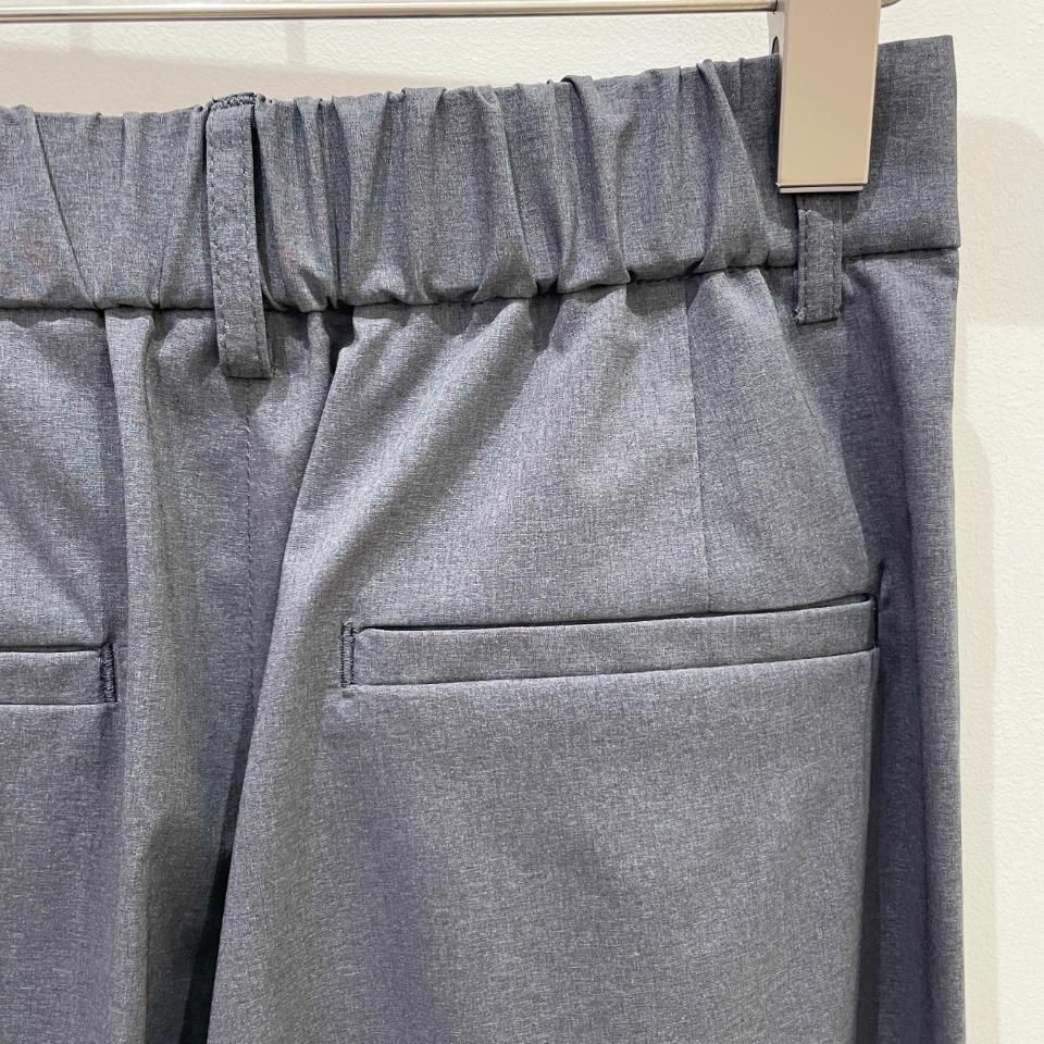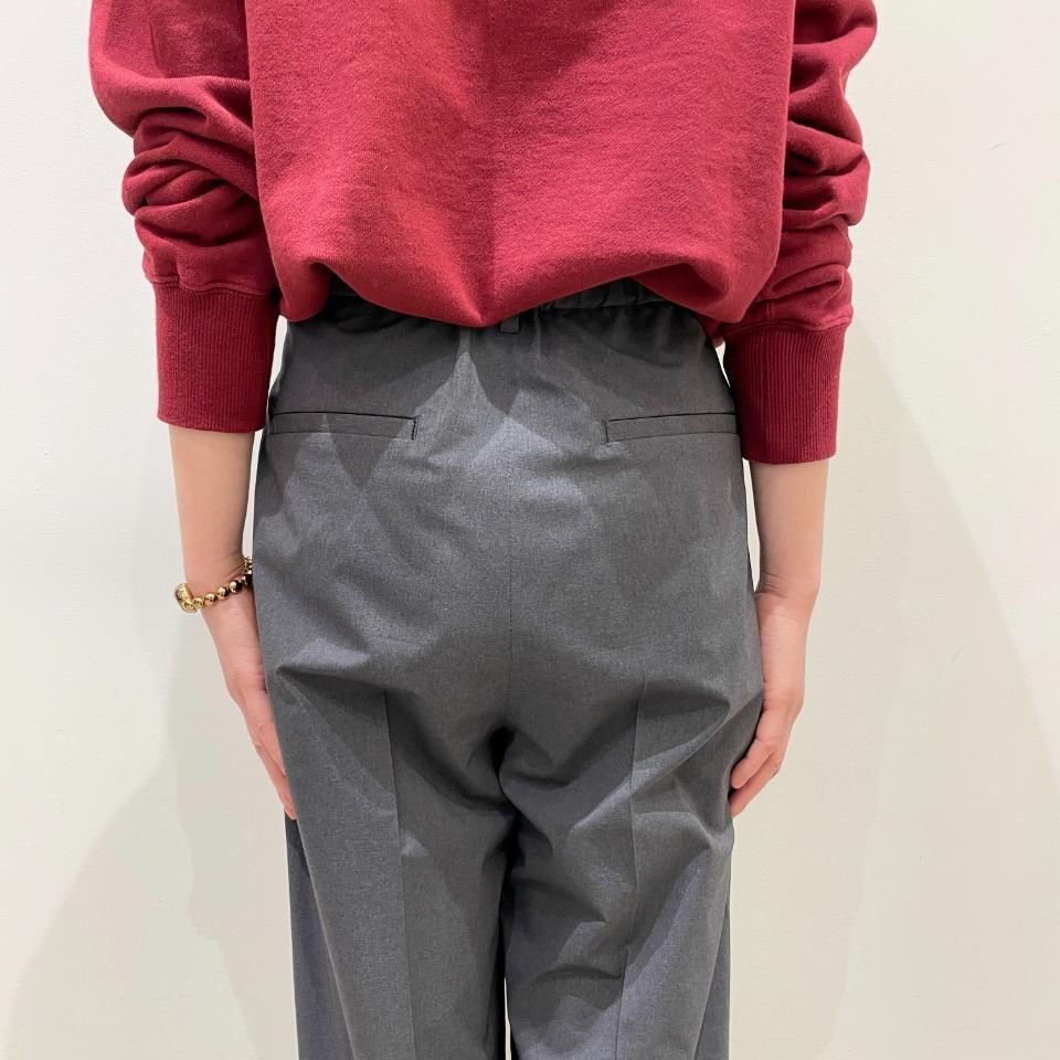 ウエストは後ろインゴム仕様でイージーなはき心地ながら、トップスインしてもきまります。