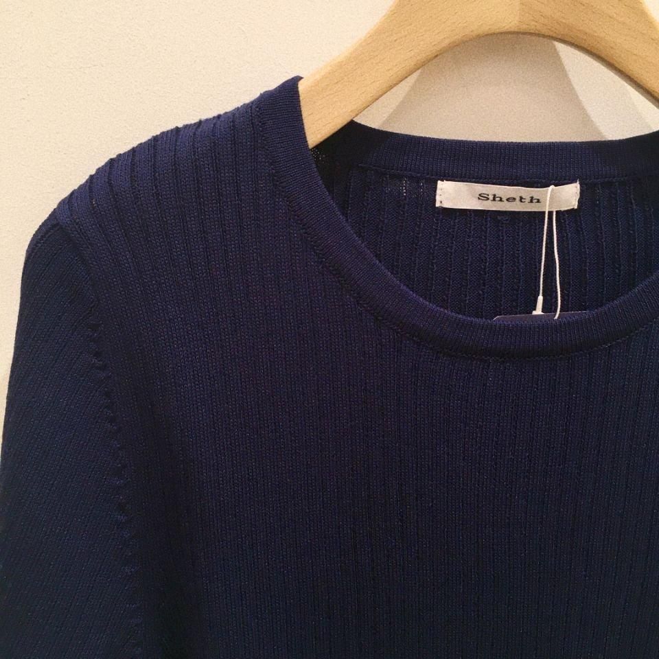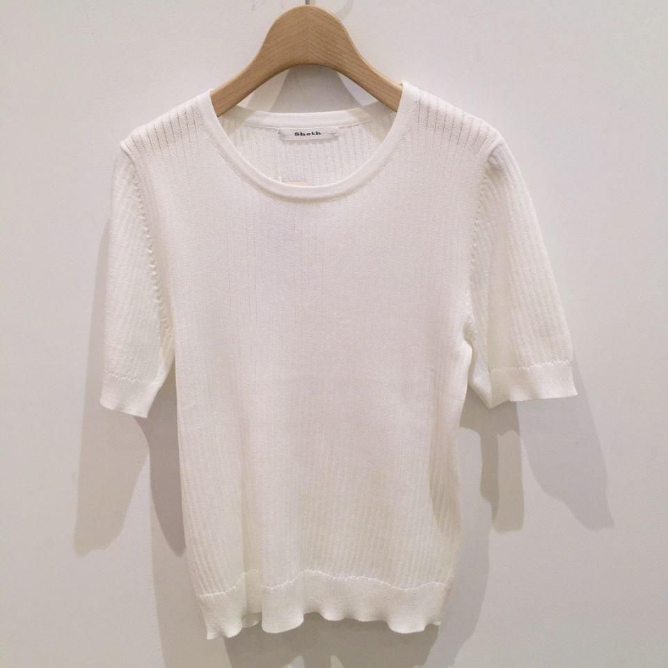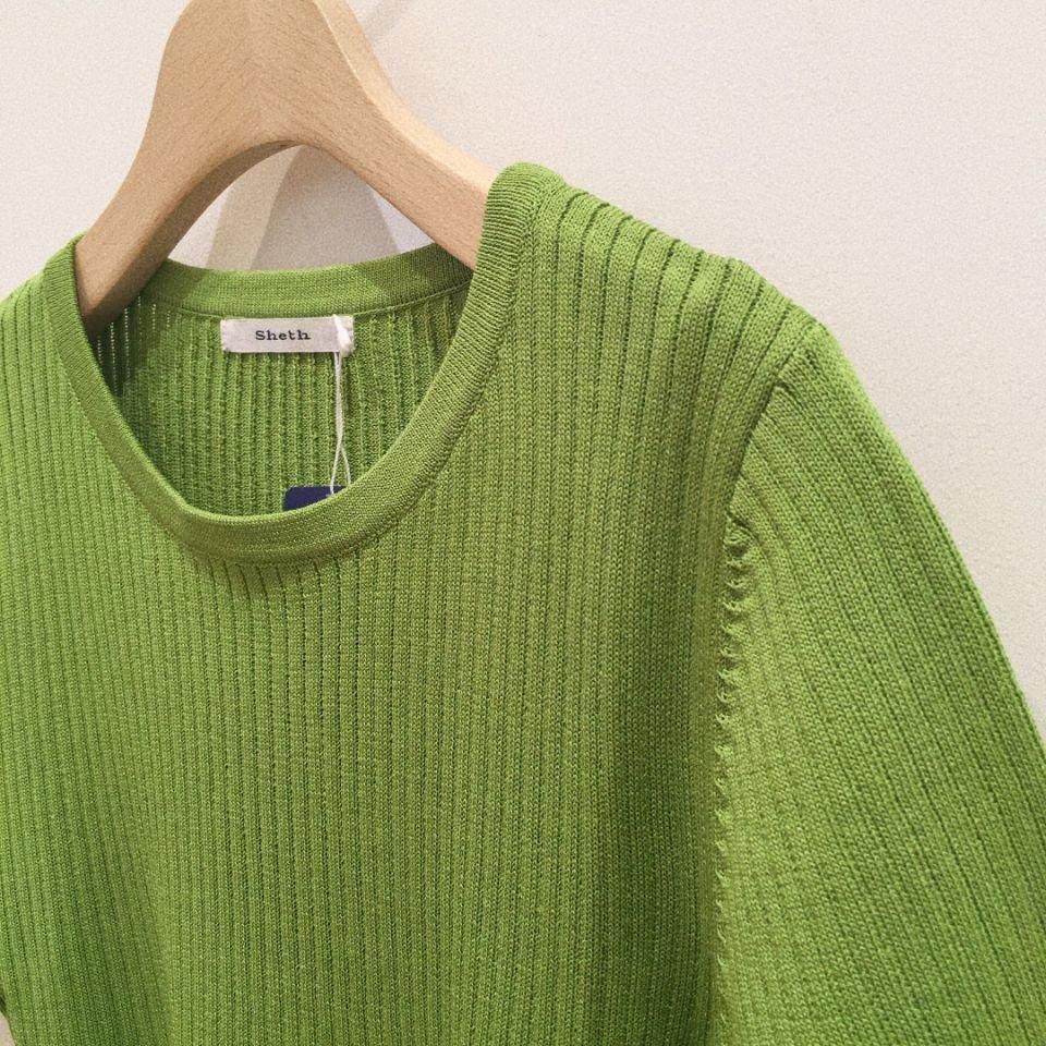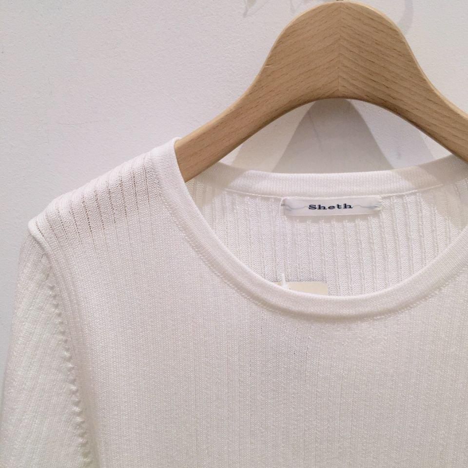 Shethのリサイクルポリエステルのシリーズから、リブ網の半そでニットがブラッシュアップして登場しました。