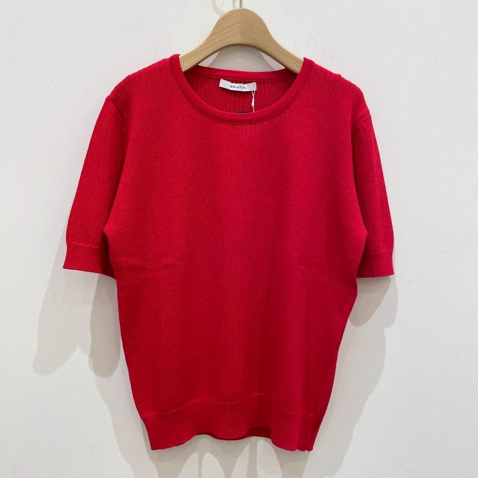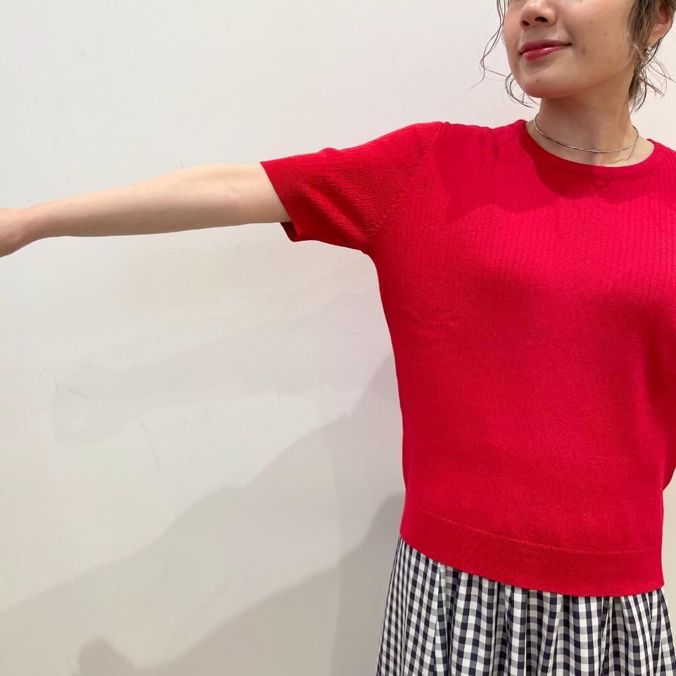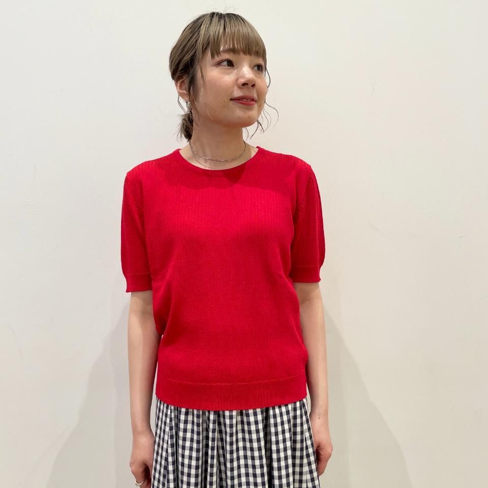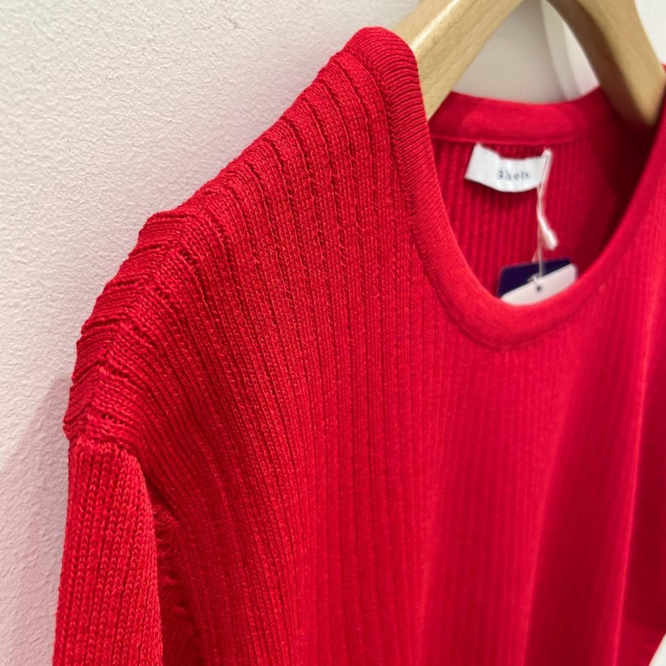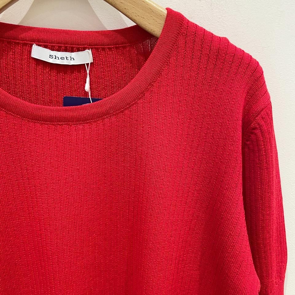 Shethのリサイクルポリエステルのシリーズから、リブ網の半そでニットがブラッシュアップして登場しました。