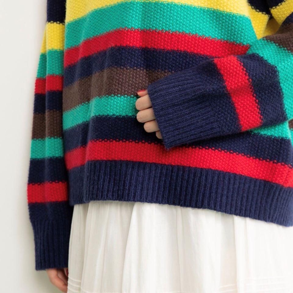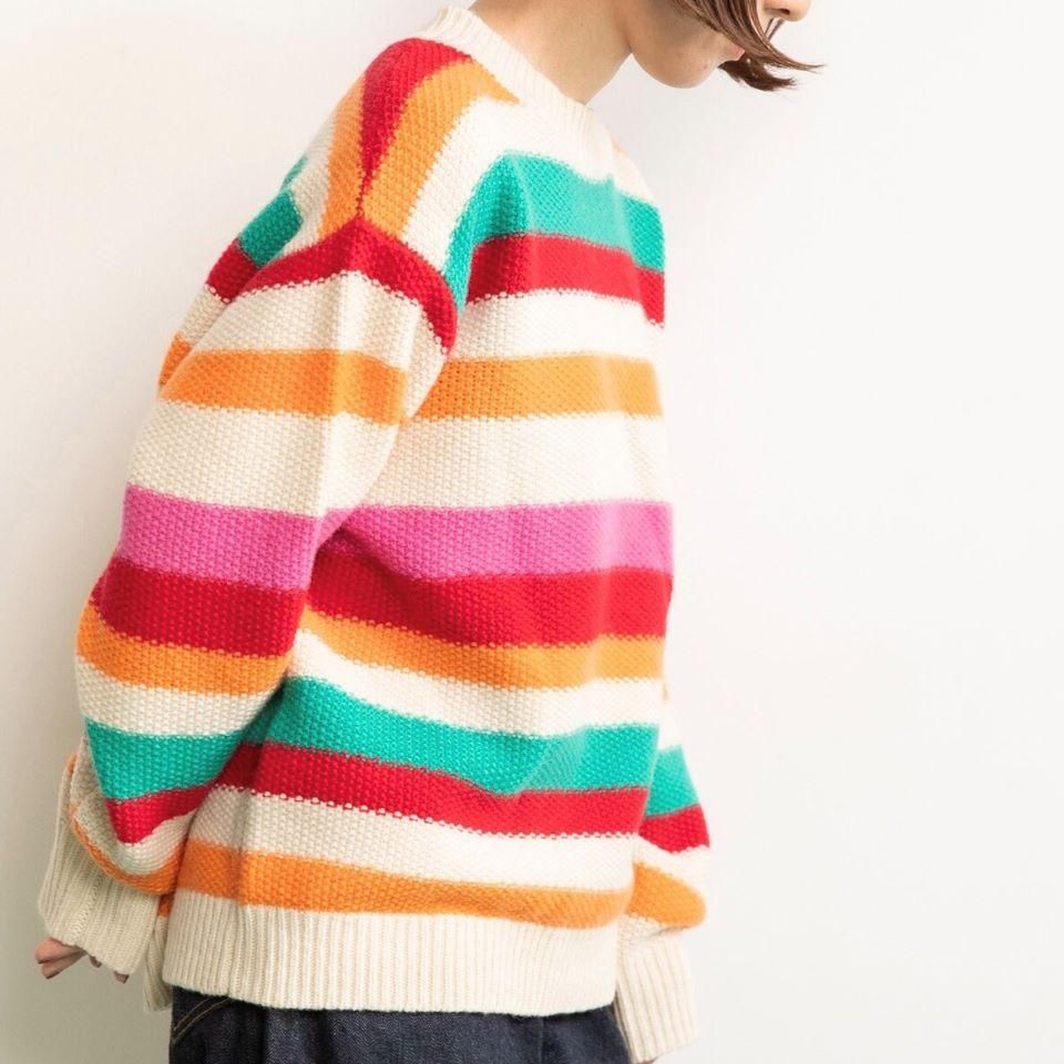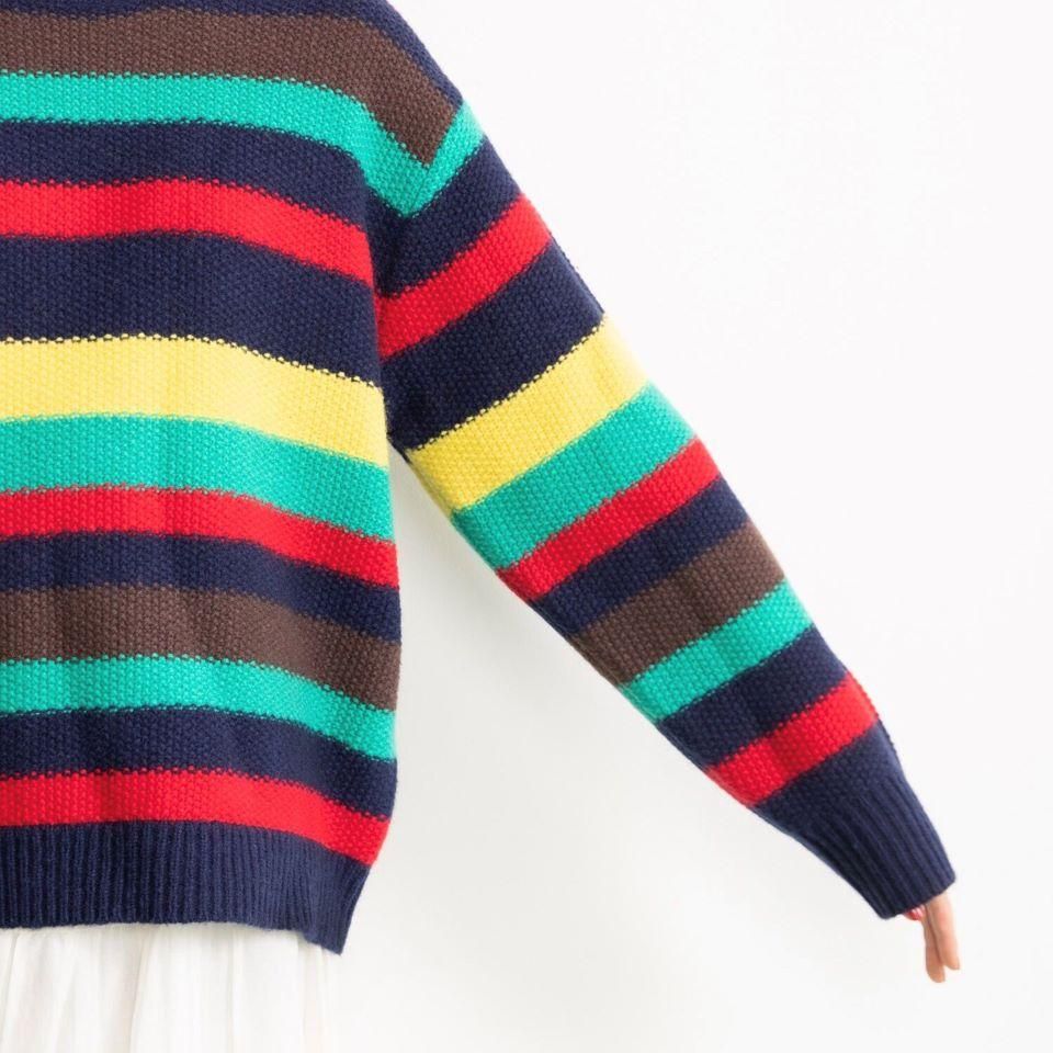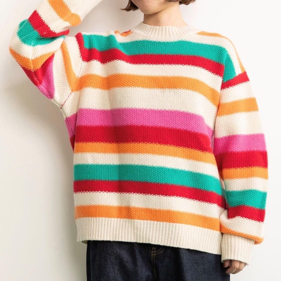 カラフルな色使いがブランドらしいマルチボーダーニット。