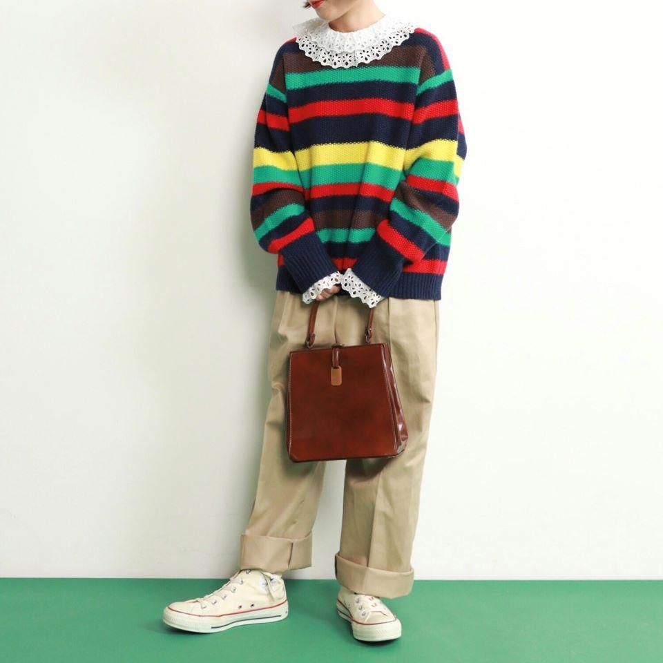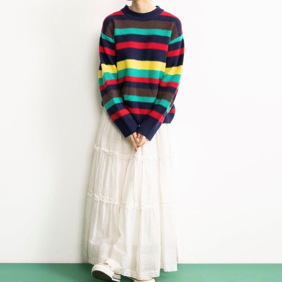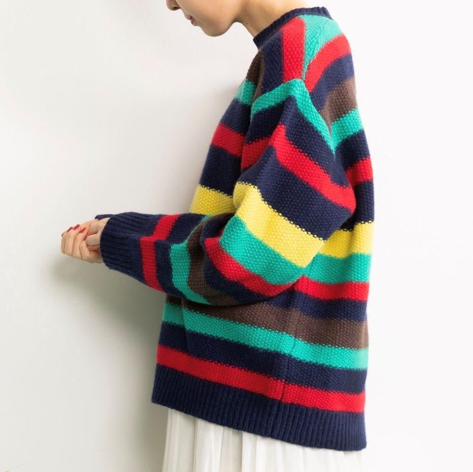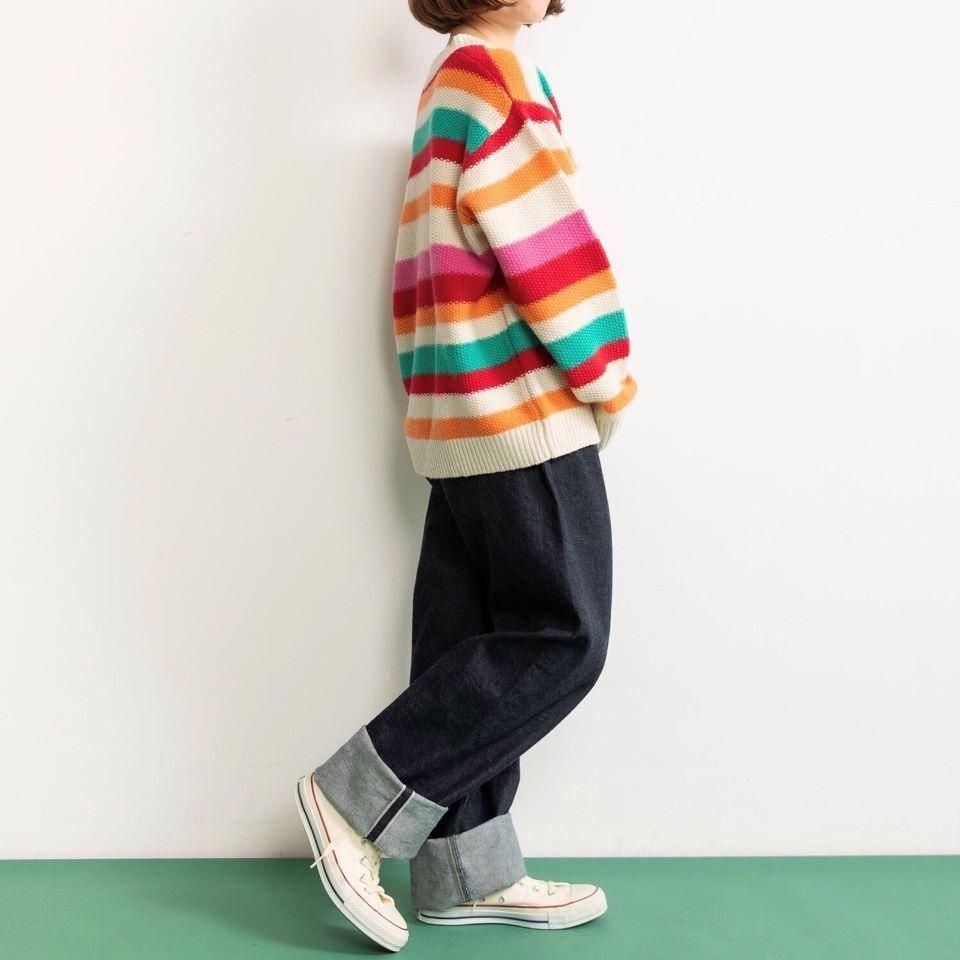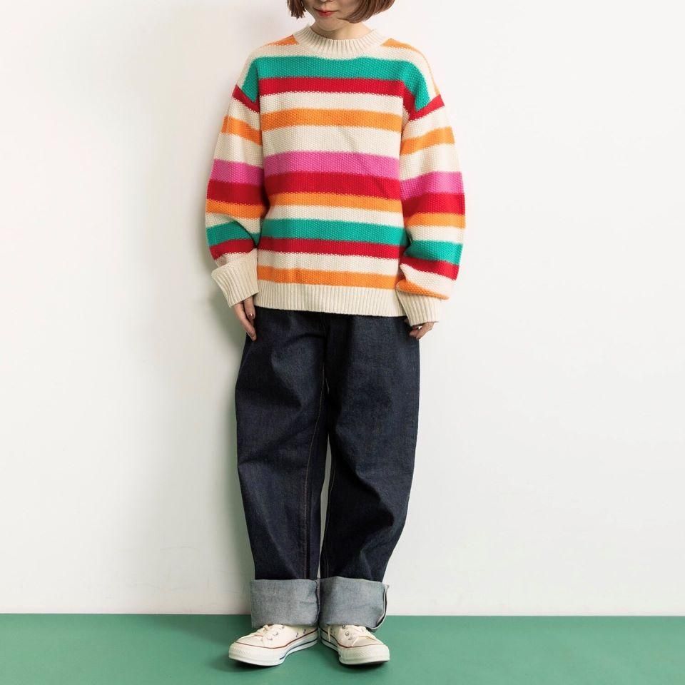 カラフルな色使いがブランドらしいマルチボーダーニット。