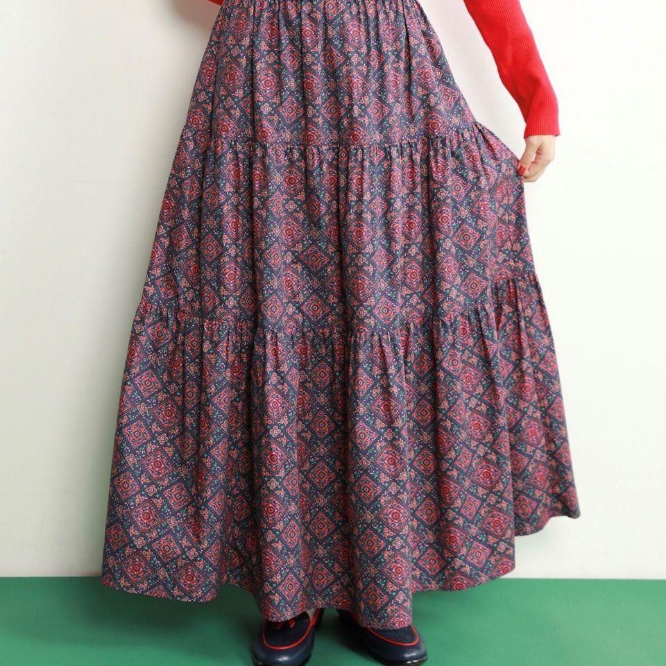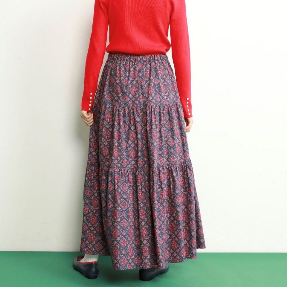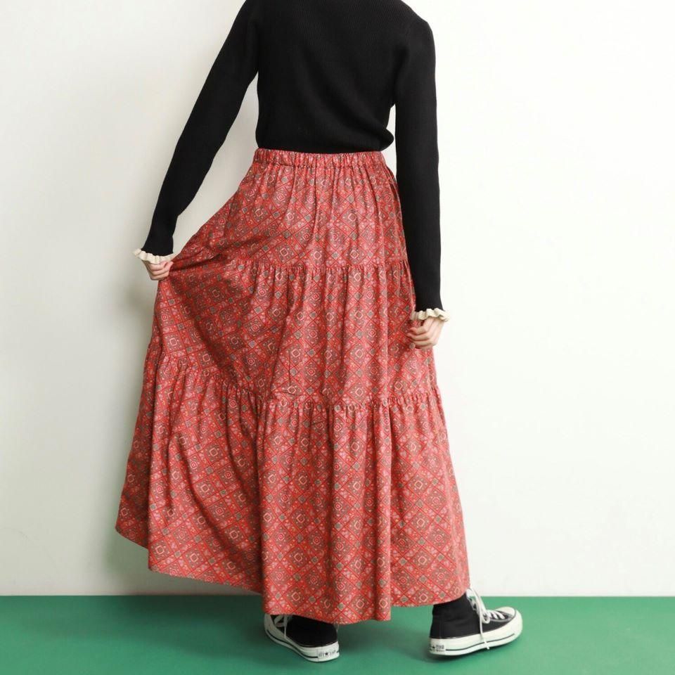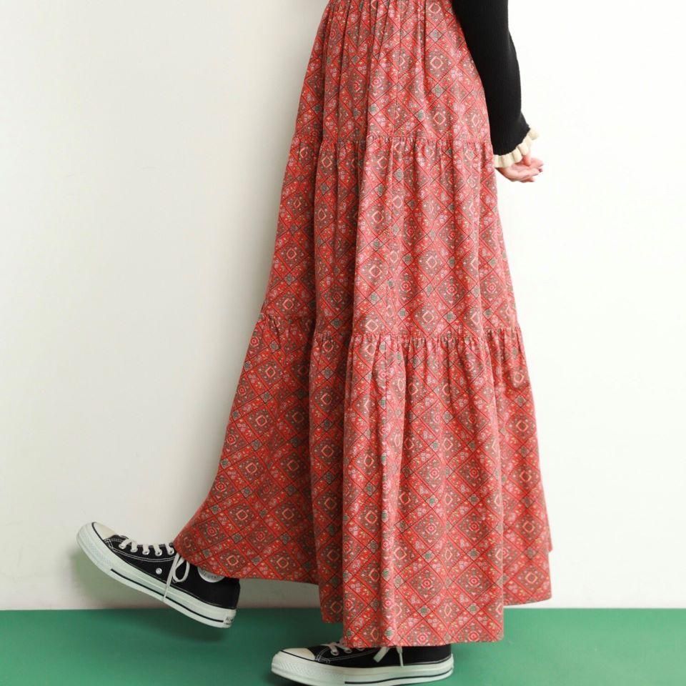 華やかなペイズリー柄が目を惹くティアードスカート。