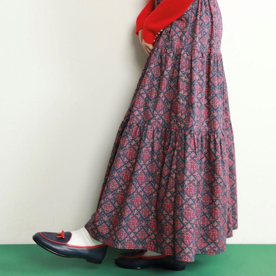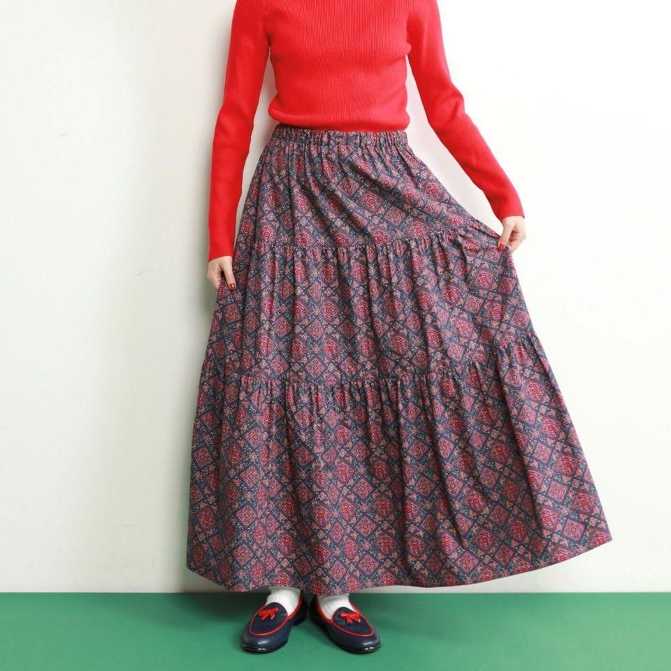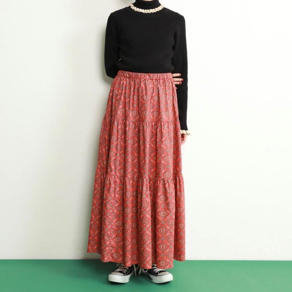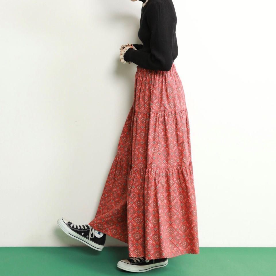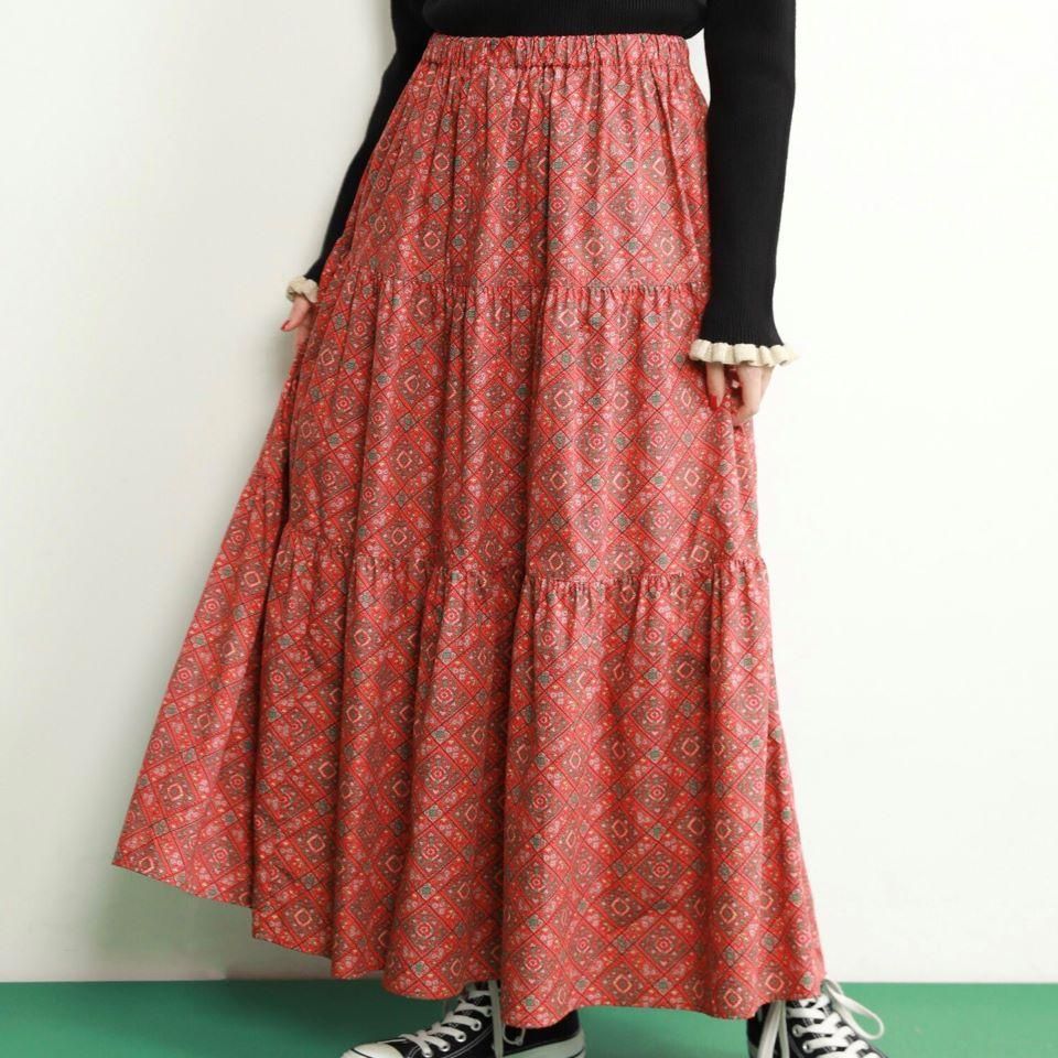 華やかなペイズリー柄が目を惹くティアードスカート。