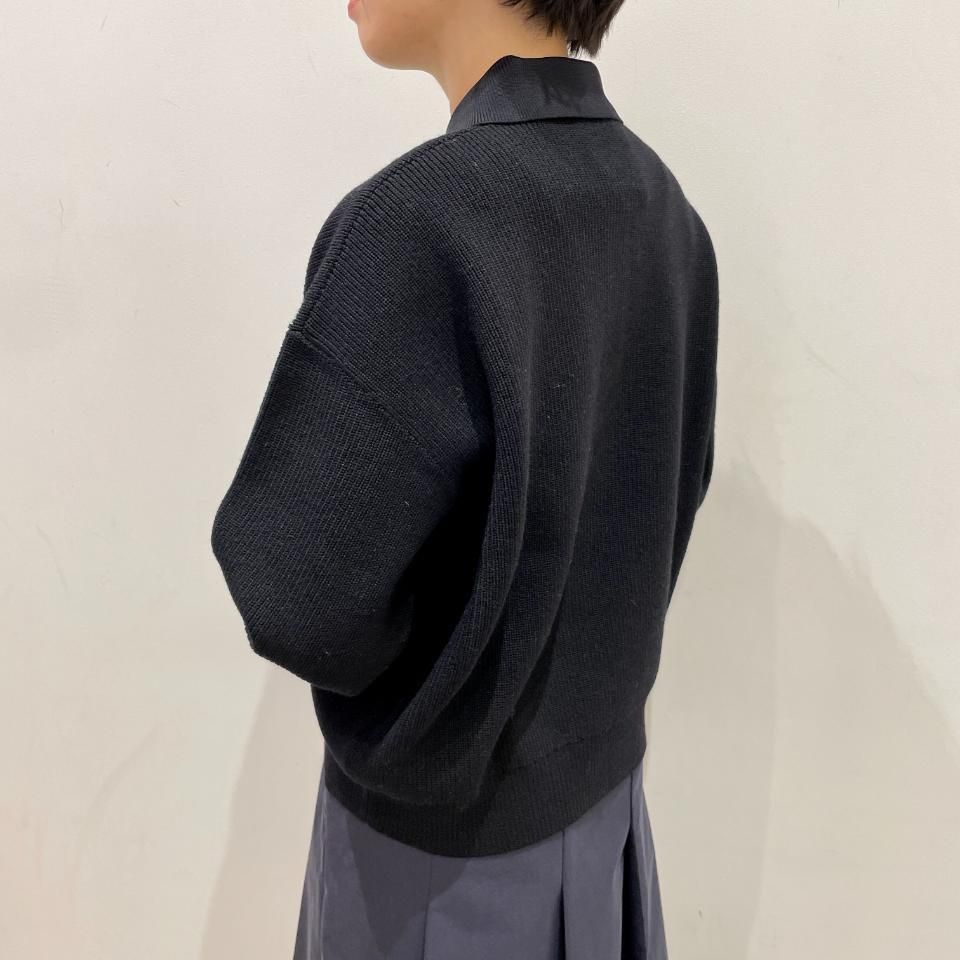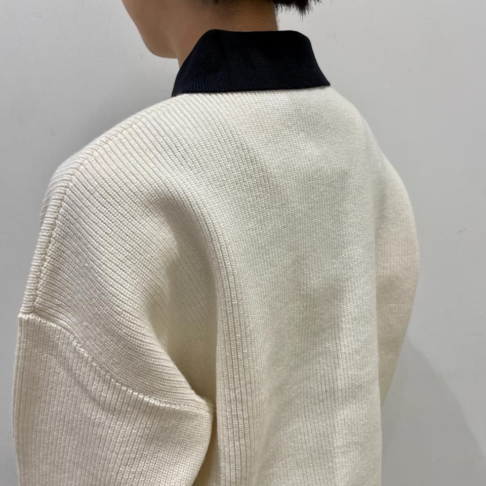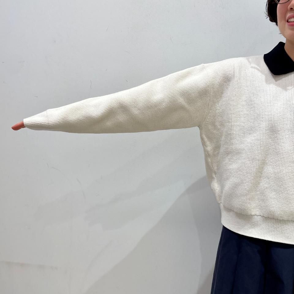 ウールベースの混紡糸を使用したローゲージのニットポロシャツ。