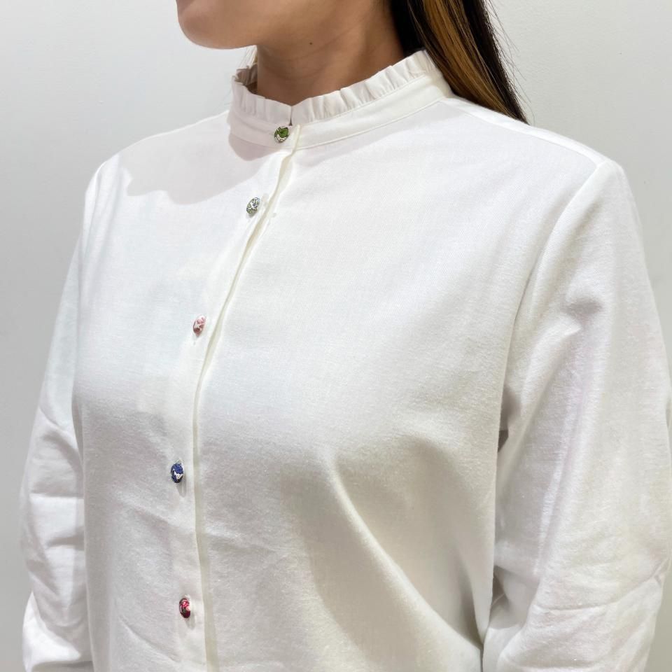 30ビエラ ナチュラルピーチワッシャースタンドフリルシャツ リバティ釦(PN2433503)