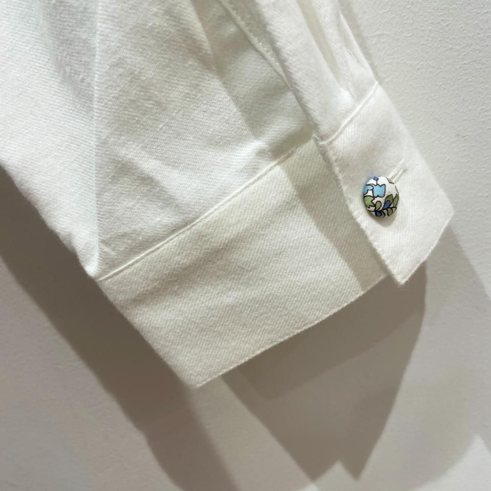 Parkesおなじみのリバティアソートくるみ釦でさり気なく遊び心をプラスした