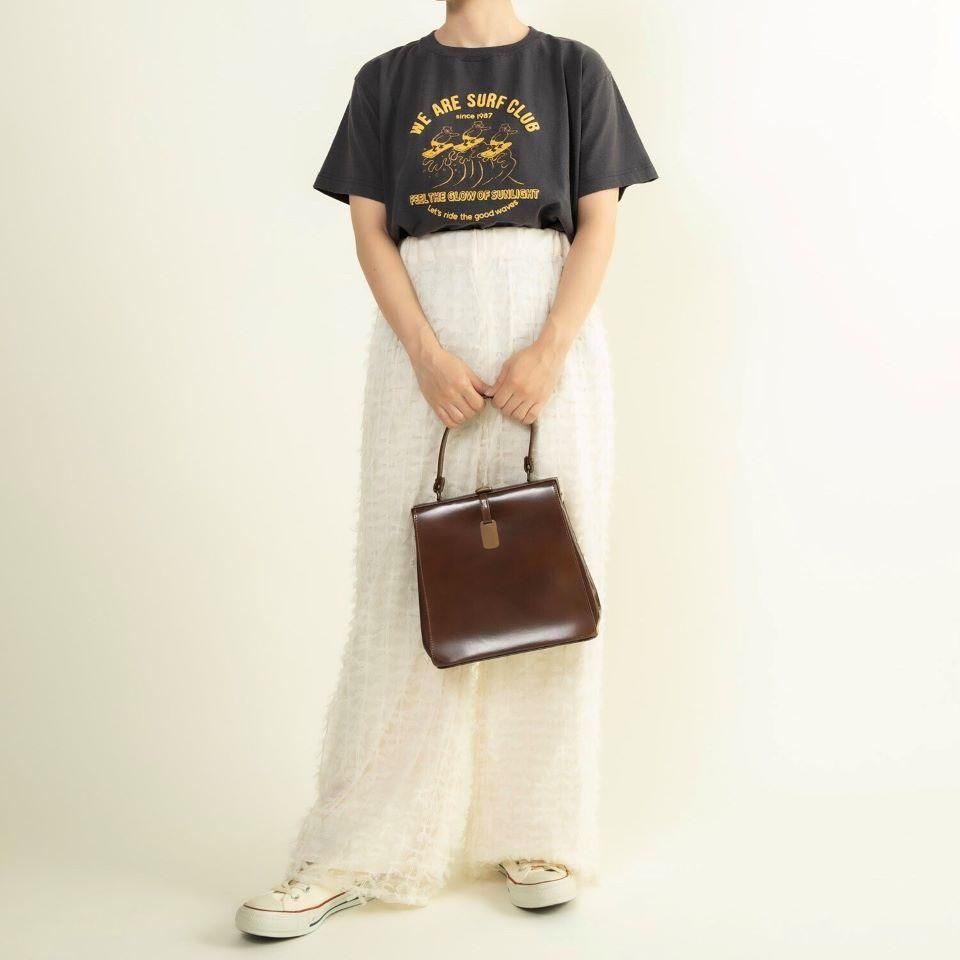 ガーリーな印象なので、ボーダーカットソーやスウェット、ミリタリージャケットなどカジュアルなアイテムとの相性も◎