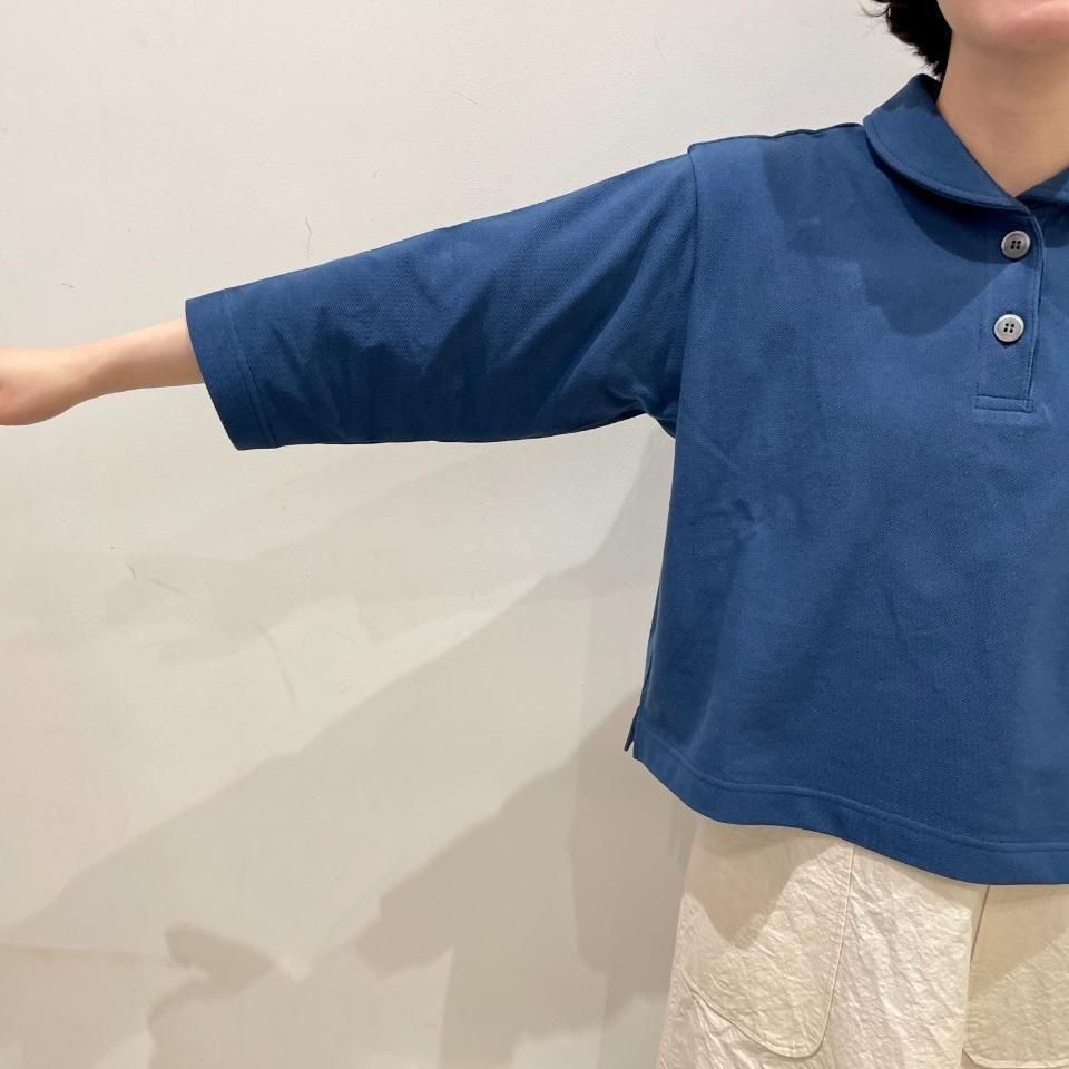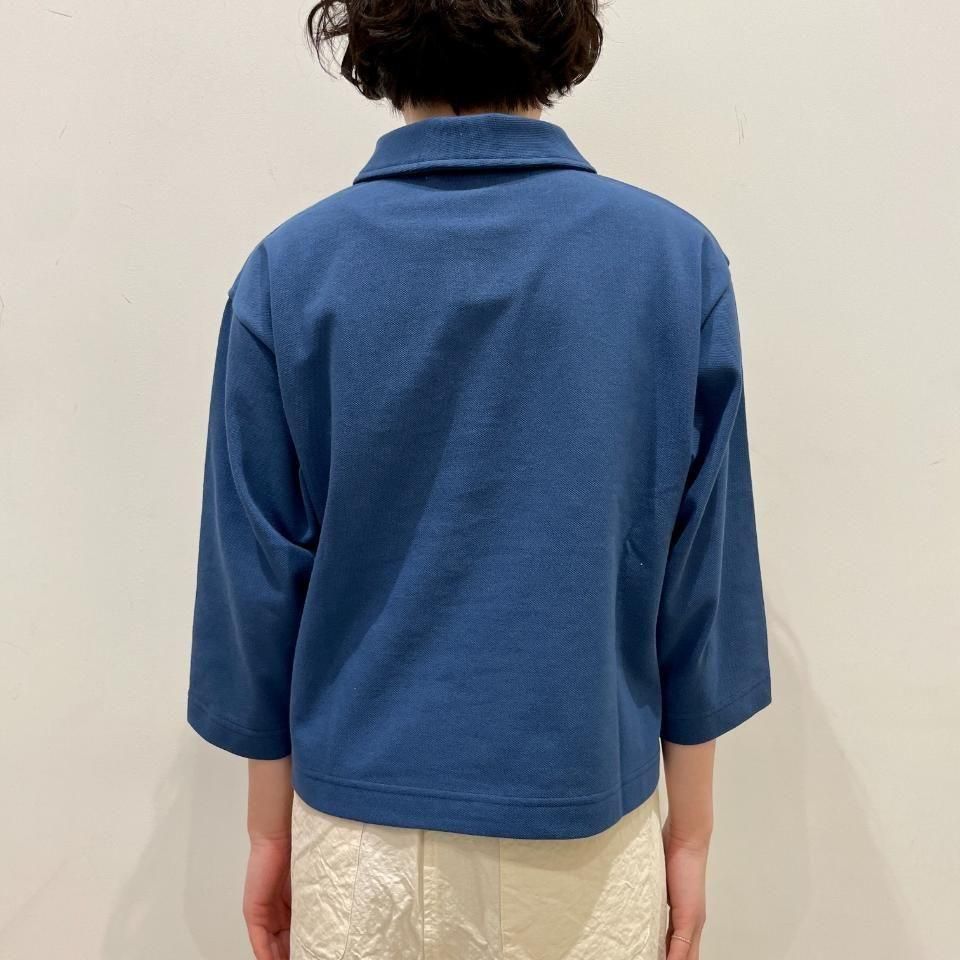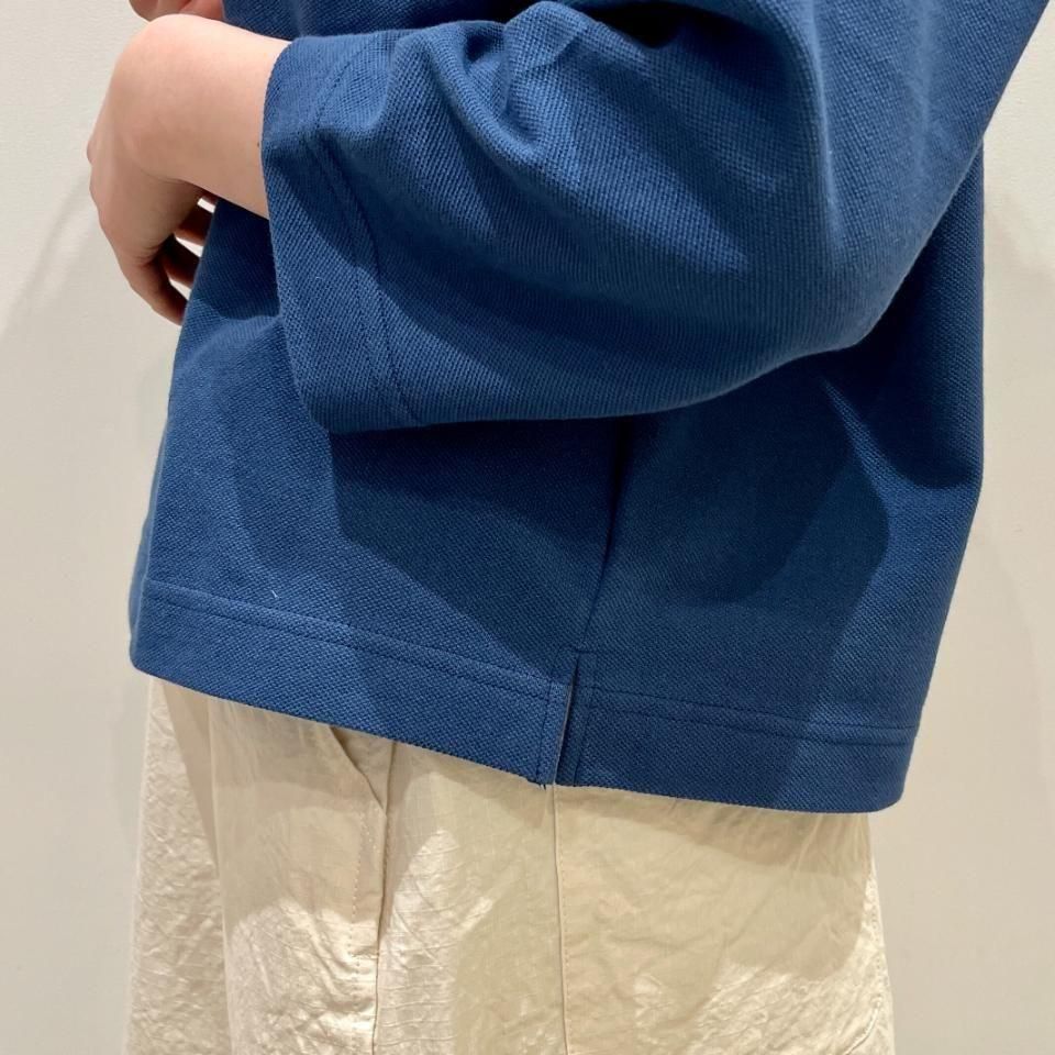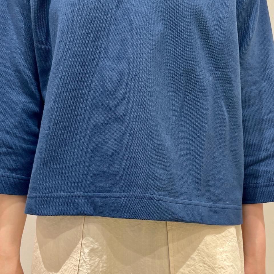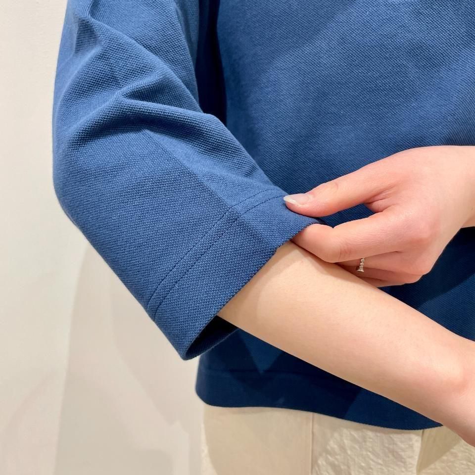 生地表面の凹凸のある編み地の清涼感が心地よい鹿の子ジャージーの8分袖ポロ。
