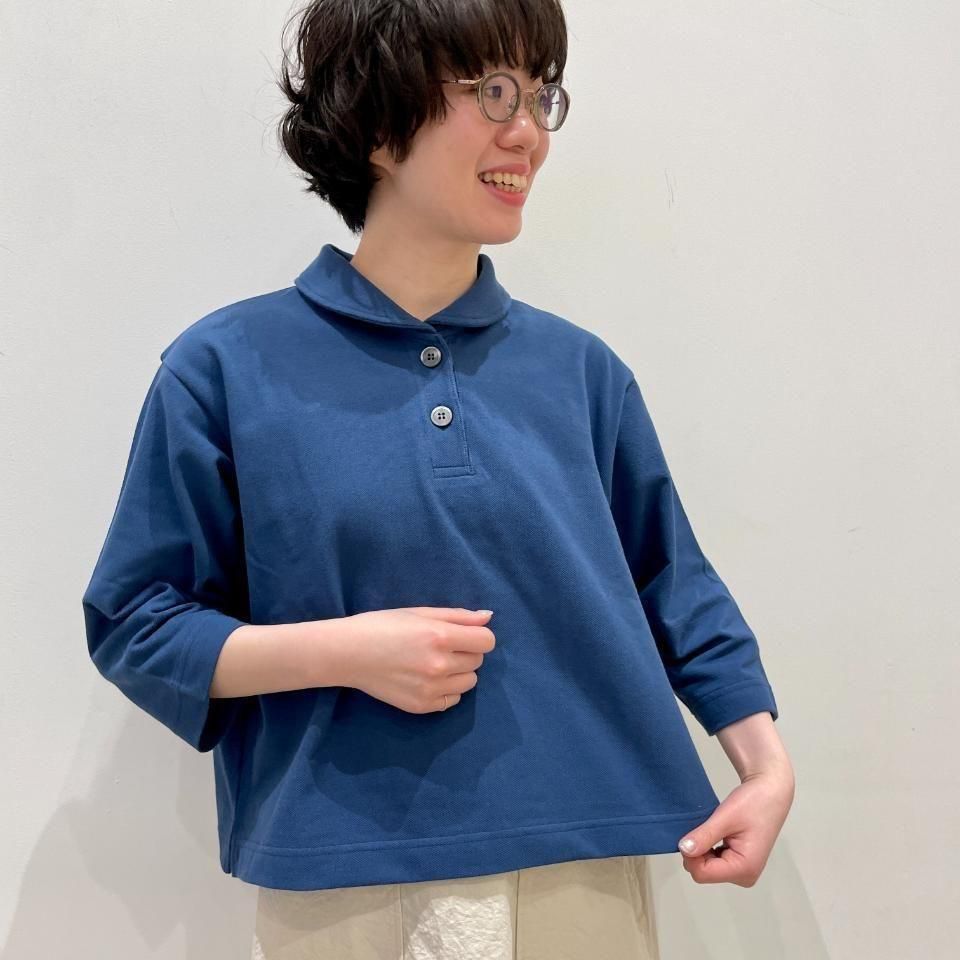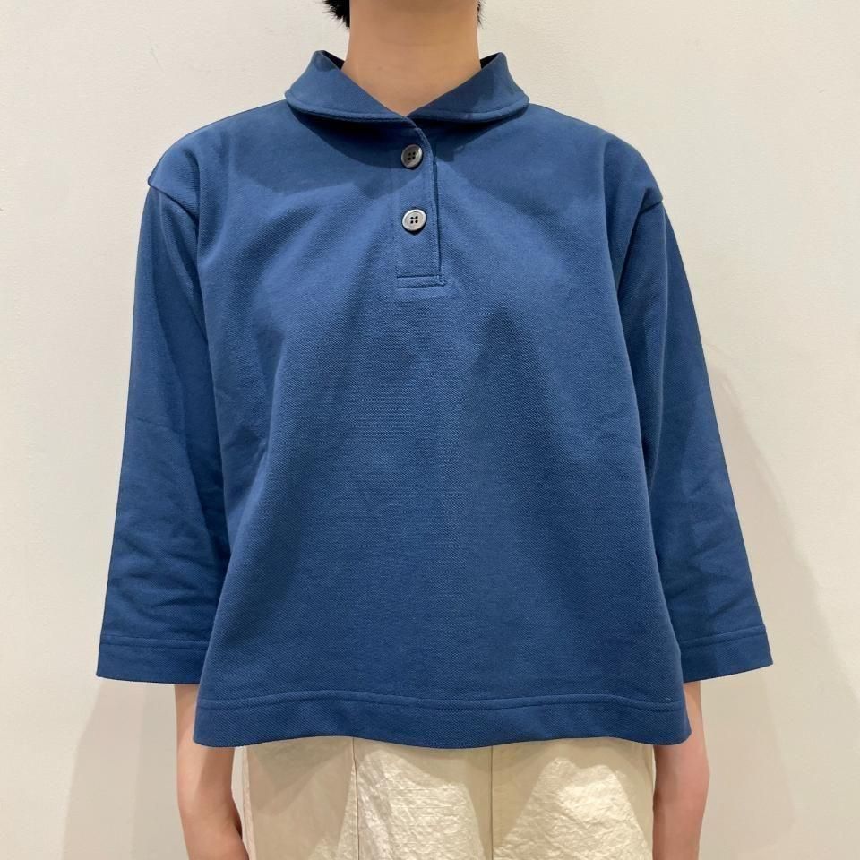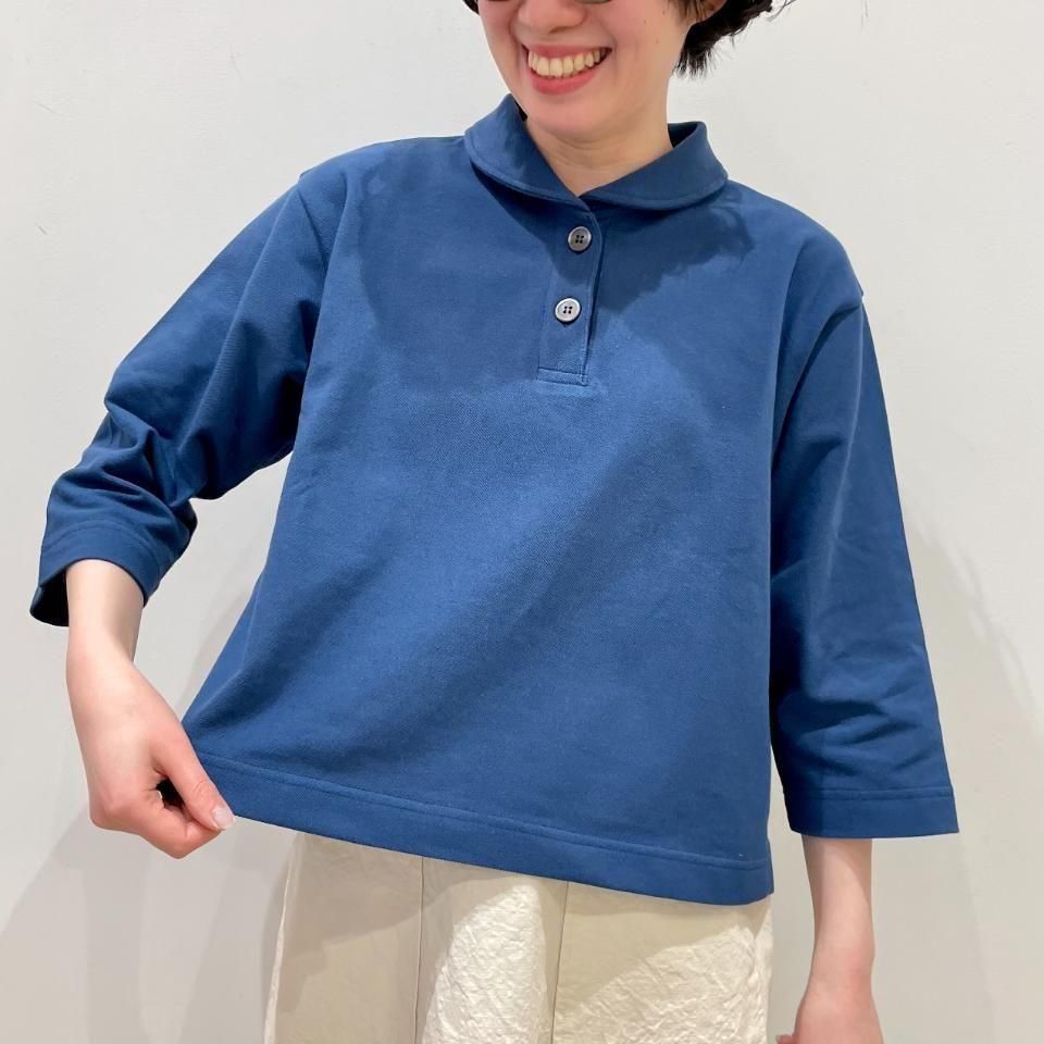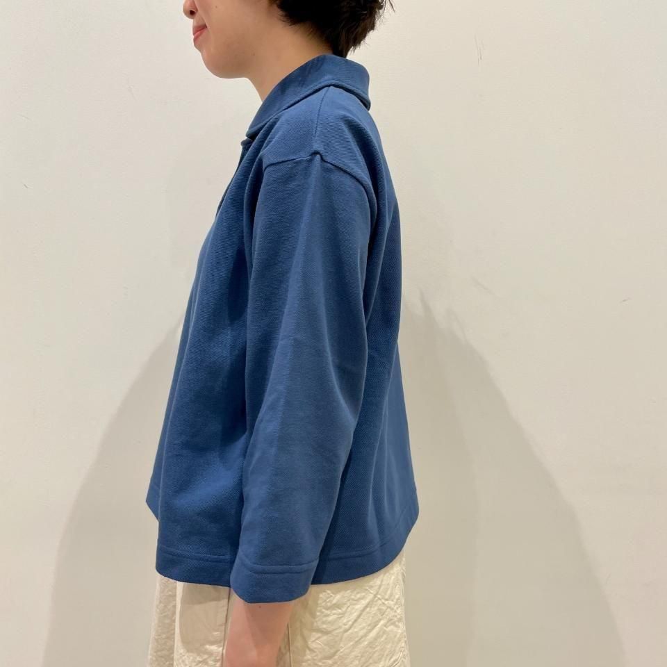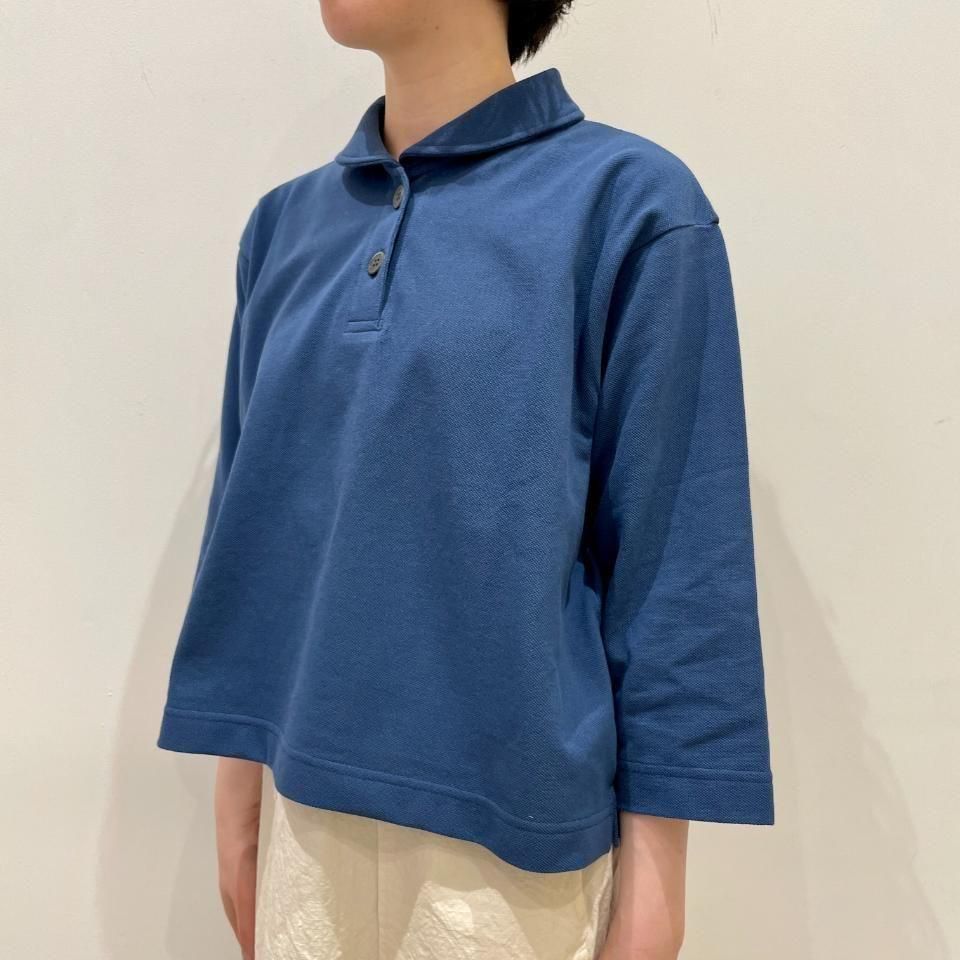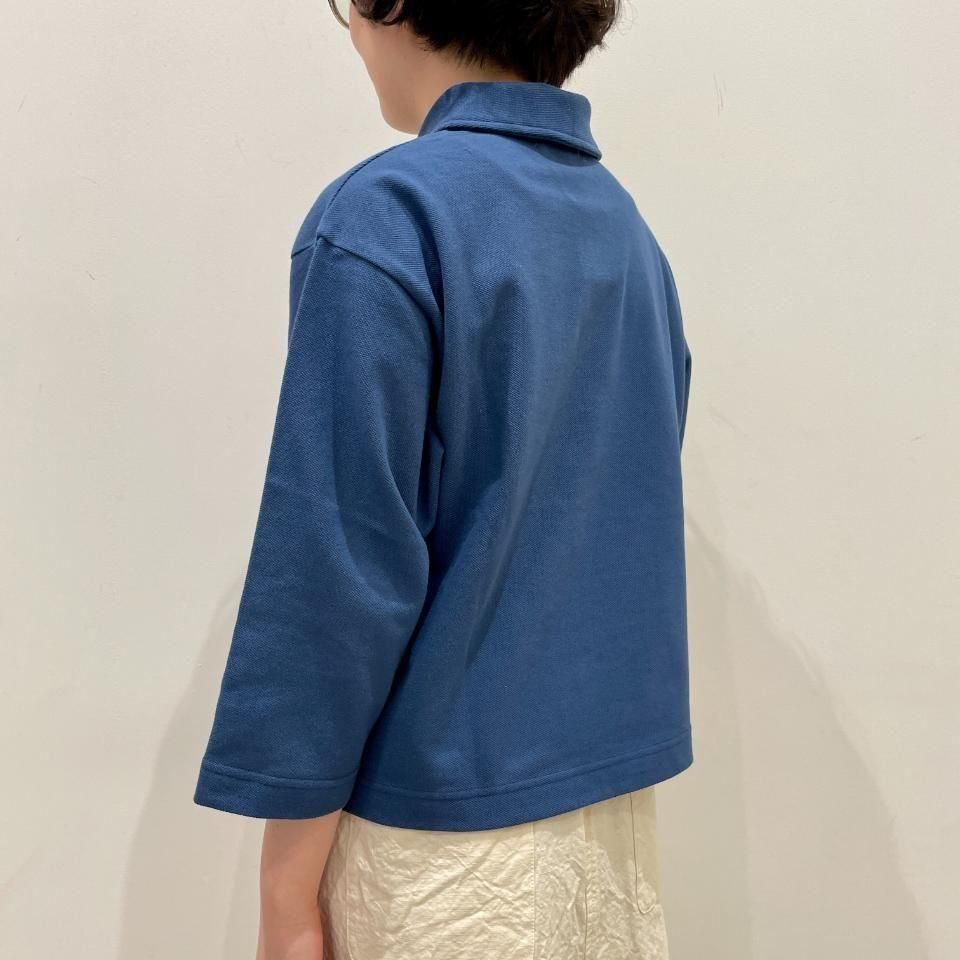 生地表面の凹凸のある編み地の清涼感が心地よい鹿の子ジャージーの8分袖ポロ。