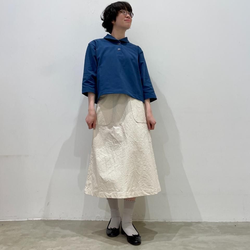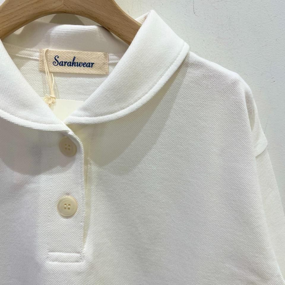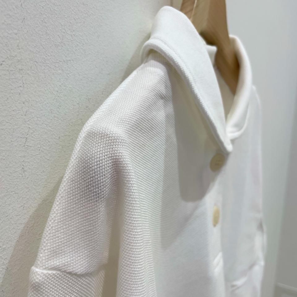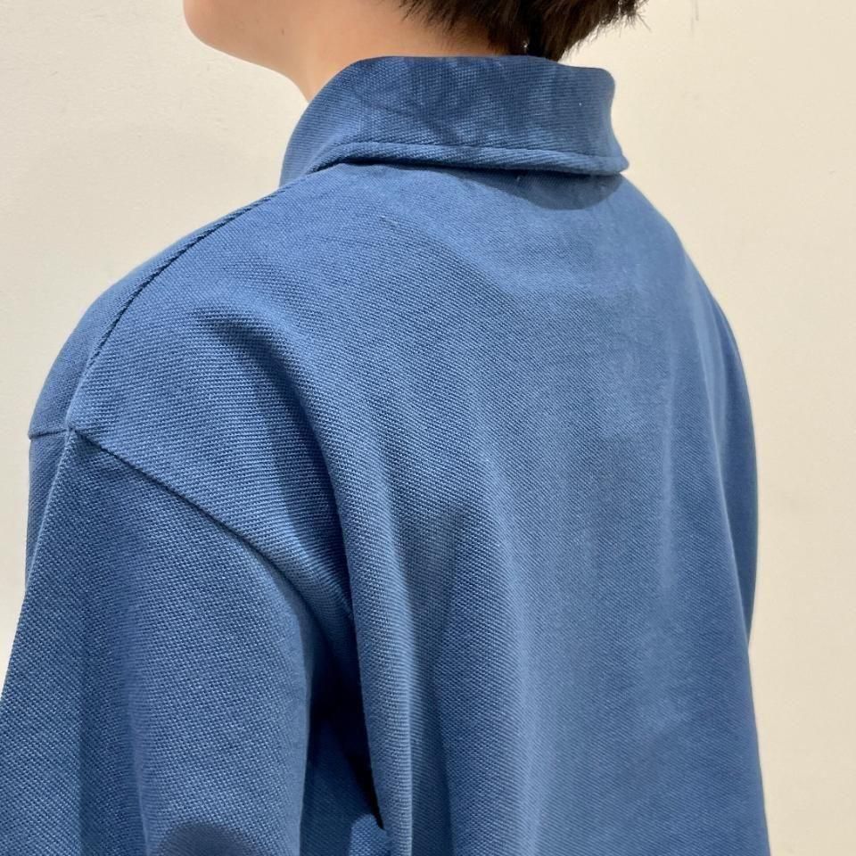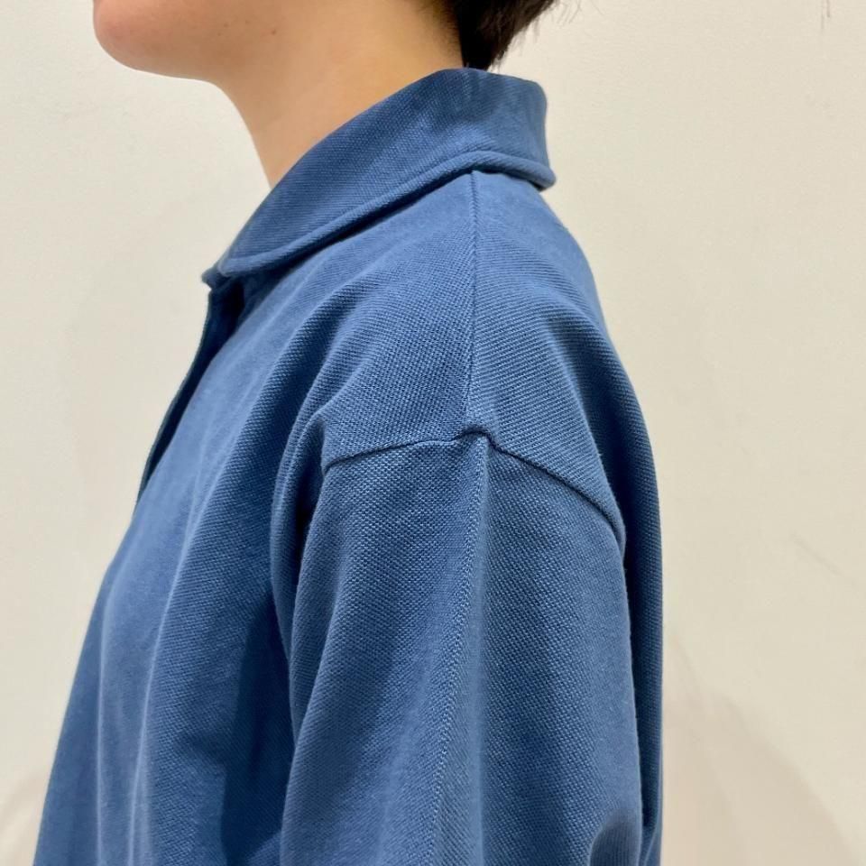生地表面の凹凸のある編み地の清涼感が心地よい鹿の子ジャージーの8分袖ポロ。